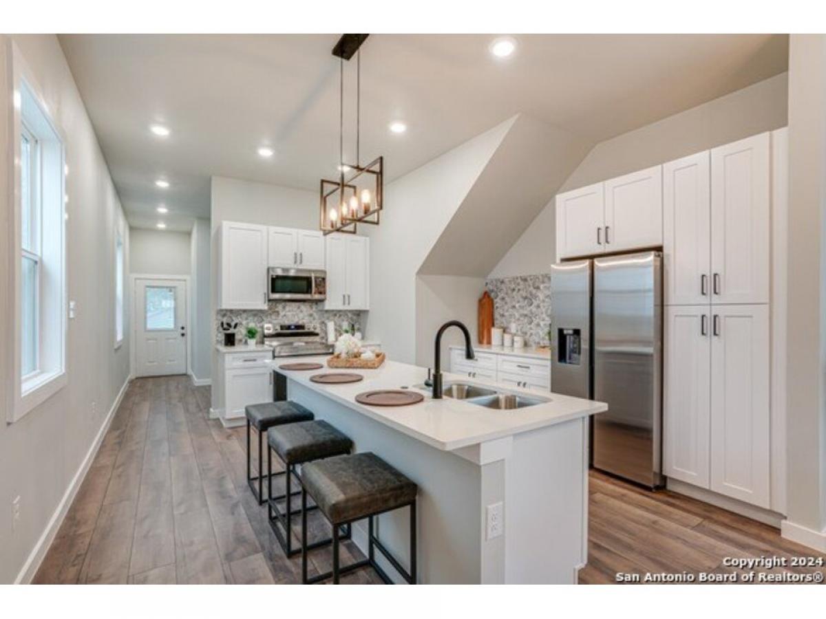 INVESTMENT OPPORTUNITY! Each of these four independent, two-story units offers a perfect mix of modern luxury and urban convenience. The open floor plan creates a welcoming atmosphere in the dining and living areas. Upstairs, a versatile flex space can serve a variety of functions. These contemporary homes feature high ceilings, a spacious tiled utility room, ceiling fans, recessed and modern lighting, vinyl flooring, and sleek finishes. The quartz countertops and neutral tones add a touch of elegance. The chef#039;s kitchen boasts custom cabinetry, a hexagon tile backsplash, stainless steel appliances, an island with a breakfast bar, and stylish pendant lighting. The primary bedroom offers a luxurious en-suite bathroom with a tiled walk-in shower, dual vanity sinks, and a walk-in closet for generous storage. Each unit also includes a private fenced backyard and an upstairs balcony with views of the front. Designed for those who want a vibrant downtown lifestyle without sacrificing style.