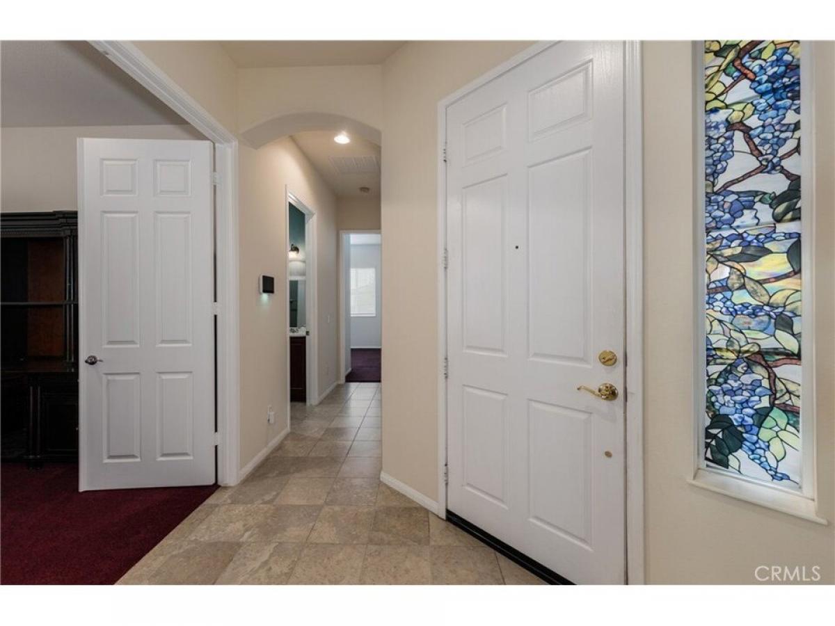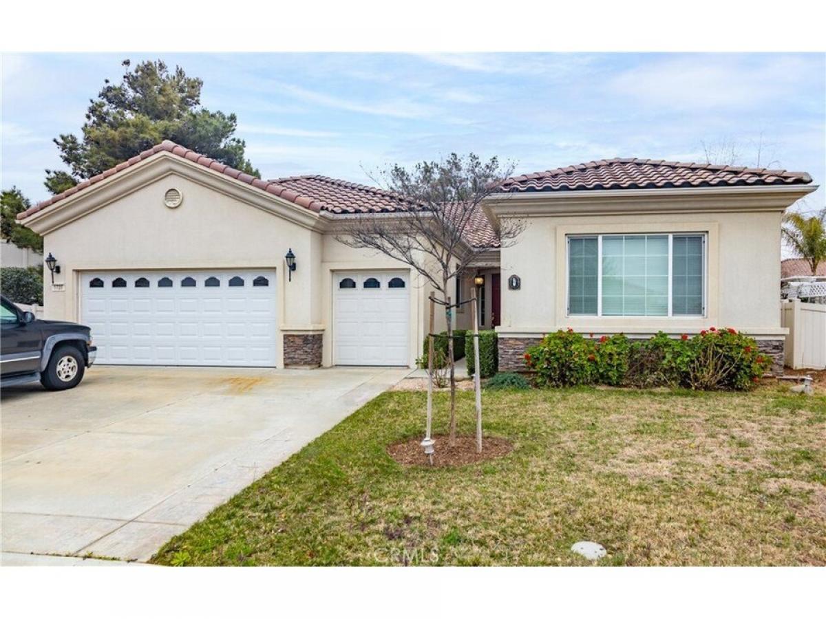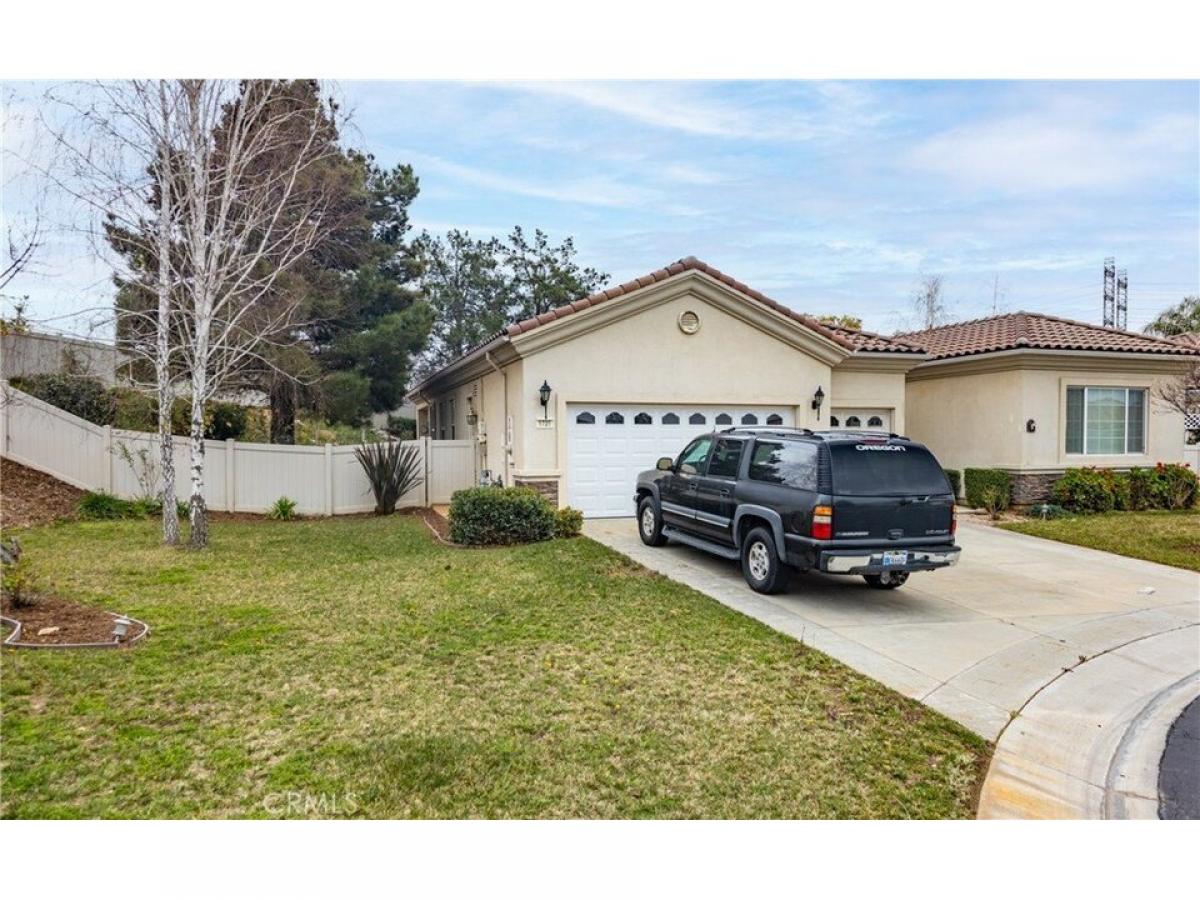 This Beautiful Emerald Model is located in the 55+ Solera Gated Community. This home sits at the end of a cul-de-sac on almost a quarter acre of landscaped land. It has several upgrades including custom stained kitchen cabinets and granite counter tops, tile flooring throughout the house, laminate wood flooring in the Living room/Family room, carpet in the bedrooms and den/office. The backyard is very private and covered in mature landscaping, it has a covered patio area outside of the Living room/Family room with a glass double entry door leading out to the patio, lots of trees and plants. The Primary bedroom has double glass doors leading out to the backyard and a nice sitting area, the primary bathroom has two separate sinks, a nice soaking tub, walk in shower and big walk in closet. The front yard is landscaped and has a very large side area that is completely landscaped. The Garage is drywall finished inside and is a two-car garage plus a golf cart area with its own garage door for easy access. Solera 55+ Community is security gated and has a beautiful Clubhouse with a Pool, Spa, Indoor gym with a walking track, billiards room, library, banquet rooms, mailroom, classroom, outside tennis courts, bocce ball, organized classes, clubs and group trips. Easy access to the freeways, shopping, casinos, palm springs, Loma Linda medical center, Cabazon outlets, and some of the best golf courses around.