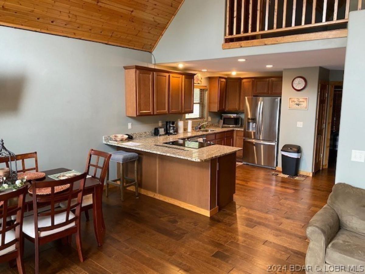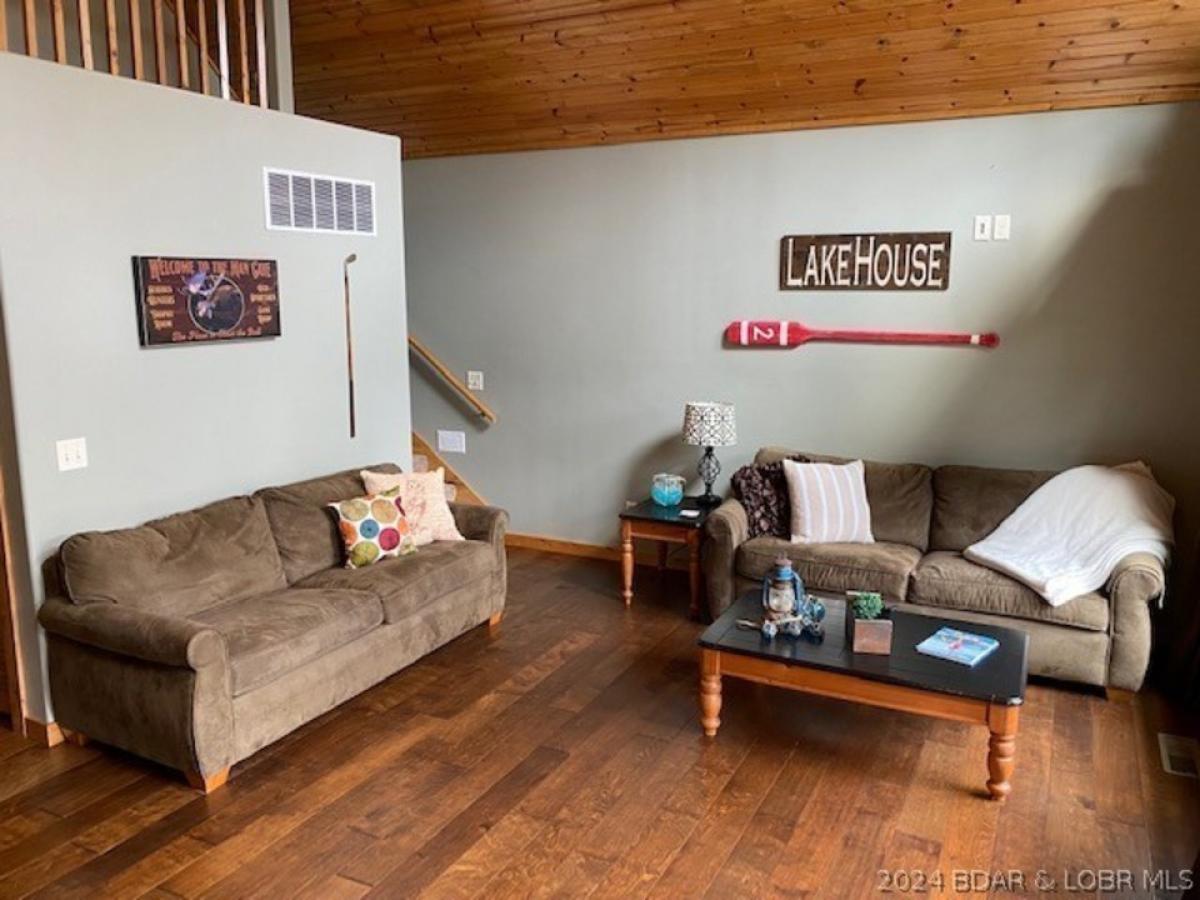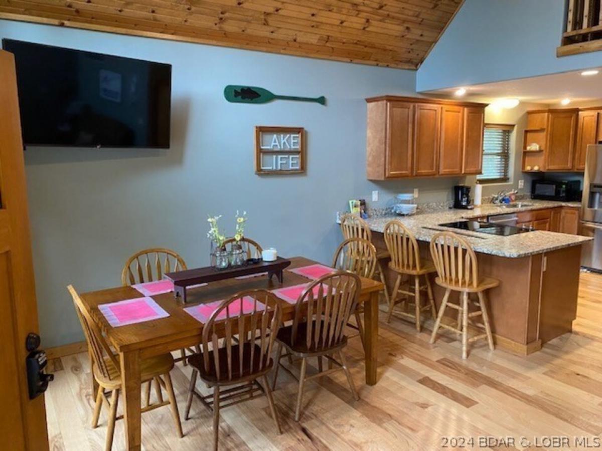 This lodge style cedar home embodies the rugged charm and natural beauty of Lake of the Ozarks. This income producing rental home features a combination of rustic elements and modern comforts. The cedar exterior lends a warm, inviting look to this property. Large windows offer stunning views of the lake. A spacious front porch is perfect for enjoying the views. Inside, you will find an open floor plan that maximizes the sense of space and light. Vaulted ceilings with exposed cedar beams add to the rustic charm and create a feeling of grandeur. Located just past Redhead Yacht Club by road, this home is centrally located by all the fun Lake of the Ozarks has to offer. This is an affordable way to invest in a place at the Lake of the Ozarks that will produce income for years to come.