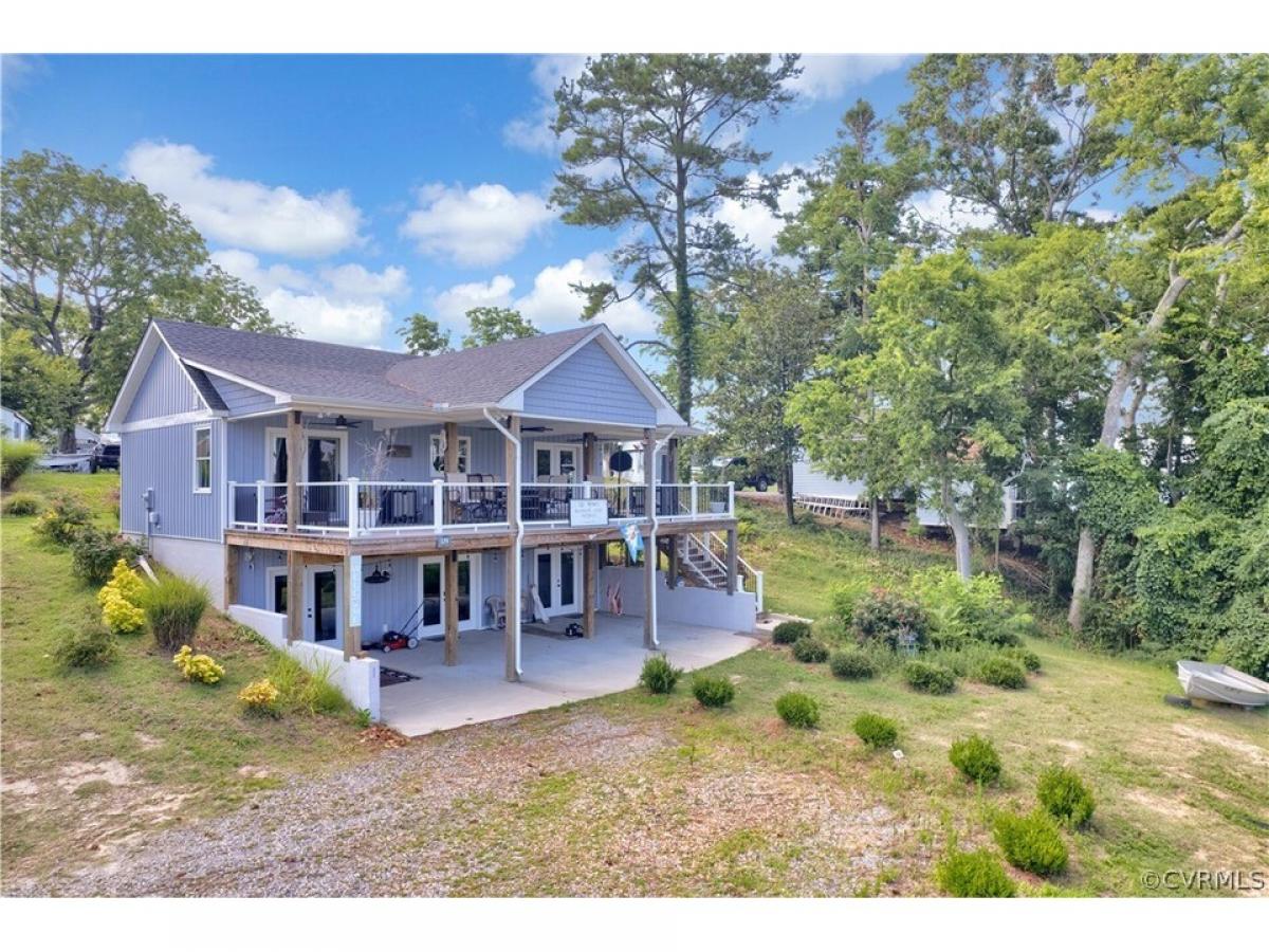 Just listed with water views of Whiting Creek & The Rappahannock River in a private cul-de-sac setting! Welcome to Brandon Cove Retreat in the Locust Hill area of Middlesex County. This custom vinyl-sided 2-story home was built by the current owners in 2020 and offers many flexible full or part-time living/investment options for the next owner looking for a great home at the river with easy boating access & endless water views. The upper level starts with a large covered porch with recessed lighting and ceiling fans. Upon entering the home you are greeted with luxury vinyl flooring throughout & a vaulted ceiling in the open-concept living room. The kitchen features granite counters & breakfast bar with ample seating and has white shaker cabinets & stainless steel appliances. The primary bedroom suite has a walk-in closet, double granite vanity & large step-in shower w/ walk-out access to the covered front porch. The lower level of the home is highlighted with an ADA-accessible primary bedroom with no steps, wide doorways & a roll-in shower with seat & handrails. 2 Additional flexible bedroom spaces with a shared Jack & Jill concept bathroom complete this level of the home. There is not a connected stairway inside of the home, making it easy for the next owner to easily live upstairs & rent/Airbnb the lower level of the home to guests. The landscaped 0.44-acre lot has 2 detached storage sheds, an RV hookup with water/electric & parking for 4 or more vehicles on the Mizpah Rd side of the home. A private driveway leads to the lower waterside of the home off of Marsh Pungo Rd and gives the owner many parking options for guests and/or boats & jet skis. You will love the free-to-access Whiting Creek Creek Boat Ramp and fishing dock just steps away from the home. The home has no HOA fees and no rental or Airbnb restrictions. Centrally located with just a 10-minute drive to Urbanna & 15 minutes all that Deltaville has to offer. Just an hour to both Richmond & Williamsburg. Like new & move-in ready!