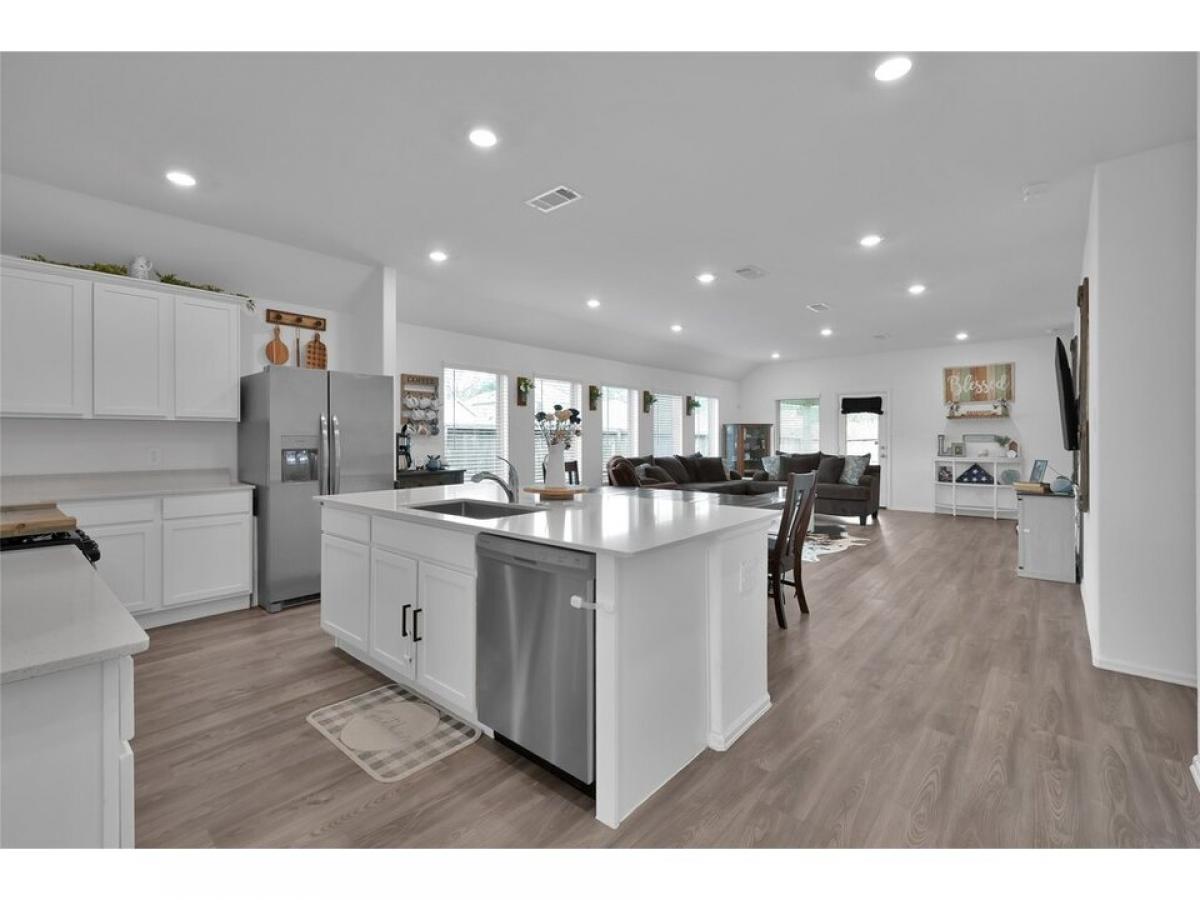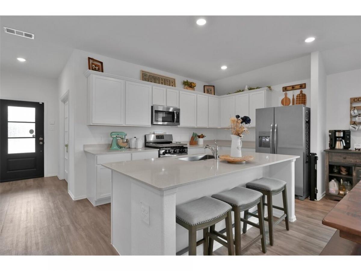 Welcome to this charming single-story home in the sought-after Pinewood Grand Texas! This Lennar SMART home features 4 bedrooms, 2 baths, a study/flex room, and a spacious white kitchen with a Grand island, great for entertaining! Enjoy the open floor plan and the fully fenced backyard with a covered patio, perfect for gatherings. Natural light fills the home, highlighting its allure. The sellers added gutters and a sprinkler system! And the refrigerator will stay! Don#039;t miss this fantastic opportunity to own this wonderful home!