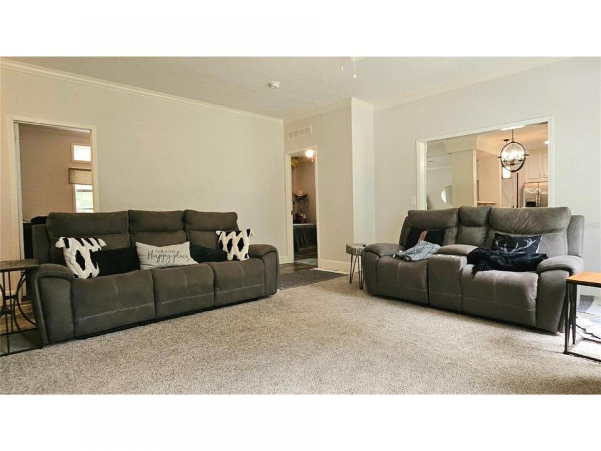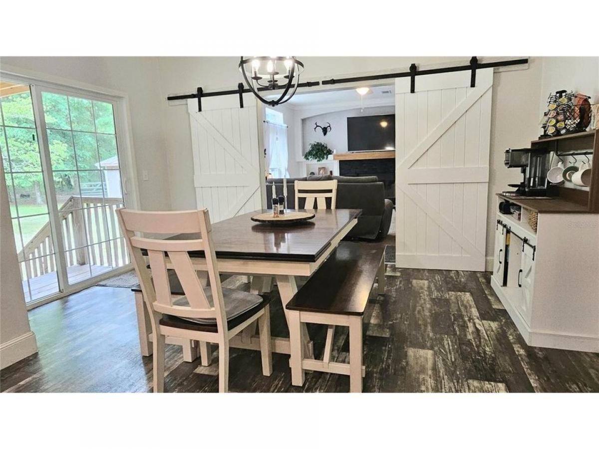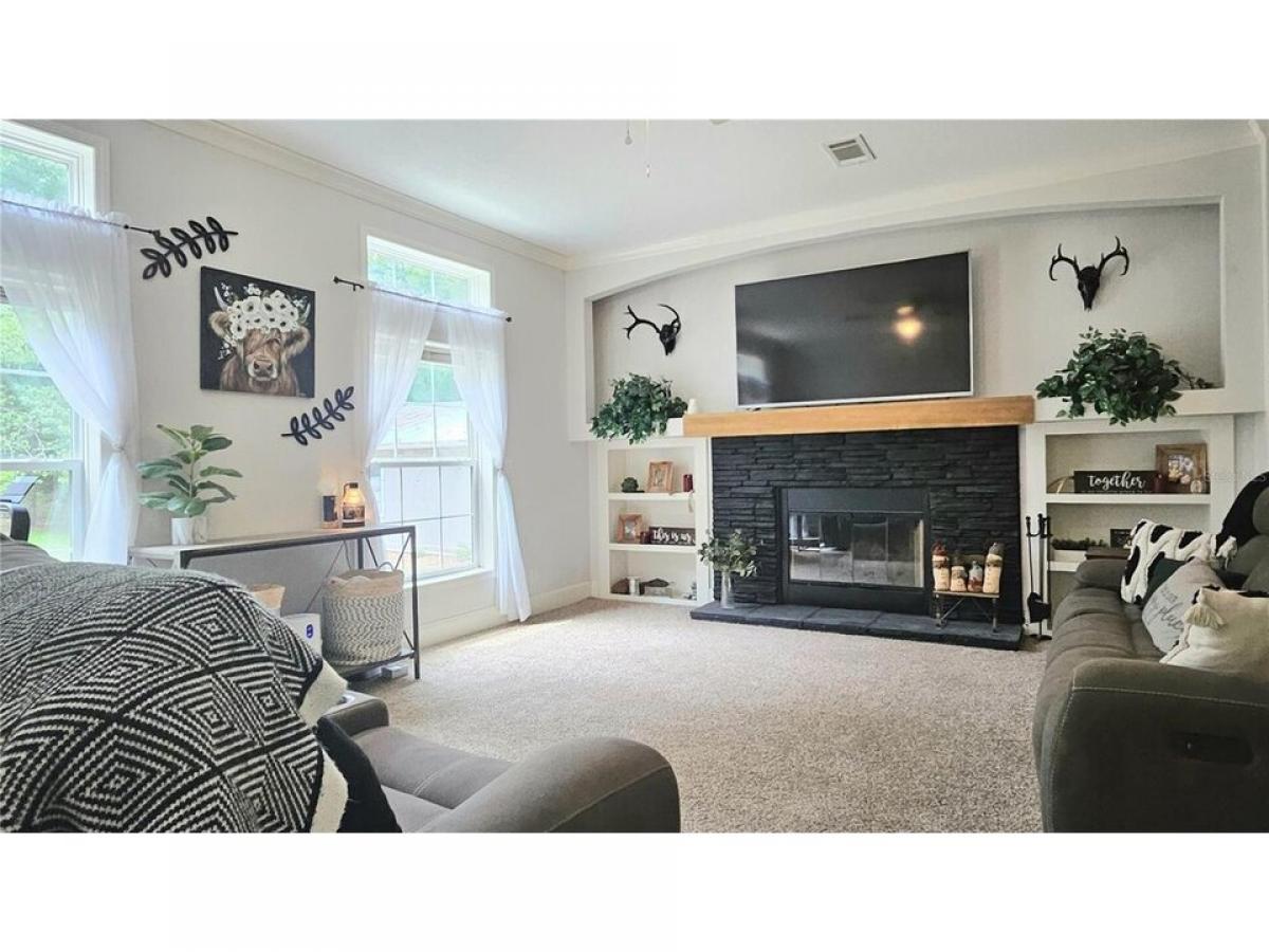 Experience the tranquility of modern country living in this spacious 4-bedroom, 2-bathroom, 2020 home, boasting 2,280 square feet, all situated on over 6 private wooded acres. Centrally located between Gainesville, Alachua, and Newberry, this home is only 15 minutes from everything and completely move-in ready. A convenient circular driveway leads to an oversized detached 2-car garage on one side, and a covered metal carport on the other that is perfect for your boat or utility vehicle. The large wooden deck at the front entrance welcomes you into the front living room, while a convenient side entrance provides access to a useful mudroom with a utility sink. Inside, you#039;ll find plenty of relaxation spaces to unwind. The home feels expansive and open, thanks to 9-foot ceilings and transom windows that flood the area with natural light. The well-lit front living room seamlessly flows into the kitchen, making entertaining a breeze. The spacious central family room features a cozy wood-burning fireplace, perfect for gatherings. The open kitchen is designed for convenience and entertaining, featuring an oversized custom island with a bar, upgraded appliances, a stainless steel farmhouse sink, double-stacked cabinets, abundant counter space, a full-height pantry, and a utility closet. The generously sized master bedroom is filled with sunlight from large windows and offers a luxurious retreat with its spacious spa-like ensuite bathroom, complete with a garden tub and a luxury walk-in shower. This well-designed split floor plan features three inviting guest bedrooms on the opposite side of the home, ensuring privacy. Accessible from the family room, the space includes a beautifully upgraded full guest bathroom with a luxurious garden tub and shower combination, along with a stylish dual vanity with two sinks. Step outside to the comfortable, covered back patio, equipped with an oversized ceiling fan, offering an ideal outdoor relaxation space. You can fully immerse yourself in nature by walking the footpaths or riding ATVs on the trails that wind through the wooded property.