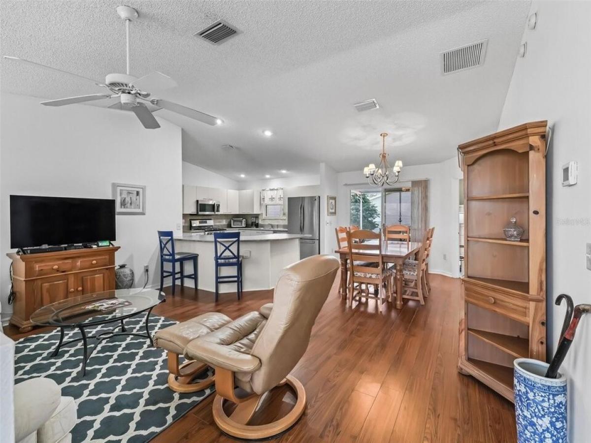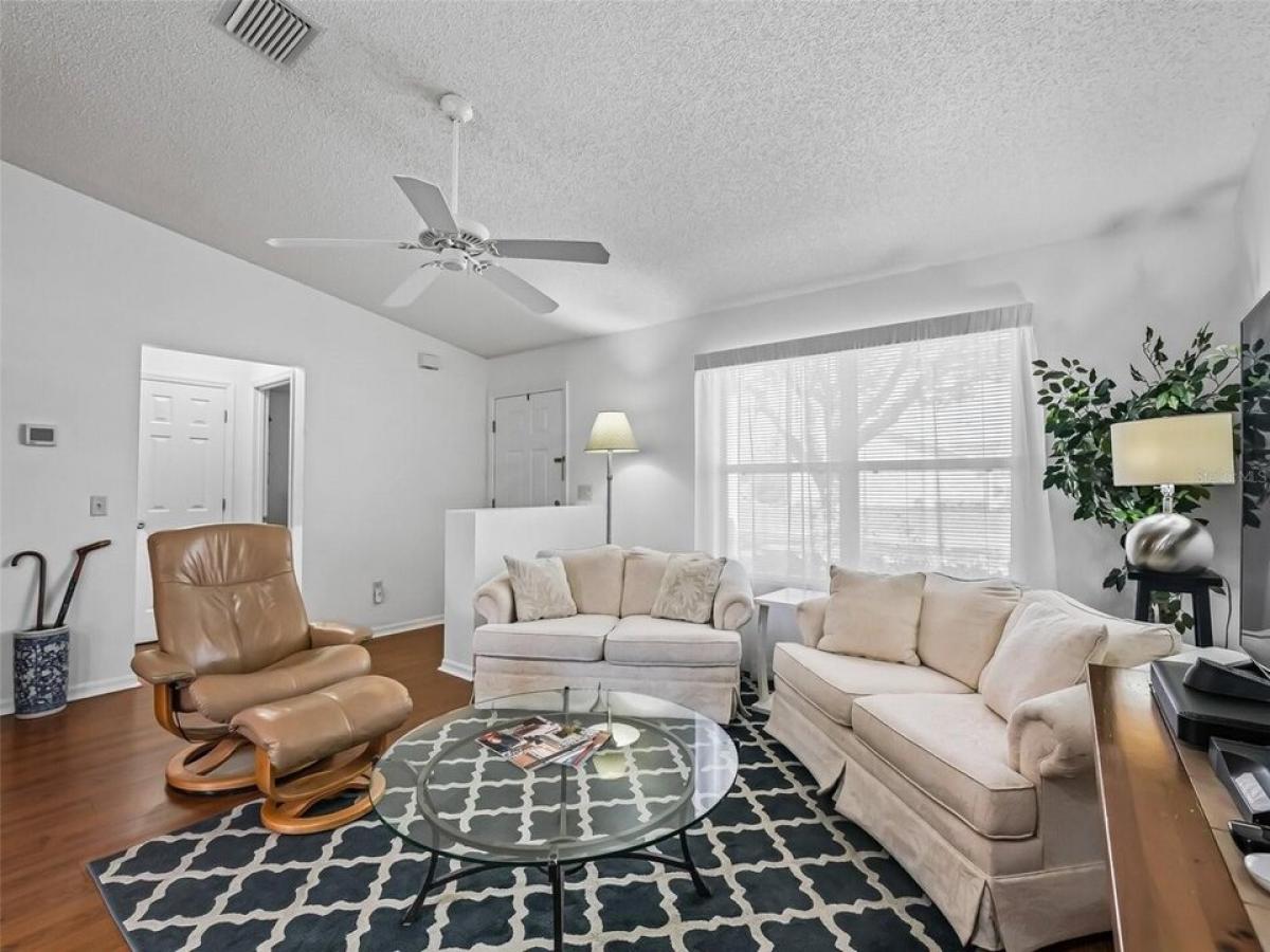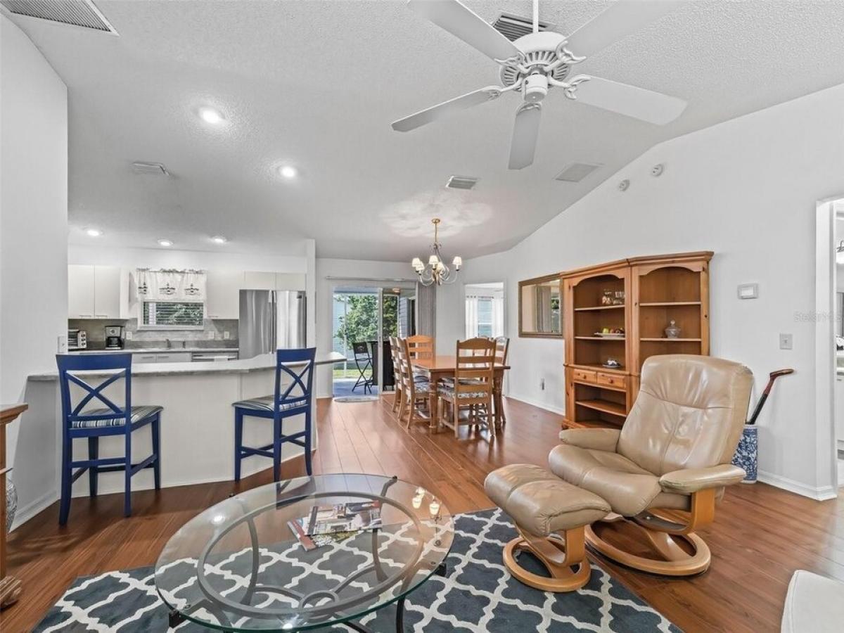 NO BOND! CUTE-AS-CAN-BE! Fully Furnished/ TURNKEY, two bedroom, two bath AUSTIN Cottage/Ranch home in the Village of CHATHAM! 2 Min (.6mi) to Chatham Rec Center amp; POOL! 3 min to HIGHLY RANKED Amberwood amp; Oakleigh Golf courses! 1 Mi WALK/CART RIDE to the NEW FIRST RESPONDERS REC CENTER FACILITIES! ROOF 2019, HVAC 2024! Featuring VOLUME CEILINGS and an OPEN-CONCEPT floor plan. WIDE PLANK laminate FLOORING enhances the living room and dining room. The kitchen and bathroom floors are all updated with beautiful DESIGNER PORCELAIN TILE. The kitchen is well-equipped: white cabinets w/ contemporary hardware, stylish BACKSPLASH, upgraded countertops, and STAINLESS STEEL appliances: Dishwasher, GAS range, space-saver microwave and double-door refrigerator. The master bedroom features a WALK-IN CLOSET and PRIVATE ACCESS TO LANAI and A MASTER ENSUITE w/ large separate vanity. Both baths boast SHOWER DOORS! The guest area offers a comfortably-sized bedroom, LARGE Built-In CLOSET and the guest bath a tub/shower combo. The LANAI enjoys PRIVACY, NO quot;KISSING LANAIquot;! The garage has space for a car amp; golf cart and provides a coated floor, exterior exit door, and a laundry area w/ NEWER WASHER amp; DRYER amp; a utility sink. This is fresh, lovely home, w/ well-coordinated furnishings on a QUIET STREET close to pools, golf and all the SHOPPING amp; DINING at Mulberry Grove Plaza! (.7mi to NANCY LOPEZ COUNTRY CLUB/RESTAURANT or LEGACY BAR amp; GRILL POOL BAR!)