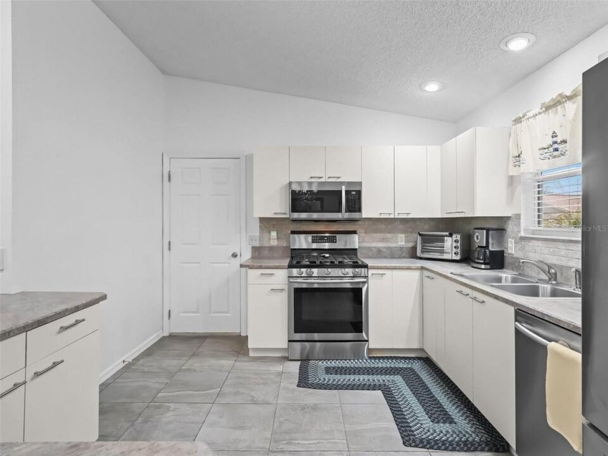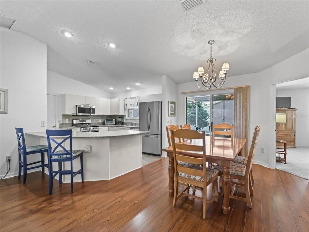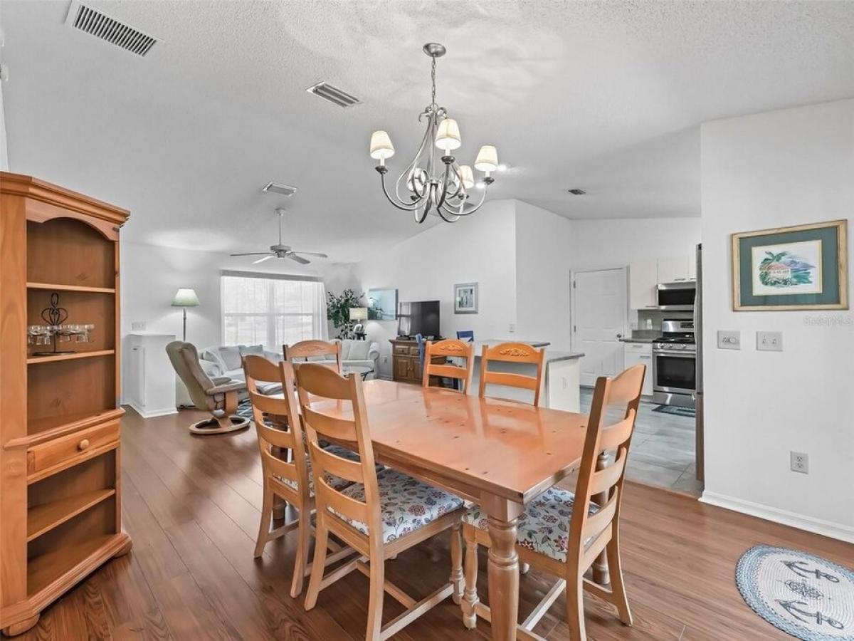NO BOND! CUTE-AS-CAN-BE! Fully Furnished/ TURNKEY, two bedroom, two bath AUSTIN Cottage/Ranch home in the Village of CHATHAM! 2 Min (.6mi) to Chatham Rec Center amp; POOL! 3 min to HIGHLY RANKED Amberwood amp; Oakleigh Golf courses! 1 Mi WALK/CART RIDE to the NEW FIRST RESPONDERS REC CENTER FACILITIES! ROOF 2019, HVAC 2024! Featuring VOLUME CEILINGS and an OPEN-CONCEPT floor plan. WIDE PLANK laminate FLOORING enhances the living room and dining room. The kitchen and bathroom floors are all updated with beautiful DESIGNER PORCELAIN TILE. The kitchen is well-equipped: white cabinets w/ contemporary hardware, stylish BACKSPLASH, upgraded countertops, and STAINLESS STEEL appliances: Dishwasher, GAS range, space-saver microwave and double-door refrigerator. The master bedroom features a WALK-IN CLOSET and PRIVATE ACCESS TO LANAI and A MASTER ENSUITE w/ large separate vanity. Both baths boast SHOWER DOORS! The guest area offers a comfortably-sized bedroom, LARGE Built-In CLOSET and the guest bath a tub/shower combo. The LANAI enjoys PRIVACY, NO quot;KISSING LANAIquot;! The garage has space for a car amp; golf cart and provides a coated floor, exterior exit door, and a laundry area w/ NEWER WASHER amp; DRYER amp; a utility sink. This is fresh, lovely home, w/ well-coordinated furnishings on a QUIET STREET close to pools, golf and all the SHOPPING amp; DINING at Mulberry Grove Plaza! (.7mi to NANCY LOPEZ COUNTRY CLUB/RESTAURANT or LEGACY BAR amp; GRILL POOL BAR!)