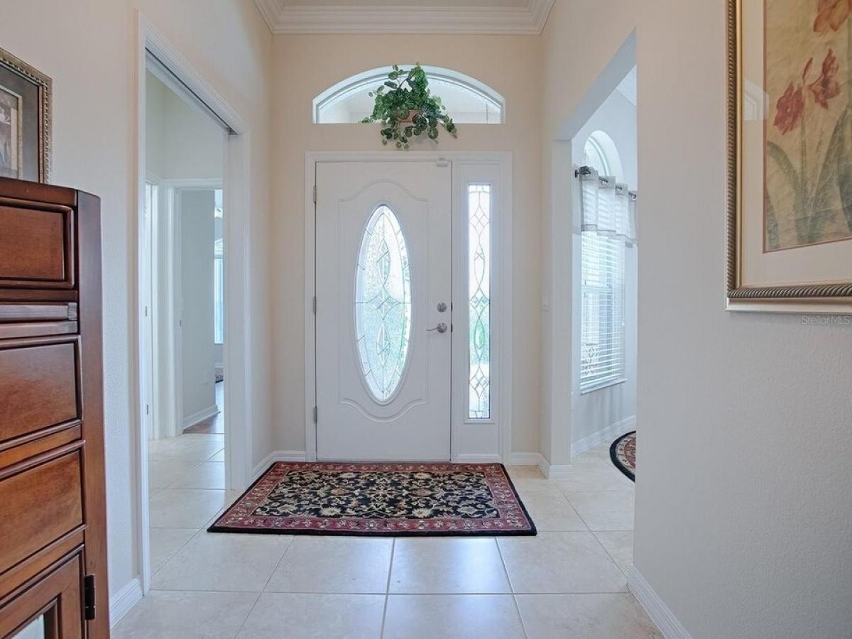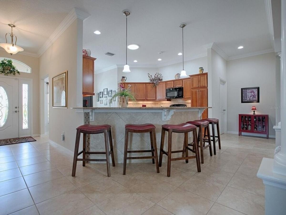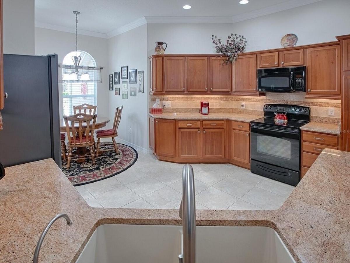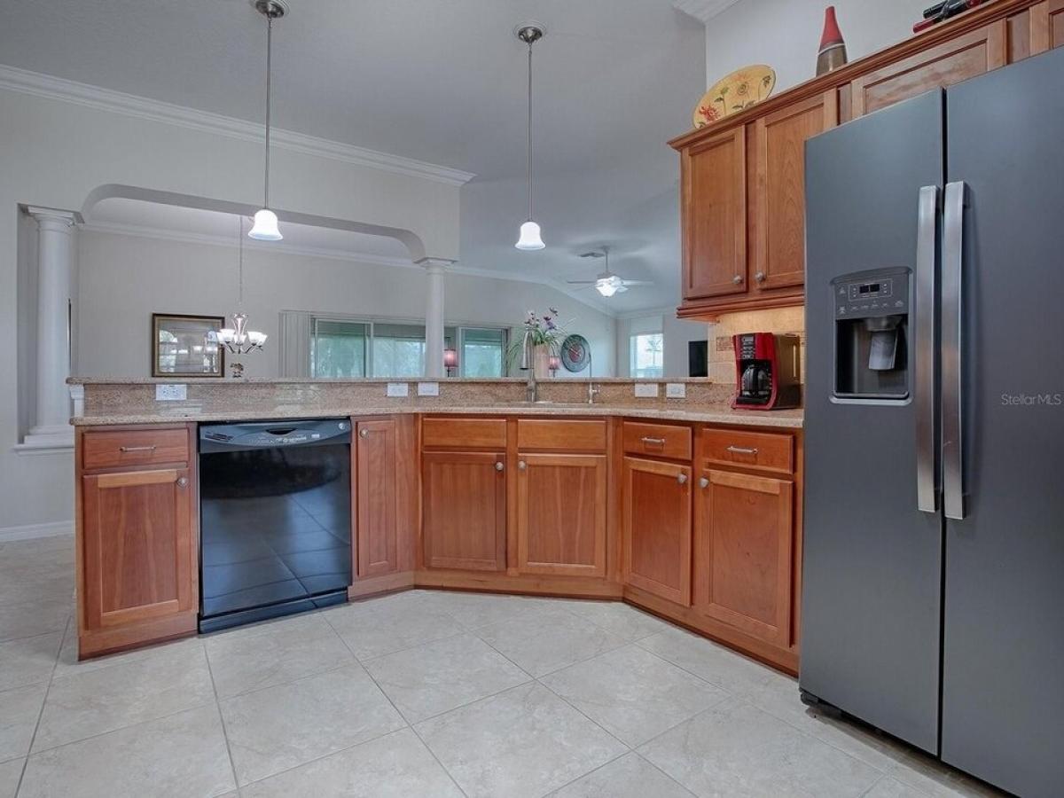 Second Chance!! Buyer Backed Out ~~~ When you want it ALL ndash; Here it is. BRAND NEW ROOF ~ BRAND NEW HVAC ~ HWH 2019 ~ BOND PAID ~ 3/2 EXPANDED GARDENIA with a GOLF CART GARAGE in The Village of PENNECAMP. You will fall in Love with this home as you drive up to see the beautiful corner lot with Stacked Stone Hardscape and the ATTRACTIVE IMPRINTED DECORATIVE DRIVEWAY. Enter in through the gorgeous glass front door into the expanded gardenia with TILE and ENGINEERED HARDWOOD flooring throughout ndash; NO CARPET!! Bright Kitchen with Solar Tube has GRANITE COUNTERS ~ Cherry Stained Cabinets with Under amp; Over Cabinet Lighting. There is a tile backsplash and tile front under breakfast bar. Guest suite has pocket door for nice privacy. Both guest rooms are extended with vaulted ceilings and have large closets and Laminate Floors. Guest bath is extended with tile shower. Primary bedroom has Laminate Floors, Tray Ceiling and a POCKET DOOR leading into the Primary Bathroom. Nice tiled shower and a large linin closet. Extra Shelving in Closets. ENCLOSED LANAI with privacy shades and painted floor. Now for the real extras ~ SOLAR PANELS (Completely Paid For!) have allowed the Electric Bill to average ONLY $40.00 - $50.00 per month. Reverse Osmosis at kitchen sink and refrigerator, Water Softener. Duct system has just been cleaned amp; sanitized with a 3 year warranty. This house has been taken care of and ready for you. Short Cart ride to Lake Sumter Landing or Brownwood Square. Golf Courses in abundance, Rec centers nearby and across the street from your neighborhood pool / mail station. Come See This One!!