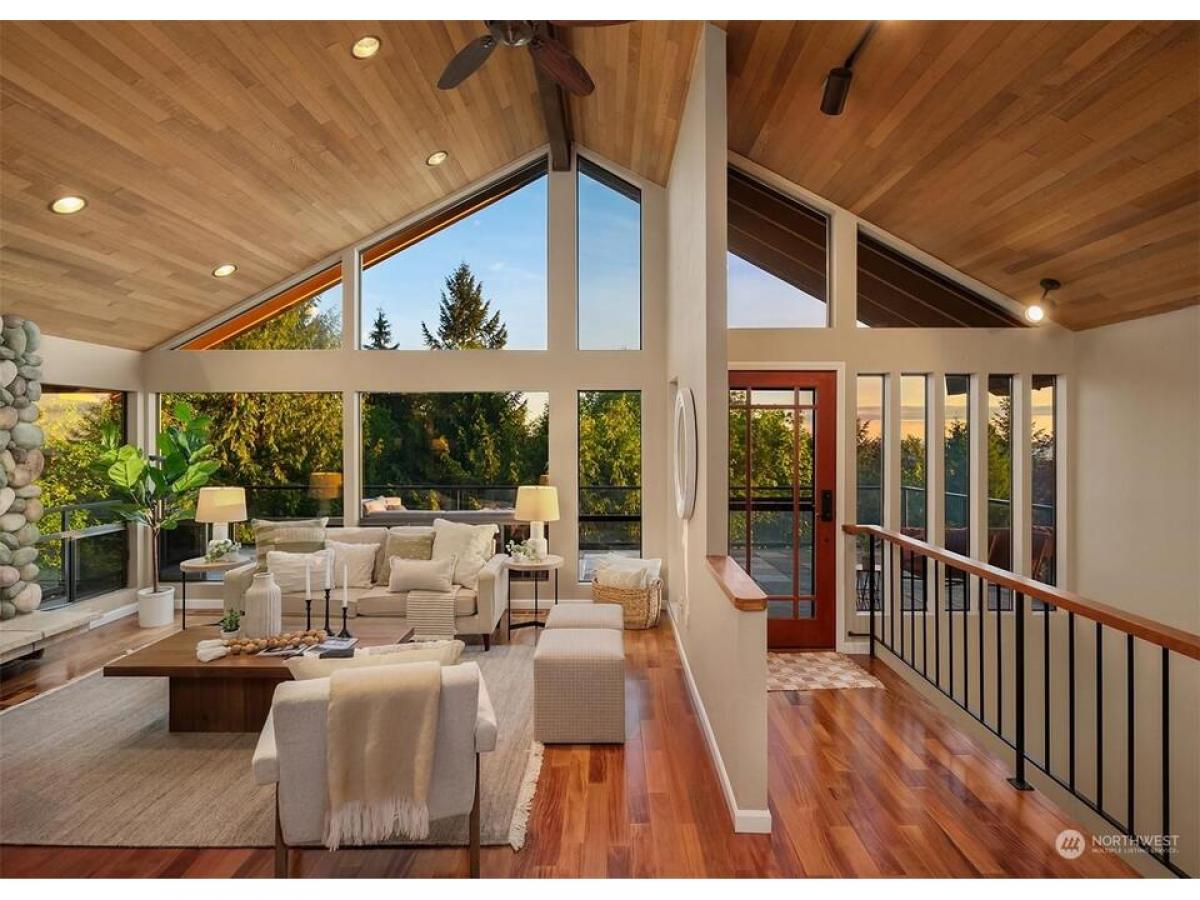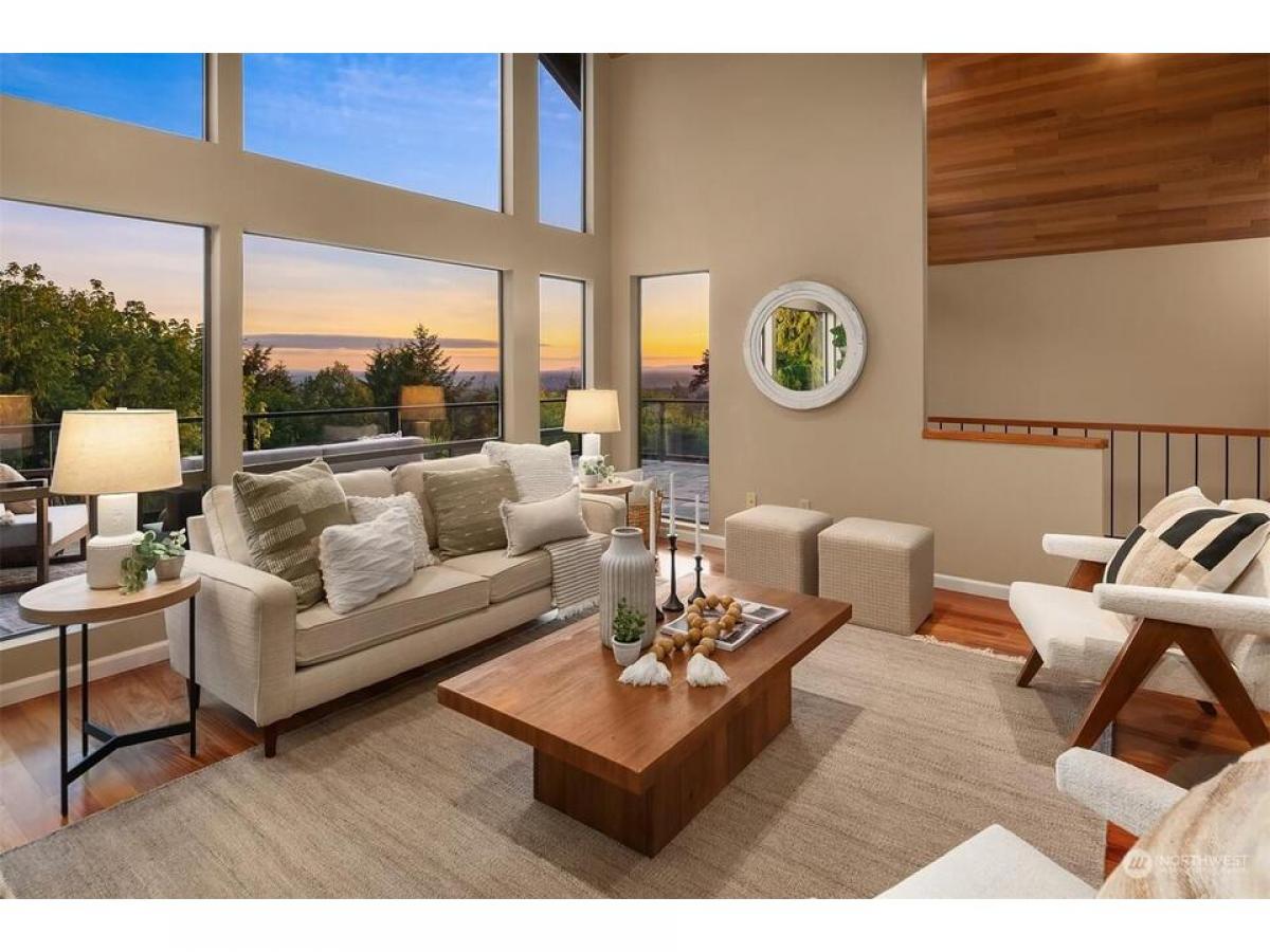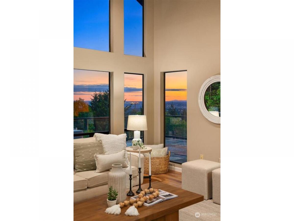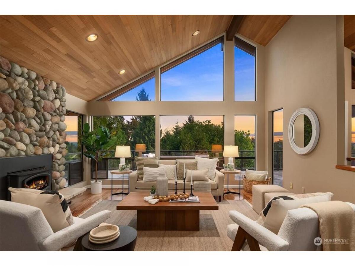 Welcome home to PNW Contemporary living on Cougar Mountain, in the coveted Newcastle community. This beautiful, SW facing home comes with the promise that you'll never miss another sunset with stunning views for miles wherever you look! Situated on 5 lush acres offering 4 bedrooms, an expansive bonus room, office, gym room, sizeable sauna, 3 car garage, plus special architectural touches throughout, including walls of windows natural light, soaring cedar ceilings, and a river rock fireplace. The updated kitchen, 2 large dining spaces, a multitude of decks, (both covered uncovered) truly make entertaining a dream. Located in the esteemed Issaquah SD and close to walking trails + the urban amenities of Bellevue, Issaquah The Landing.