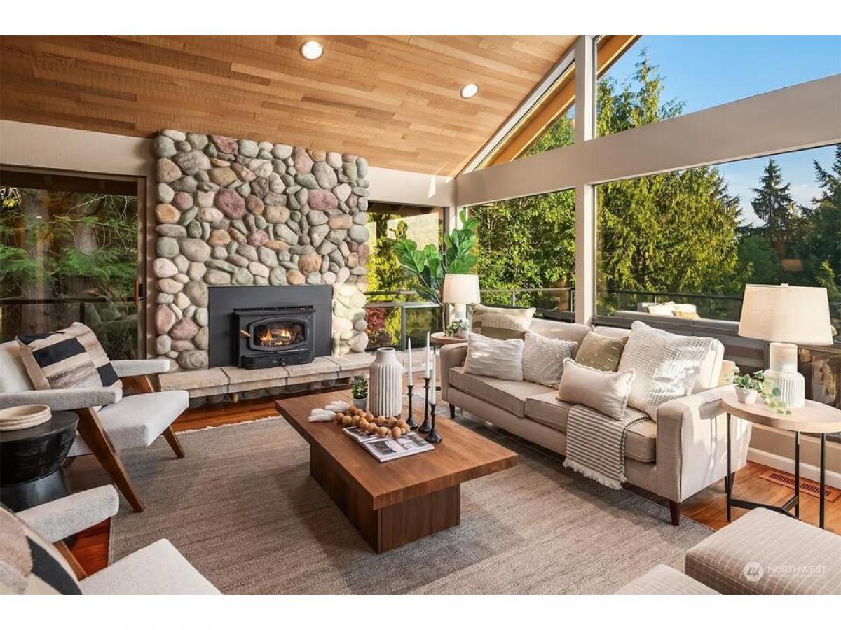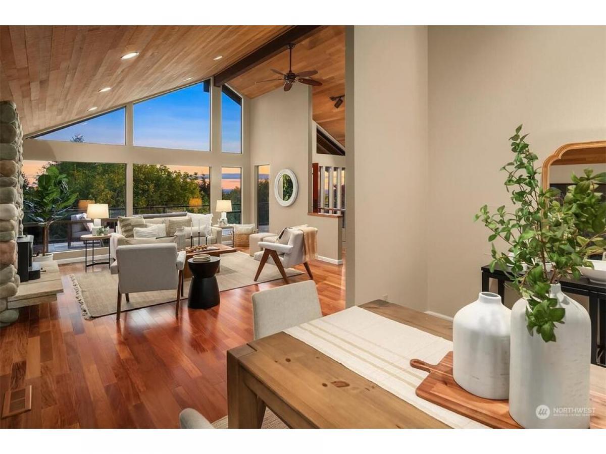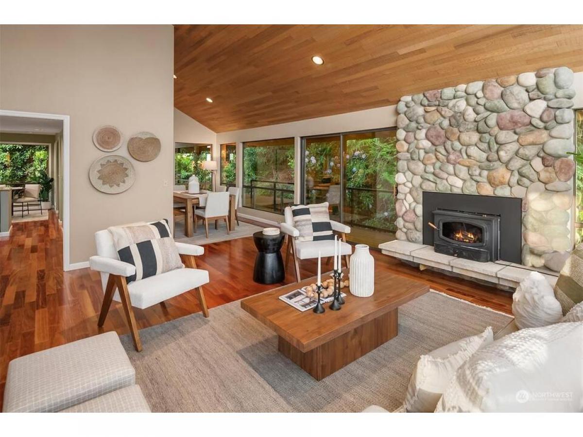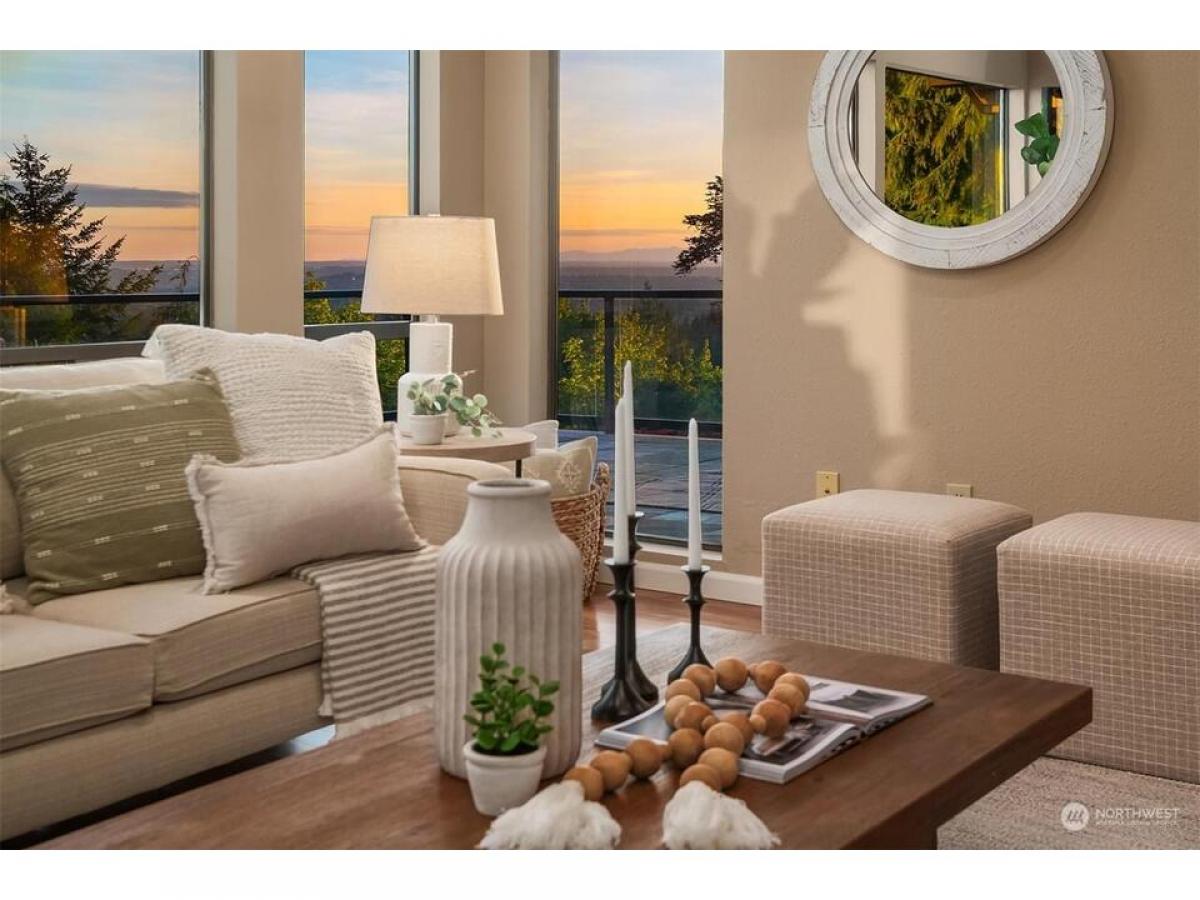 Welcome home to PNW Contemporary living on Cougar Mountain, in the coveted Newcastle community. This beautiful, SW facing home comes with the promise that you'll never miss another sunset with stunning views for miles wherever you look! Situated on 5 lush acres offering 4 bedrooms, an expansive bonus room, office, gym room, sizeable sauna, 3 car garage, plus special architectural touches throughout, including walls of windows natural light, soaring cedar ceilings, and a river rock fireplace. The updated kitchen, 2 large dining spaces, a multitude of decks, (both covered uncovered) truly make entertaining a dream. Located in the esteemed Issaquah SD and close to walking trails + the urban amenities of Bellevue, Issaquah The Landing.