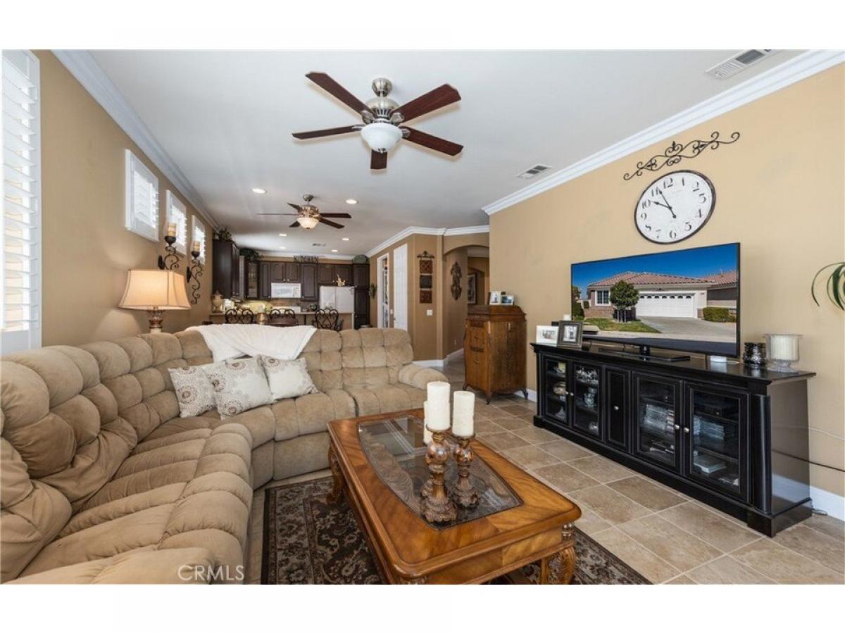 Welcome to the vibrant 55+ community of Solera Oak Valley Greens! This beautifully maintained home showcases pride of ownership throughout. The kitchen features cabinetry and a convenient pantry, seamlessly flowing into a cozy dining nook and spacious living room complete with a fireplace- perfect for relaxing. Step outside to a private backyard retreat with an extended patio cover, low-maintenance landscaping, with plants and a charming grassy area ideal for your pet. Concrete walkways on both sides of the home provide easy access, and a block wall at the back adds privacy. Inside, yoursquo;ll find generously sized bedrooms, a versatile bonus room, a laundry room with built-in cabinetry, elegant crown molding, and stylish wooden shutters throughout. Enjoy everything this active adult community has to offer! Residents have access to a wide range of amenities including a clubhouse, pool and jacuzzi, sun deck, billiards room, multi-purpose space, BBQ area, and scenic greenbelt. Whether yoursquo;re looking to stay social and active or simply relax, Solera Oak Valley Greens has something for everyone.