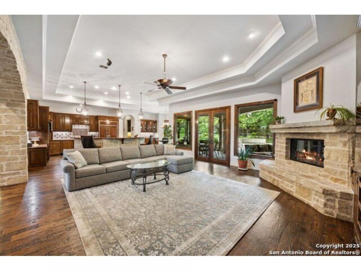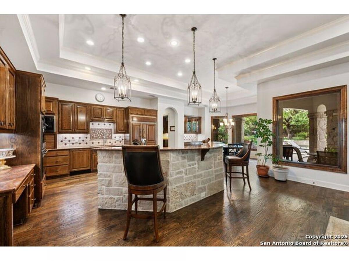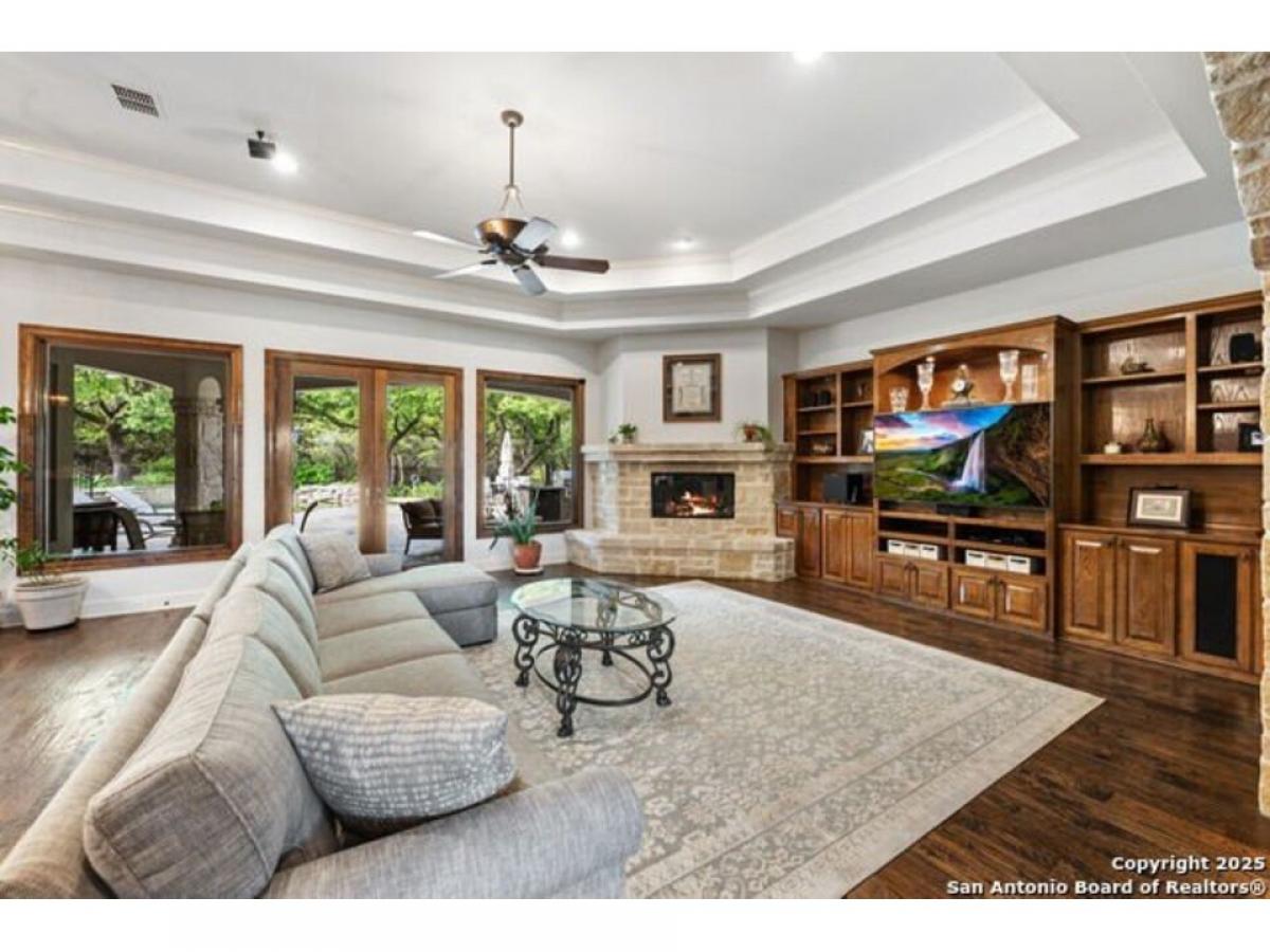 Welcome to your dream Hill Country estate a serene and private retreat nestled among stunning mature oaks, with timeless stone architecture and unmatched curb appeal in a cul-de-sac setting. From the moment you arrive, you#039;re surrounded by nature and elegance. The secluded backyard is a true oasis, featuring natural flagstone patios with multiple entertaining areas, a beach-entry pool with a spa, separate Caldera Spa and a spacious covered patio complete with an outdoor fireplace and built-in gas grill. Inside, you#039;ll be captivated by exceptional craftsmanship throughout-stone archways, detailed ceilings, wood-framed windows, and built-in cabinetry that provides both charm and functionality. The open-concept layout seamlessly connects the main living areas, making it perfect for relaxing or entertaining. The living room is spacious and bright, anchored by a stone fireplace and custom built-ins, all with views of the tranquil backyard. The gourmet kitchen is a chef#039;s dream, featuring generous cabinetry with an appliance garage, stainless steel appliances, double ovens, beautiful backsplash, and a stained-glass pantry door. The adjacent breakfast nook offers a 180-degree view of the backyard, while the butler#039;s pantry and display cabinet add a touch of sophistication. The primary suite is a luxurious retreat, flooded with natural light and offering direct patio access, a cozy sitting area, private coffee bar, and a spa-like bathroom. Enjoy dual vanities, a Jacuzzi tub, and an extended walk-in shower designed for ultimate comfort. Each bedroom is thoughtfully placed for privacy, with the third bedroom upstairs-an expansive space perfect for an in-law suite, teen hangout, or private guest quarters, complete with a walk-out balcony and steam shower. The guest room downstairs includes its own private bath, patio access, and a personal coffee bar. The home office is impressive, with built-in shelving, rich custom woodwork, and a coffered ceiling-ideal for remote work or a personal library. Even the laundry room is a standout, offering extra storage, folding space, and a sink. 36 solar panels with four Tesla powerwall batteries for backup. Also, a Flood Stopper System to keep home from flooding that saves on homeowners insurance. Well had the pump replaced approx. 2 years ago and feeds the sprinkler system. From its tranquil setting to its thoughtful design, this estate offers a lifestyle of elegance and ease. It#039;s not just a home-it#039;s a destination you#039;ll never want to leave. Please be aware some photos have been virtually staged.
