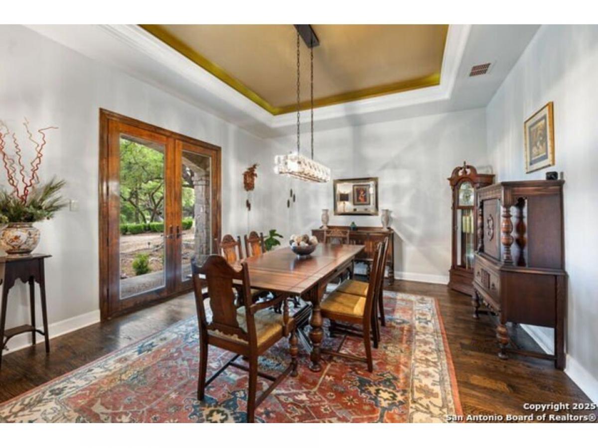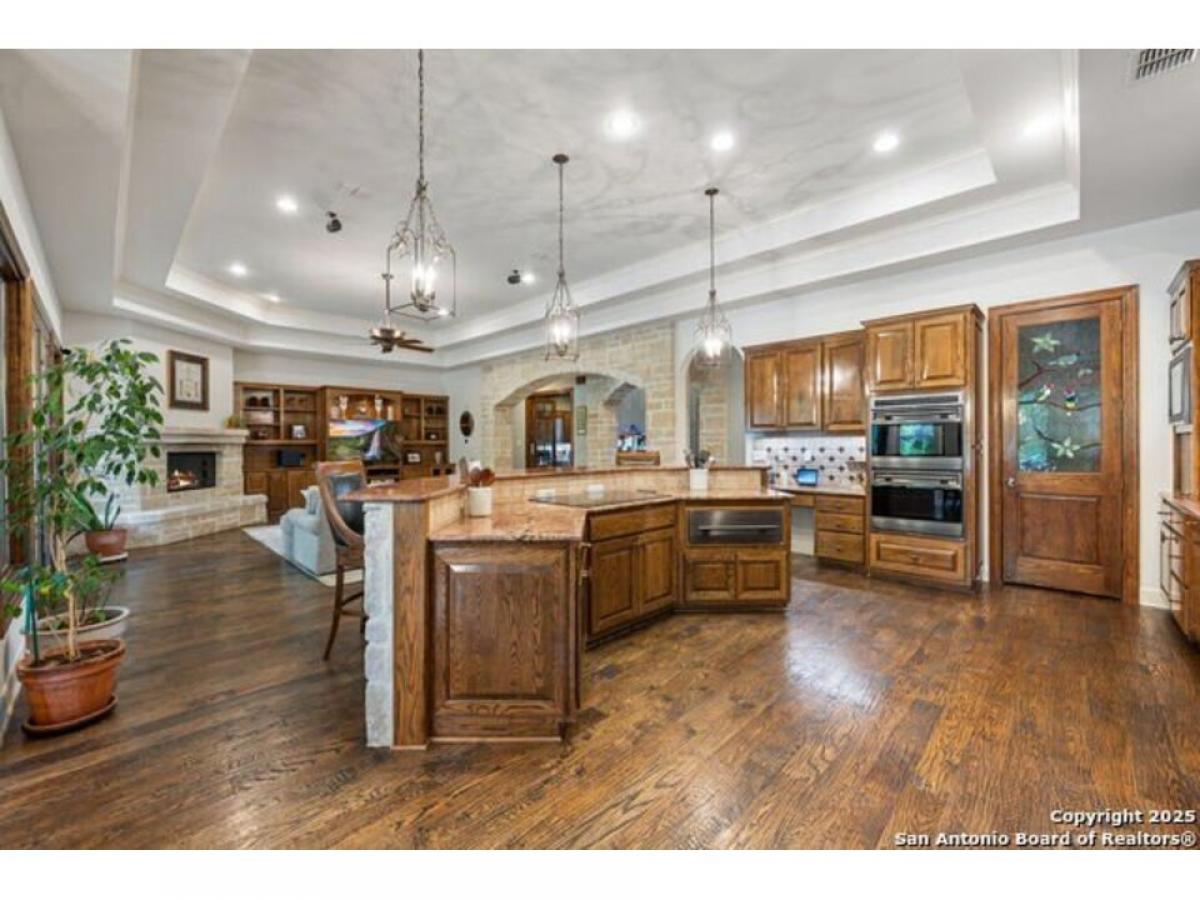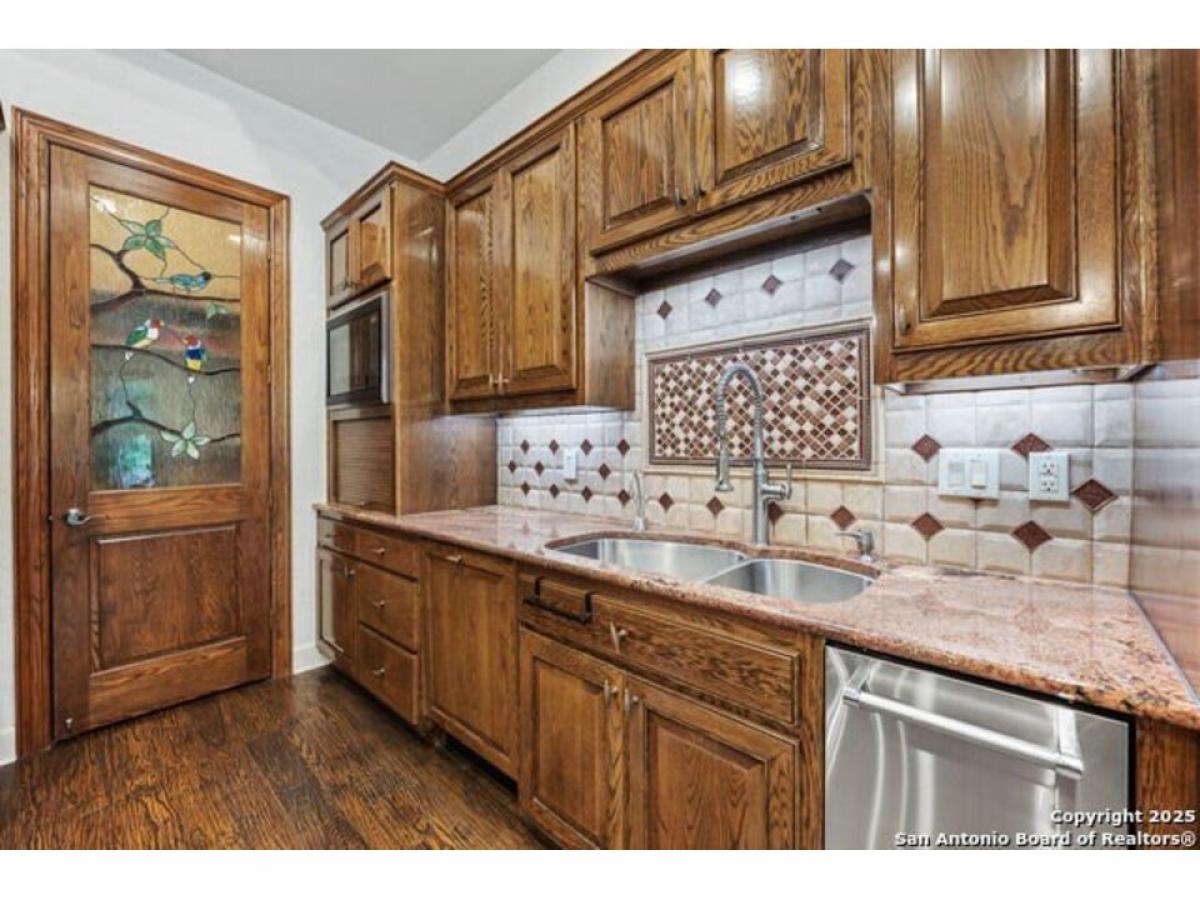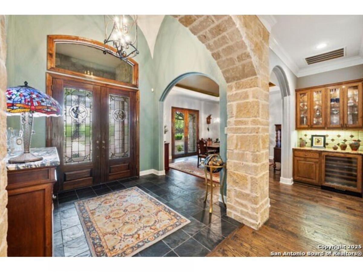 Welcome to your dream Hill Country estate a serene and private retreat nestled among stunning mature oaks, with timeless stone architecture and unmatched curb appeal in a cul-de-sac setting. From the moment you arrive, you#039;re surrounded by nature and elegance. The secluded backyard is a true oasis, featuring natural flagstone patios with multiple entertaining areas, a beach-entry pool with a spa, separate Caldera Spa and a spacious covered patio complete with an outdoor fireplace and built-in gas grill. Inside, you#039;ll be captivated by exceptional craftsmanship throughout-stone archways, detailed ceilings, wood-framed windows, and built-in cabinetry that provides both charm and functionality. The open-concept layout seamlessly connects the main living areas, making it perfect for relaxing or entertaining. The living room is spacious and bright, anchored by a stone fireplace and custom built-ins, all with views of the tranquil backyard. The gourmet kitchen is a chef#039;s dream, featuring generous cabinetry with an appliance garage, stainless steel appliances, double ovens, beautiful backsplash, and a stained-glass pantry door. The adjacent breakfast nook offers a 180-degree view of the backyard, while the butler#039;s pantry and display cabinet add a touch of sophistication. The primary suite is a luxurious retreat, flooded with natural light and offering direct patio access, a cozy sitting area, private coffee bar, and a spa-like bathroom. Enjoy dual vanities, a Jacuzzi tub, and an extended walk-in shower designed for ultimate comfort. Each bedroom is thoughtfully placed for privacy, with the third bedroom upstairs-an expansive space perfect for an in-law suite, teen hangout, or private guest quarters, complete with a walk-out balcony and steam shower. The guest room downstairs includes its own private bath, patio access, and a personal coffee bar. The home office is impressive, with built-in shelving, rich custom woodwork, and a coffered ceiling-ideal for remote work or a personal library. Even the laundry room is a standout, offering extra storage, folding space, and a sink. 36 solar panels with four Tesla powerwall batteries for backup. Also, a Flood Stopper System to keep home from flooding that saves on homeowners insurance. Well had the pump replaced approx. 2 years ago and feeds the sprinkler system. From its tranquil setting to its thoughtful design, this estate offers a lifestyle of elegance and ease. It#039;s not just a home-it#039;s a destination you#039;ll never want to leave. Please be aware some photos have been virtually staged.