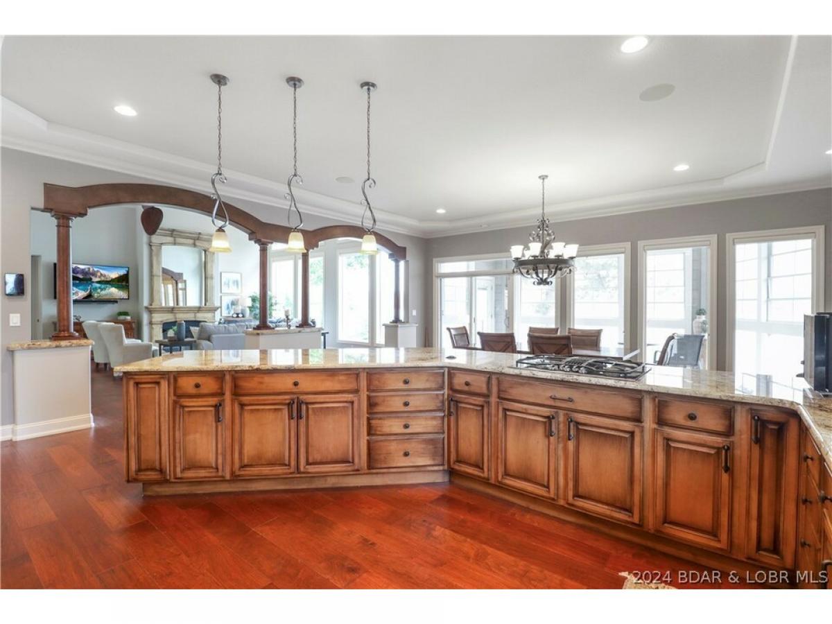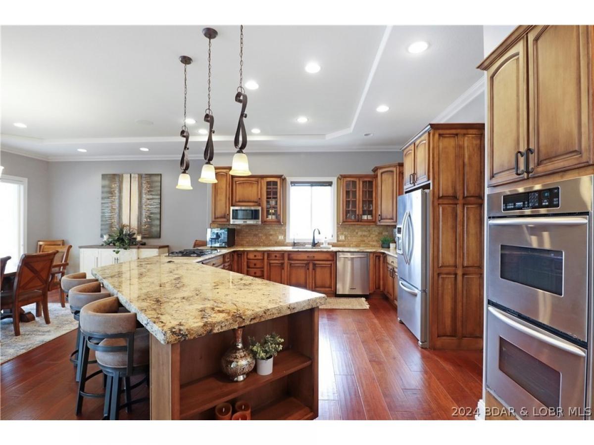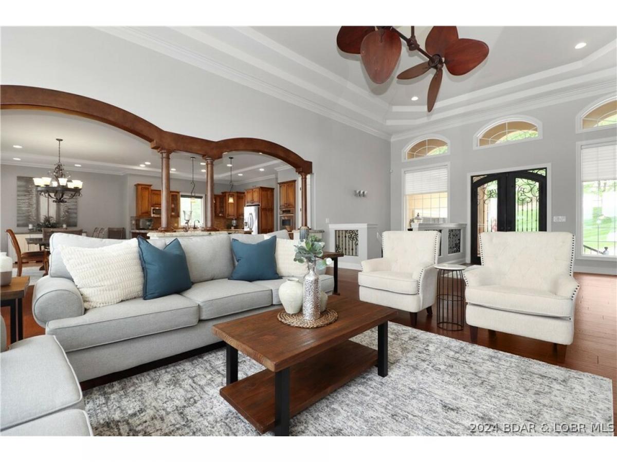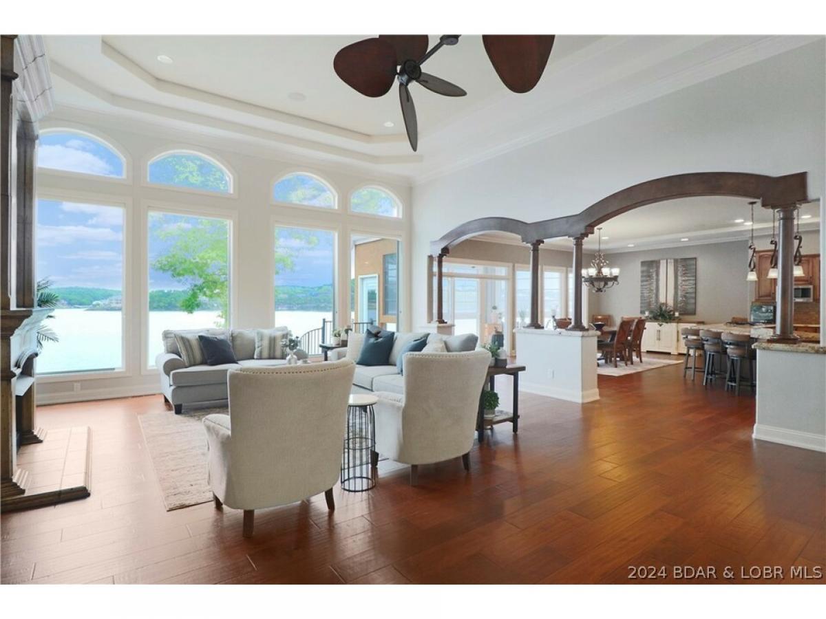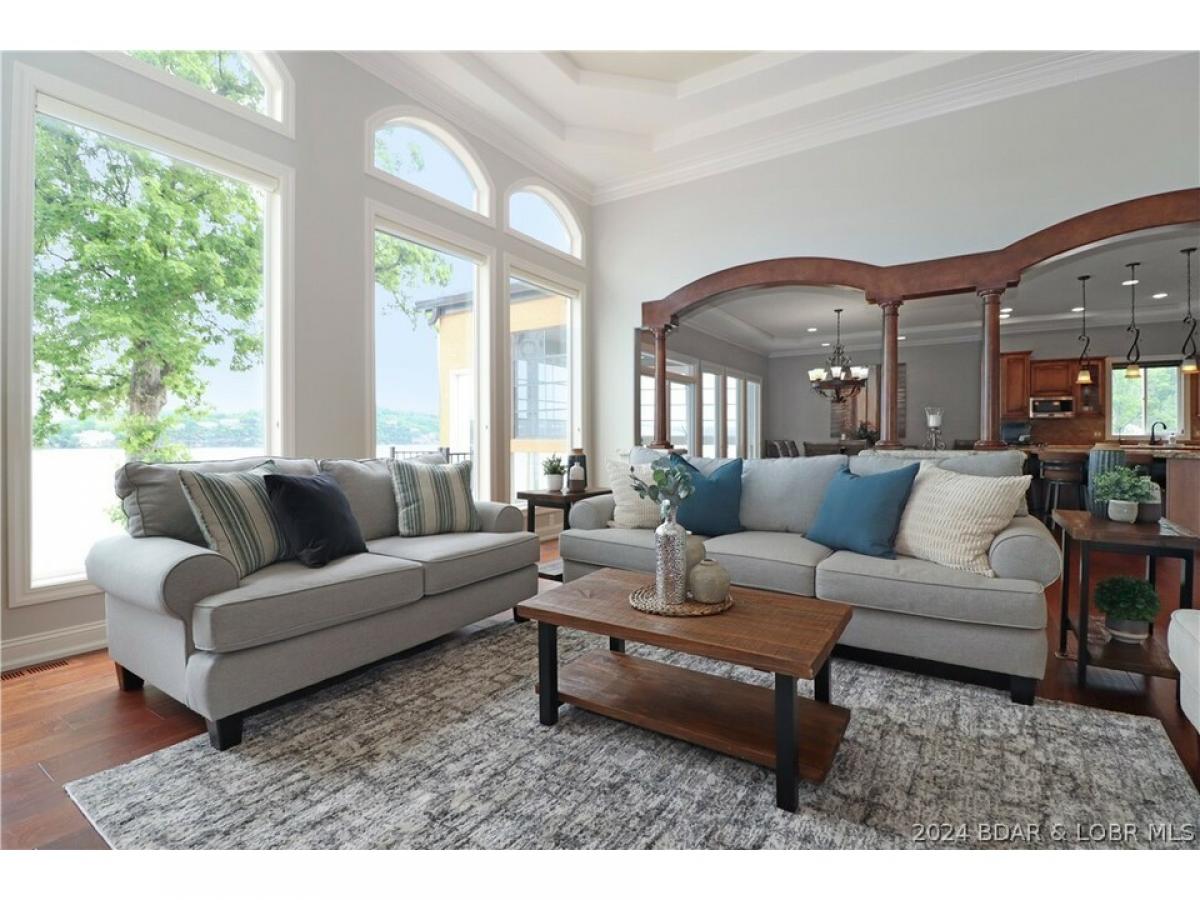 Welcome to this exclusive waterfront retreat in Porto Cima, where luxury & views converge to create a home you never want to leave. This home is eastern facing to capture breathtaking sunrises & moonrises, with unrivaled views of the 16 MM at Lake of the Ozarks. Boasting 5 bedrooms, 3.5 baths spread across two meticulously designed stories. The upper level provides an open concept kitchen, living & dining areas leading to a finished deck/four seasons room with stunning main channel views. A master bedroom suite that is not only massive but complete with a blissful retreat spa like bath. The lower level offers a cozy fireplace, living area, game space & wet bar. The 2nd junior suite lakeside bedroom is located just off the lower level living. Two additional bedrooms & one non conforming office all located in the lower level. Engage in resort style living from a dip in the lakeside pool, private dock for easy access to the water and a wave break added for addtn'l dock protection. Investors, take note as this residence would bring in staggering nightly rental$$ income. Embrace the lake lifestyle you deserve in this exceptional Porto Cima residence. Call us today for your private tour.