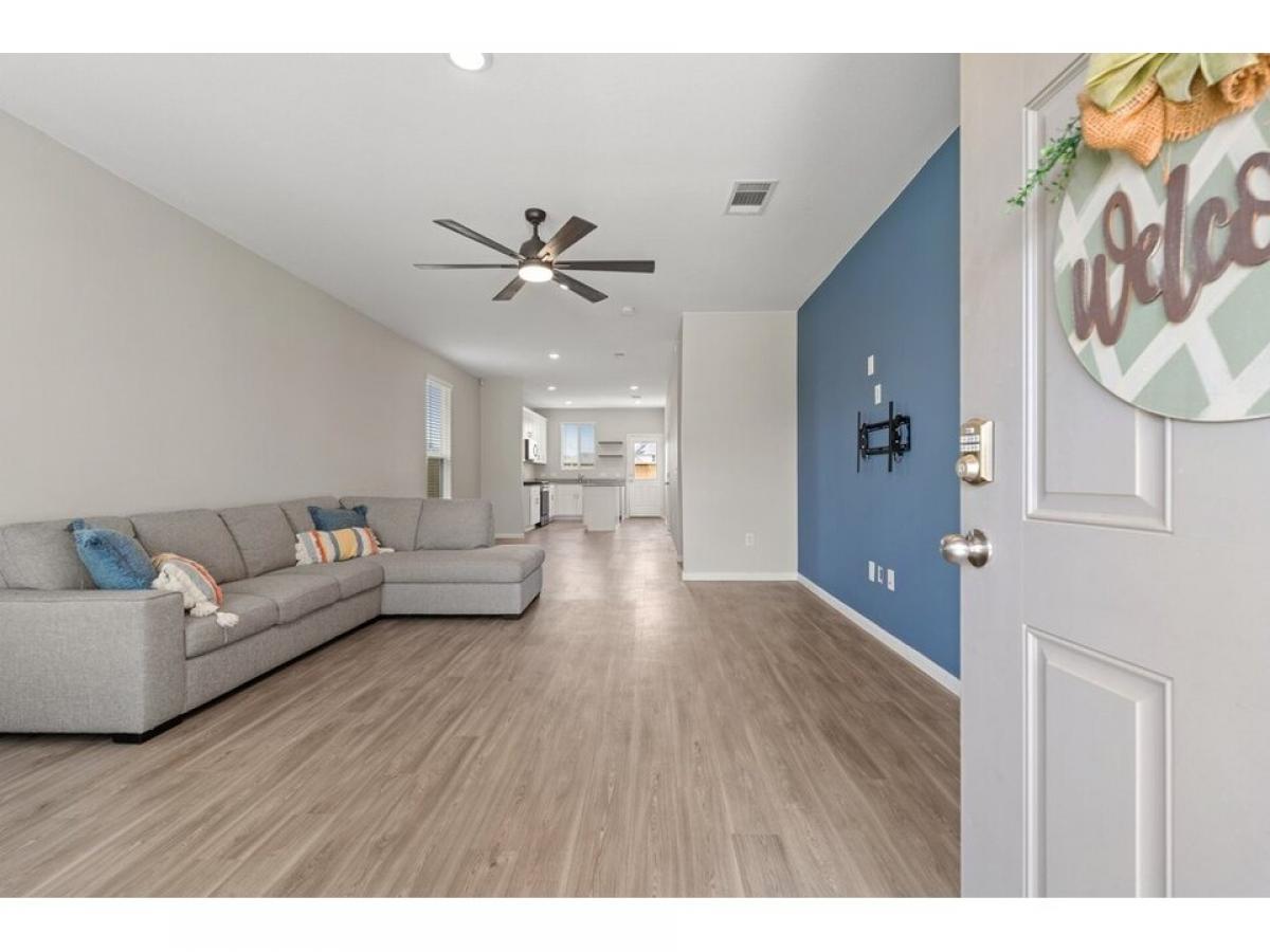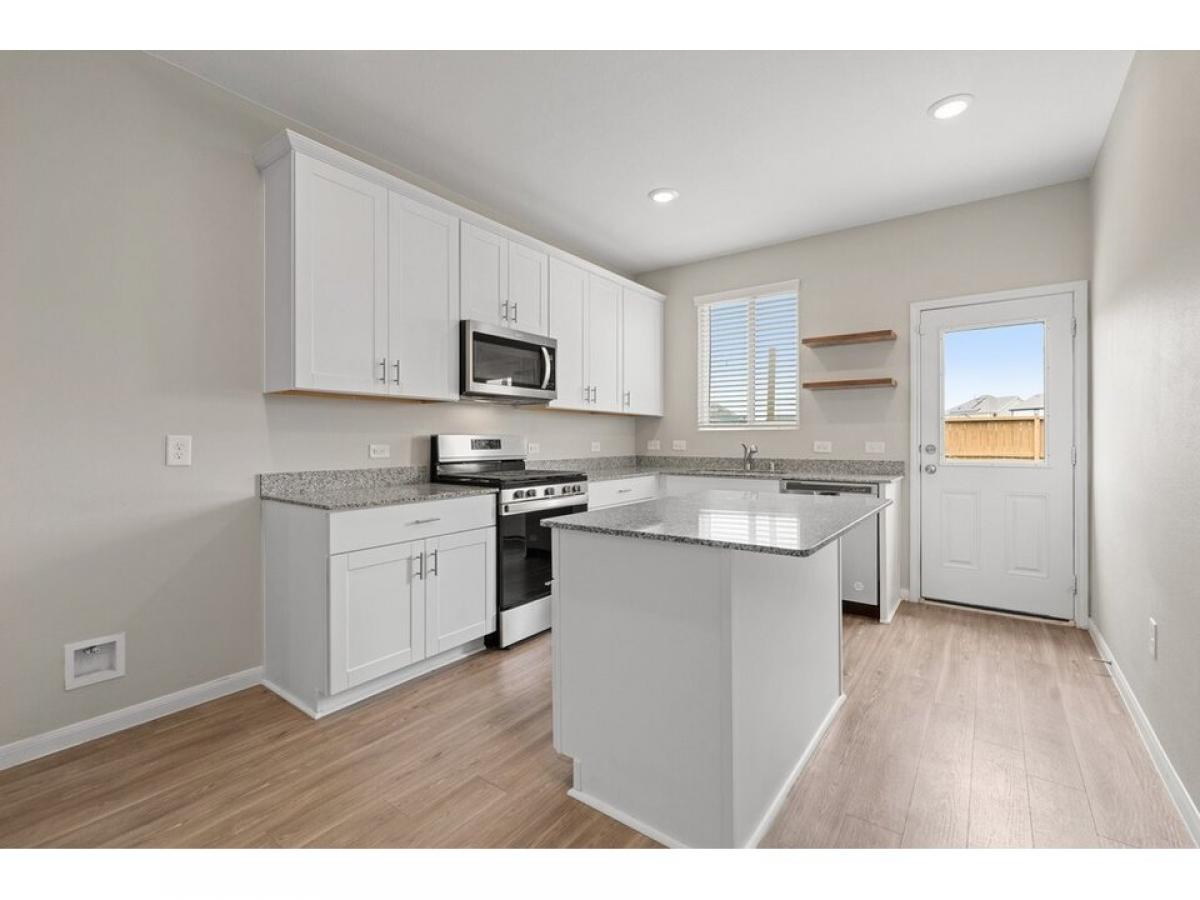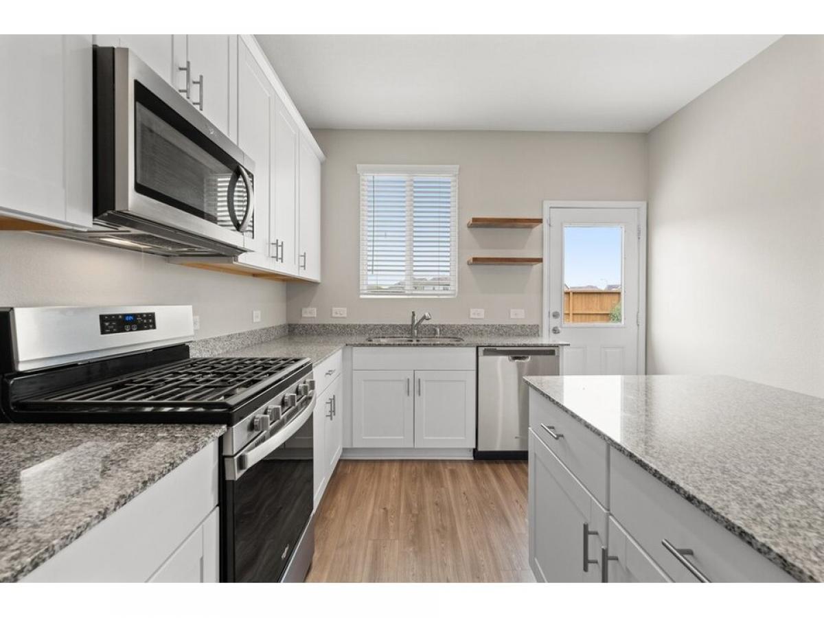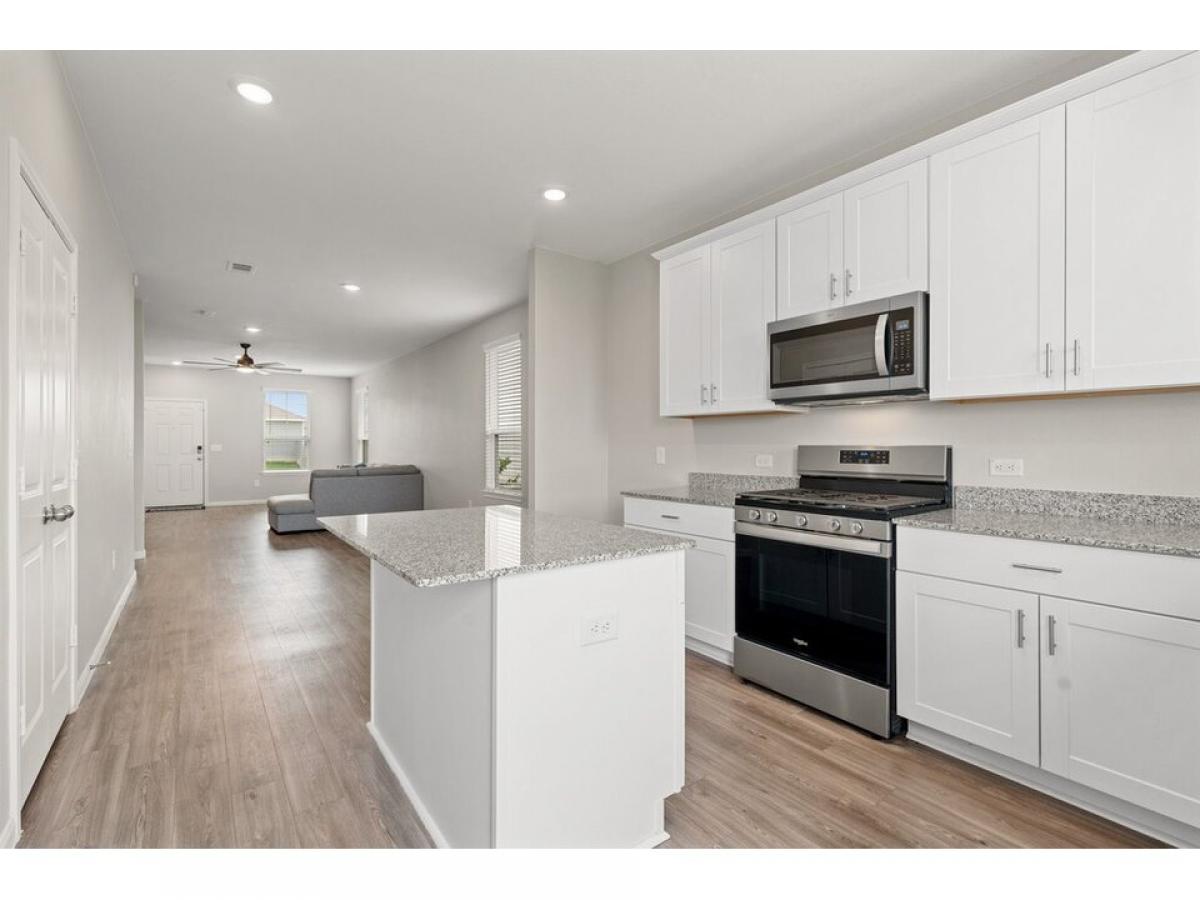 This adorable Becket floorplan is a 3 bedroom, 2-bath one-story home. The family room flows into the open kitchen and dining area. The island kitchen features granite countertops, 42quot; cabinets with Satin Nickel hardware, and upgraded Whirlpool stainless steel appliances, including a 5-burner gas range. The primary suite offers a large walk-in closet, dual vanities, an oversized soaking tub, and a separate shower. Luxury vinyl flooring runs throughout, with carpeting in the bedrooms. Additional features include blinds, a fully sodded yard with a sprinkler system, and gutters on all four sides. Located within walking distance to the communityrsquo;s resort-style pool, pavilion, outdoor kitchen, dog park, courts, and playground. Conveniently located close to 290 - just a short ride to shopping, dining and entertainment! Close proximity to Zube Park. This home is a must-see!