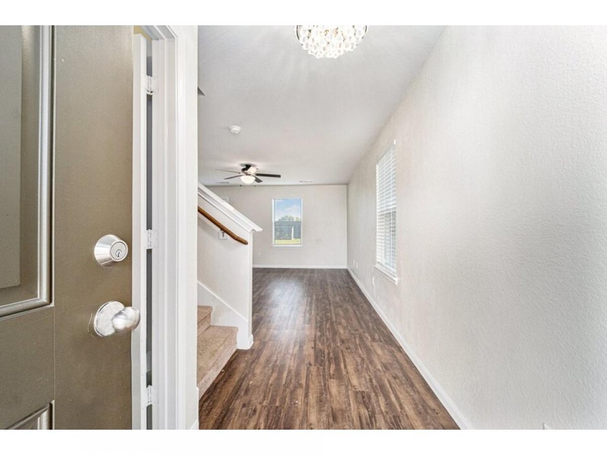 Fall in love with this well-maintained, 3 bedroom, 2 1/2 bath home in Windrow! Open, oversized living area welcomes you into the home and leads to the kitchen with stainless steel appliances, granite countertops, and island w/area for bar stools. Vinyl plank flooring flows throughout the main areas of the home along with carpeted stairs and bedrooms. Primary bedroom with en suite has dual sinks, oversized shower, and a walk-in-closet. 2 additional bedrooms and 1 bath are located upstairs along with flex/game room - great for play room, office. Utility room inside of the home includes washer and dryer. The backyard provides a great area for a future pool or playset and no back neighbors! Spacious 2-car garage provides room for two cars and storage. Gutters and sprinkler system are just a few of the extras! Conveniently located close to 290 - just a short ride to shopping, dining and entertainment! Close proximity to Zube Park and Splash Pad. This home is truly a must see!