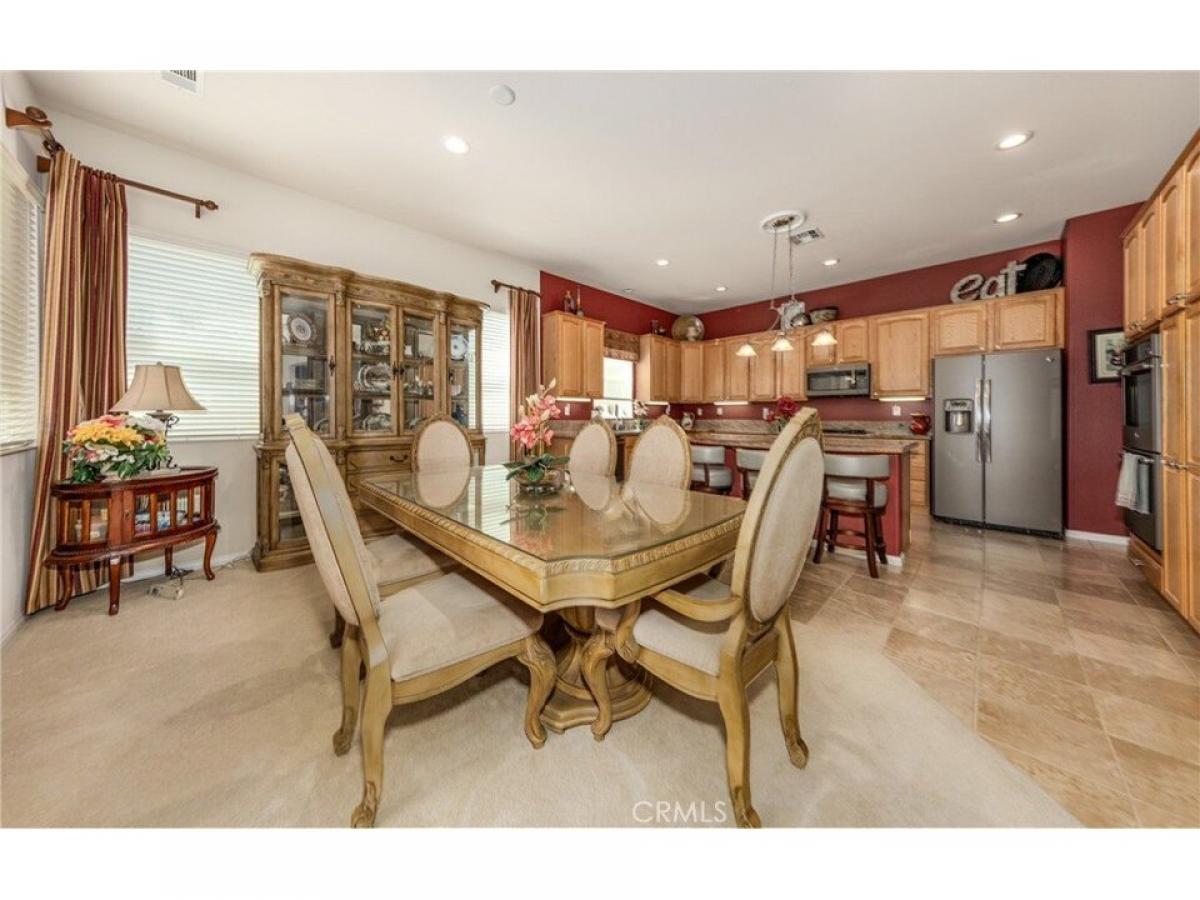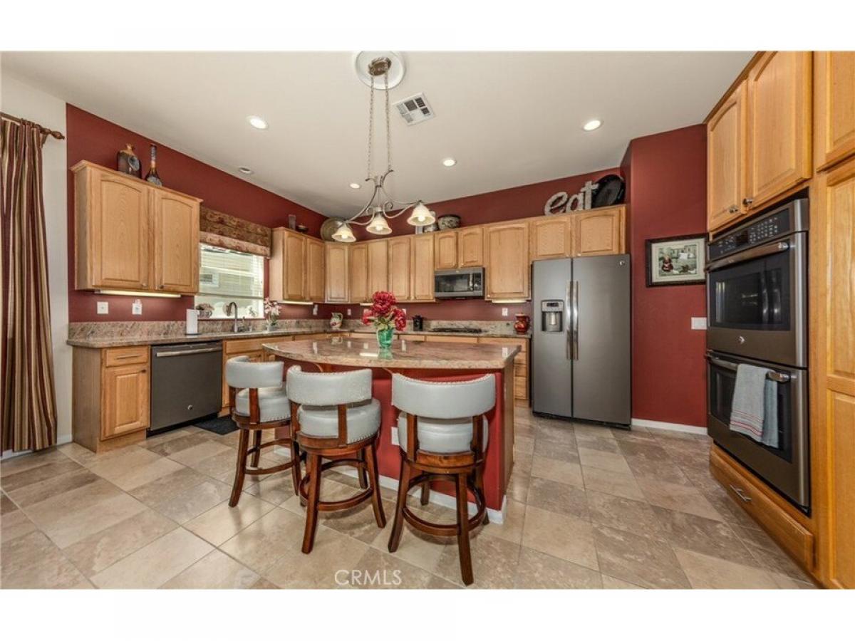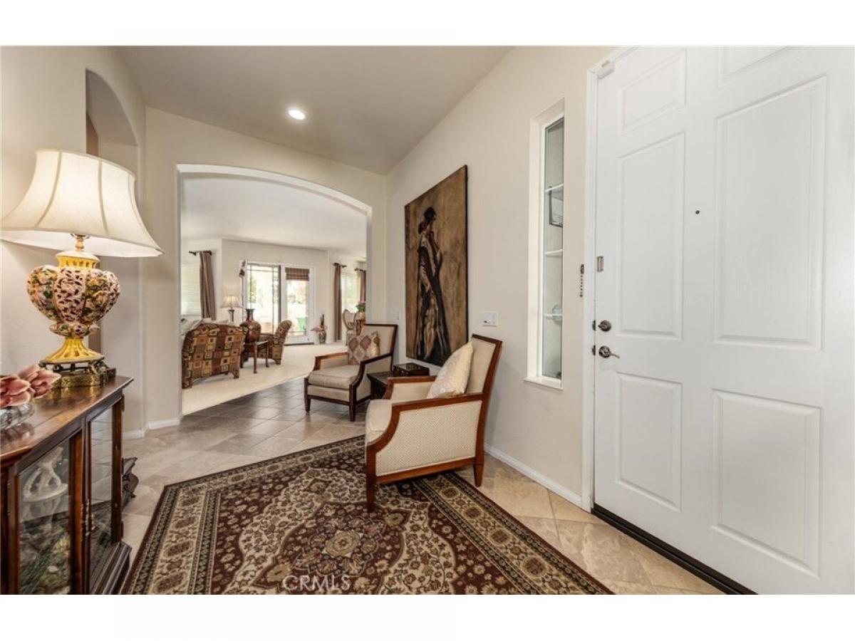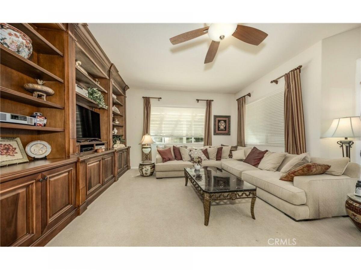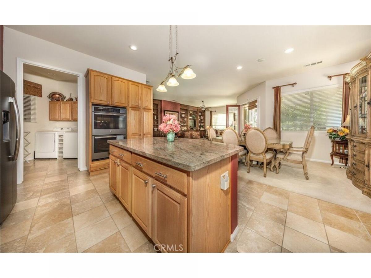 This stunning ldquo;Emeraldrdquo; model is located in the guard-gated community of Solera, offering a view of the Golf Course and stunning view of the mountains and beautifully landscaped front and rear yards. Upon entering, you are welcomed by an open and inviting floor plan, accentuated by tall ceilings. The kitchen features a large granite countertop with seating, ample cabinet space, and stainless steel appliances. The laundry room has a sink, overhead cabinets, and a closet. The open layout seamlessly connects the dining area to the family room, which boasts a handcrafted custom-built wall unit that stretches across both sides of the fireplace. Large windows and French doors lead out to the patio, enhancing the natural light in the space. The spacious main bedroom includes a luxurious bathroom with a double sink vanity and a separate oval tub and shower. The second bedroom has its private bathroom for added convenience. Additionally, the office features a beautiful built-in desk and wall unit. The inviting, manicured backyard provides an excellent area for entertaining and includes a cozy fireplace.