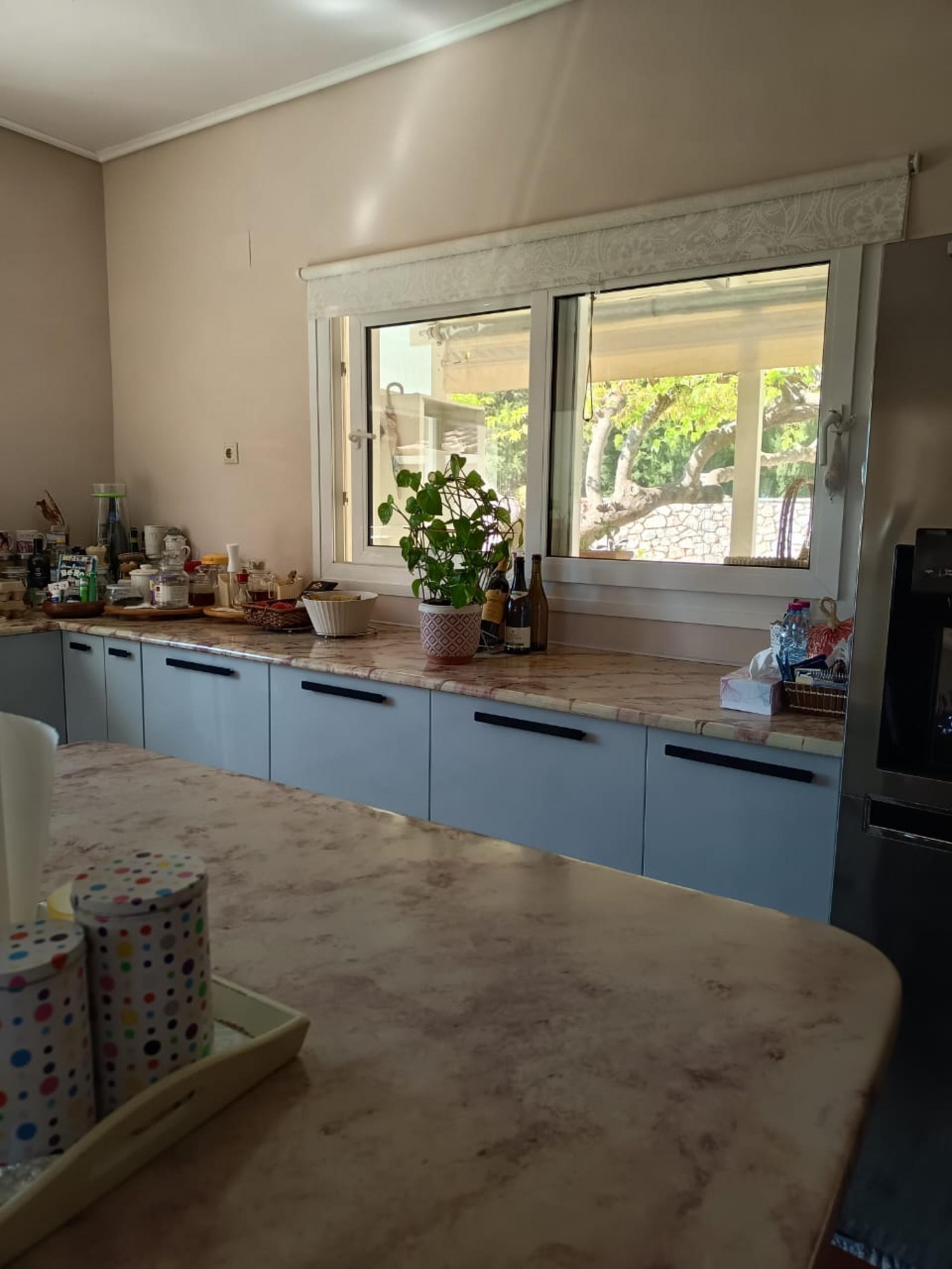 This property is a one floor four bedroom house with a split level lounge with a unobstructed view over the Ionian Islands of Madouri. Sparti. And the Onassis island of Skorpios. Standing on 2750 square metres of land on a quite back road. This house has full under floor heating, plus air-conditioning throughout. The size of the house is 190 square metres, with a basement the same size below. Part of this basement could be turned into a two bedroom apartment, with a gymnasium and other facilities in the rest of this area. There are also plenty of possibilities for developing the grounds outside with landscaping, swimming pools or building a second house on part of the land. It should be noted that this house has been lived in for the past fourteen years. With the right planning this property could be turned into a spectacular villa for living in. Or as a commercial property for summer rents. The property is ten minutes walking distance for the town, and sea front of Nidri. This area is one of the most popular sailing areas in the Mediterranean, with a vast array of marina`s and boat yards in the area. It is three hours drive from Athens airport, and forty minutes from Aktio regional airport, and also just over one hour to the docks at Igoumenitsa for ferries to Italy. It should also be noted that this property would be ideal for anyone with disabilities, such as if they are wheel chair bound as all the surrounding land is very flat.The sale price is 850.000 Euro`s