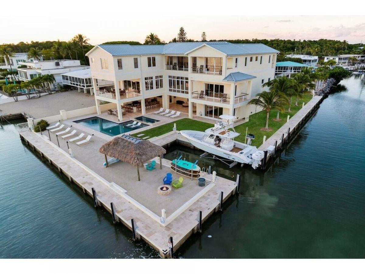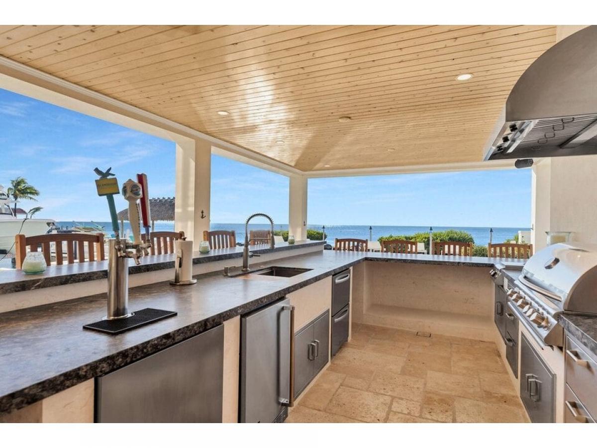 Modern luxury meets barefoot elegance in this oceanfront masterpiece in Islamorada! Stunning ocean views can be seen from almost every room in this spectacular home. Designed for casual living and entertaining, indoor and outdoor living is seamless and allows for year round enjoyment of the Florida Keys lifestyle. Open ocean views, 380 ft. of dockage with power and water and a cut in boatslip with a 25,000 lb. boatlift will accommodate your boats and water toys. Boasting 6 bedrooms, each with ensuite baths, a 3 story elevator whisks you from the ground level to the main living level on the second floor. Here you will find an open floor plan accented with high coffered ceilings and tall windows and doors opening to ocean views. The kitchen has a large island with quartzite counters and a waterfall edge, GE Monogram appliances and walk in pantry. The primary suite offers ocean views, his and hers closets and a magnificent bath with a double vanity, free standing tub and ingenious double shower. There is a junior primary suite on this level with its own breakfast bar and refrigerator. The game room is on the 3rd floor with exceptional ocean views, service bar and 600 bottle wine vault! Also on this floor are 4 guest bedrooms with ensuite baths. This oceanfront oasis is gated for privacy and features a 3 car garage plus an additional single car garage! The pavered driveway leads to the front door and entrance foyer where you see the pool and oceanfront beauty shining through. To the left is the gym to work off last night#039;s dinner and the pool deck and dock are straight ahead ready for some fun today. There is plenty of shade by the outdoor kitchen or you can relax on the oceanfront chaises. The pool with sun shelf and spa are ready for your friends and family to enjoy. Need a little extra shade? An oceanfront tiki sits beside a fire pit for the perfect transition from day to night! Tiki torches along the waterfront are the perfect evening accent!