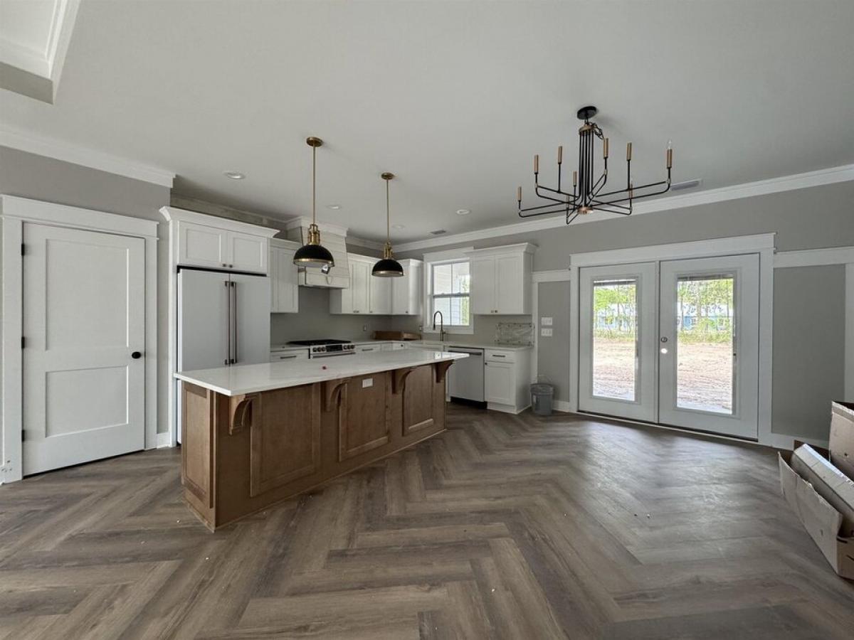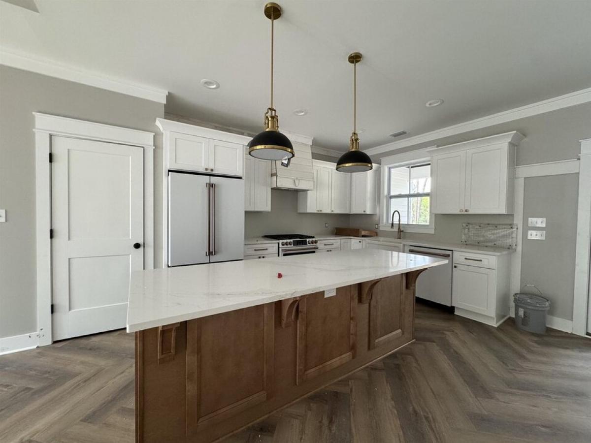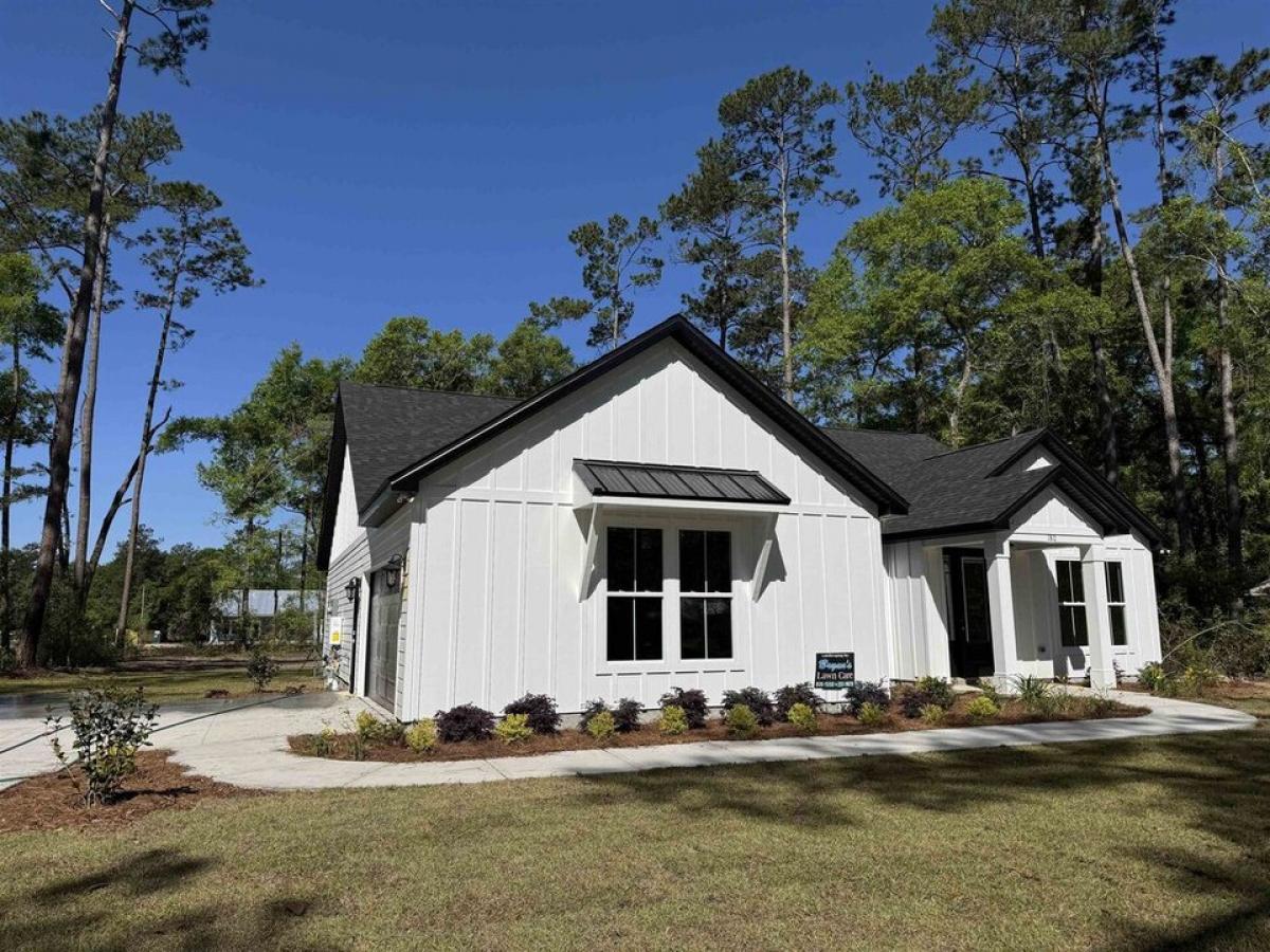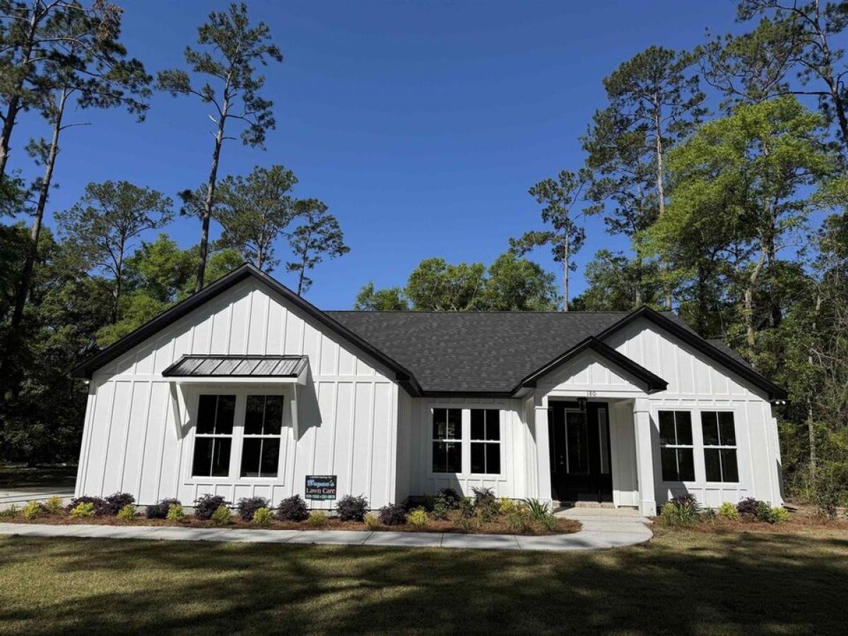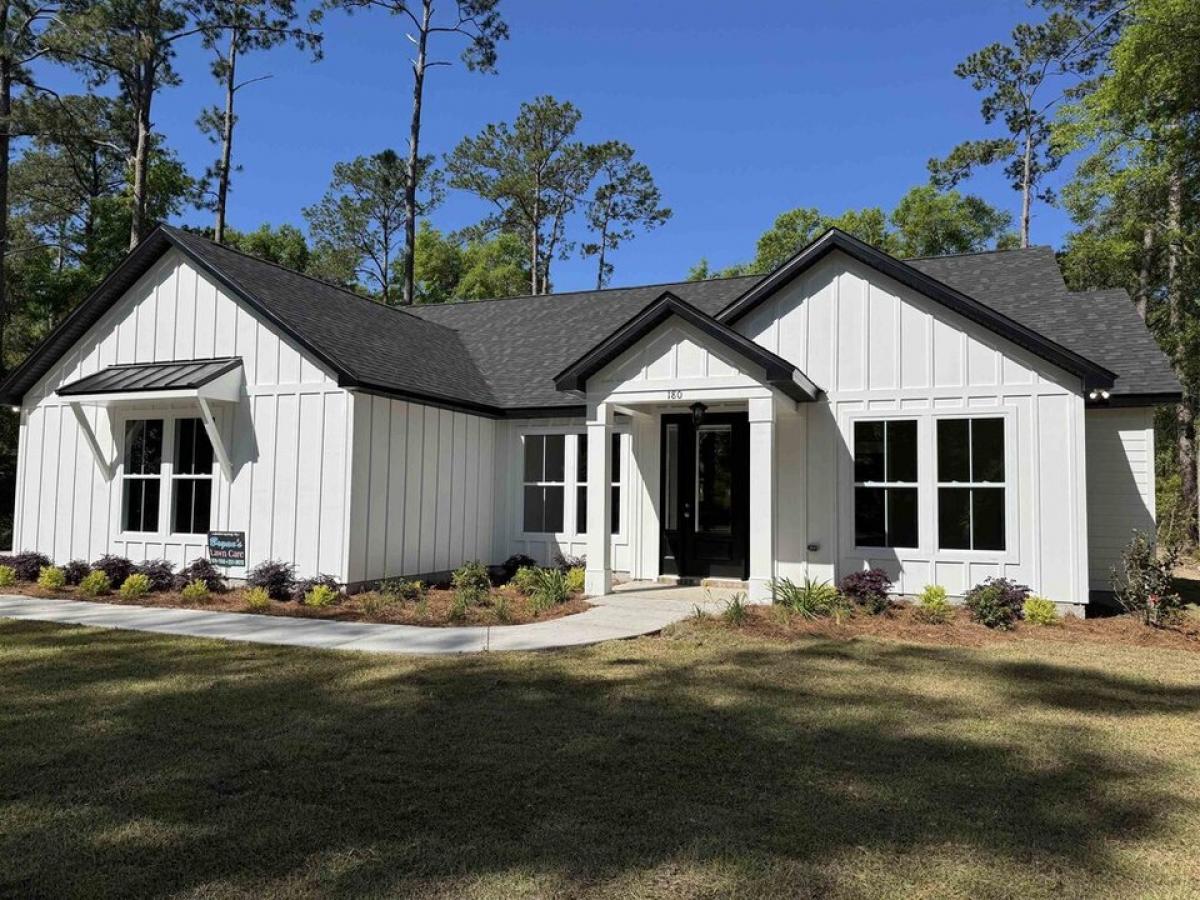 New construction 4 bedroom, 2 bath home situated on .66 acre lot in downtown Crawfordville. Estimated completion is April 2025. This home features 8 foot kitchen island, quartz tops, farm house style kitchen sink, cafeacute; appliances with gold accents, tankless gas water heater, gas range, herringbone LVP flooring throughout home, master shower will has a double slipper tub within the shower, double sink vanity, custom built in storage organization in master closet, laundry room and drop zone area, craftsman style trim details throughout home, 9 foot walls, 8 foot front door and 5 foot windows.
