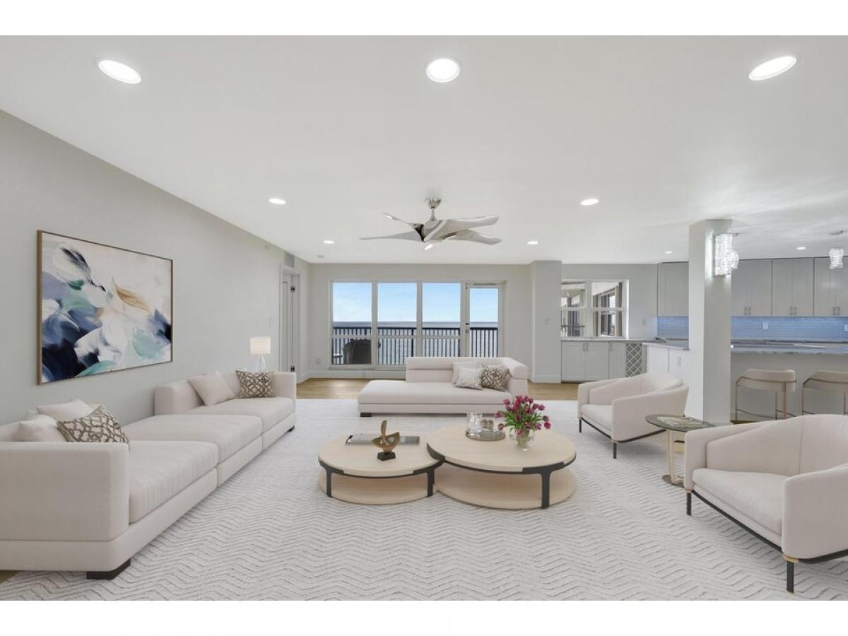 This stunning condo, completely renovated into a coastal paradise, is nestled between the Oceanfront and the Intracoastal Waterway, offering breathtaking panoramic views. The interior showcases exquisite design, with solid core designer doors and carefully selected stone countertops, creating an elegant and modern atmosphere. The transformation of this condo allows for abundant natural light, achieved by removing walls to create an open, airy ambiance. It features four bedrooms and four and a half bathrooms, ensuring ample space and luxury. The updates extend to new LED lighting fixtures, electrical and plumbing systems, and two new AC units and water heaters, providing efficiency and comfort. This unit will have new impact windows and doors installed in late August or September. (MORE)