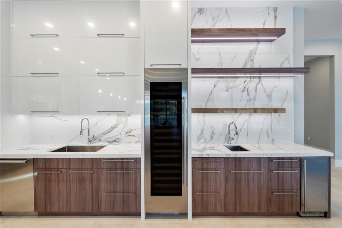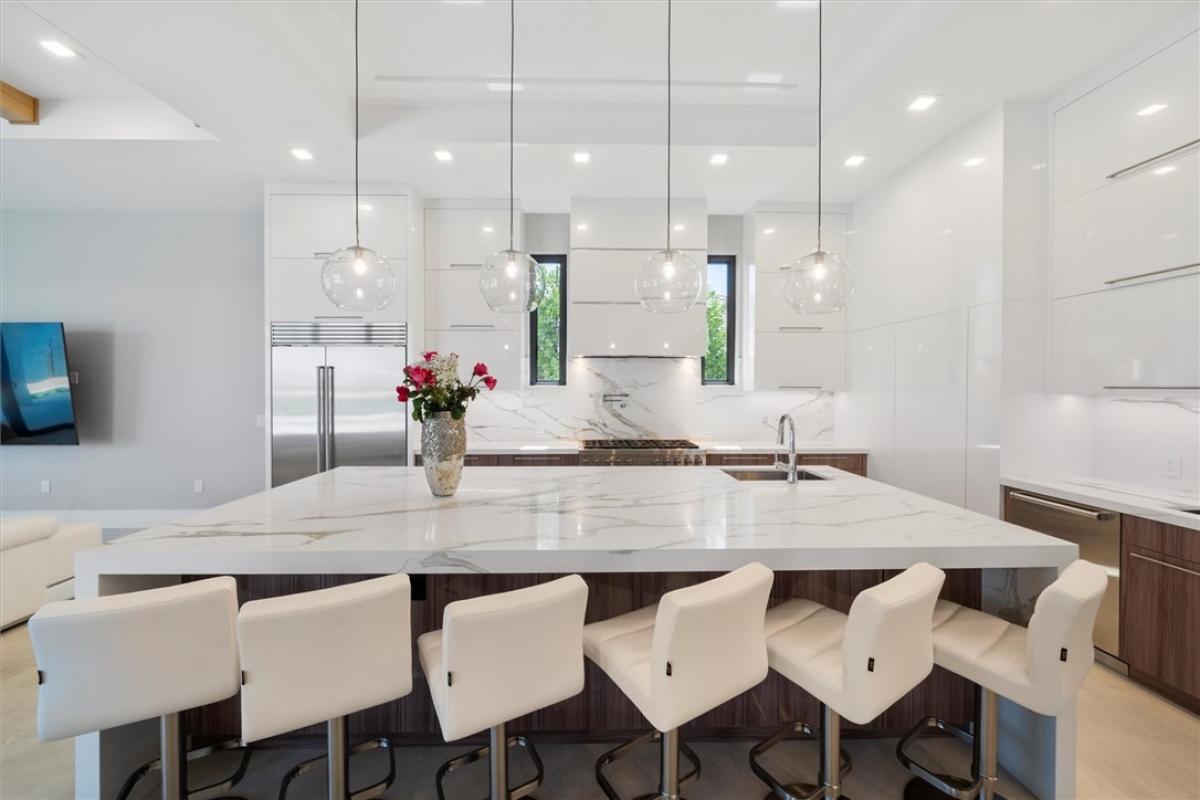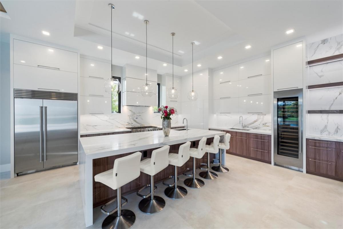 Step into the pinnacle of luxury living direct water with this brand-new custom-built masterpiece in The Moorings. Perfectly positioned along the breathtaking Indian River.This architectural gem offers 4 spacious bedrooms, 4 1/2 baths, and a private study, blending modern elegance with coastal charm. From the moment you arrive the 4-car garage, impact bronze casement windows, sleek metal roof set the tone for sophistication. Step inside to be greeted by soaring ceiling with tray accents an open-concept layout, and exquisite 4'x4' Porcelain flooring from Spain.Infinity Pool/Spa. Dock/ boat lift