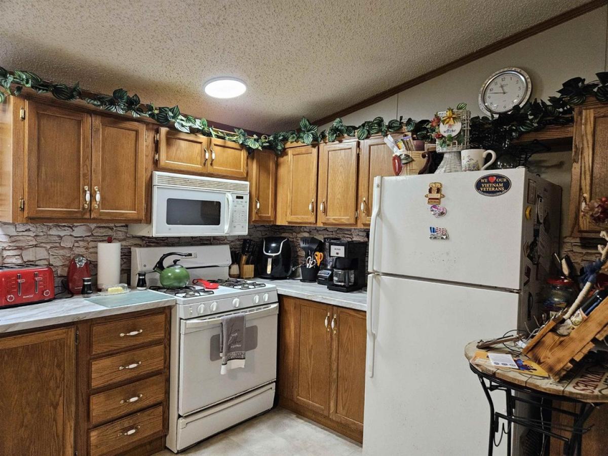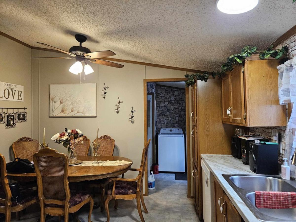 Perched atop a serene hill on 5 sprawling acres, this double-wide home offers a perfect blend of comfort and tranquility. A picturesque paved drive winds its way up to the summit, where this inviting 3-bedroom, 2-bathroom abode awaits. Recently updated to ensure modern convenience and style, this home boasts a new steel roof, countertops, furnace, PEX plumbing, ceiling fans, and light fixtures throughout. These thoughtful enhancements promise durability and efficiency, inviting residents to enjoy peace of mind and comfort year-round. There is also a 24x24 detached garage providing ample space for vehicles and storage, complete with electric power for added convenience. A separate storage shed offers even more room for outdoor essentials, keeping the property organized and tidy. Surrounded by the natural beauty of the landscape, this hilltop haven offers stunning views and a sense of serenity that's truly unmatched. Every moment spent at this idyllic retreat is sure to be cherished. Welcome home to your own private oasis atop the hill.