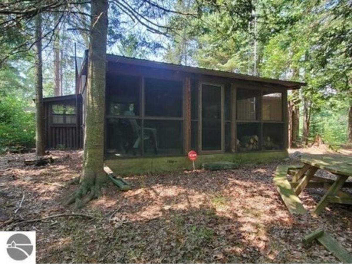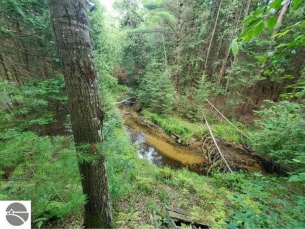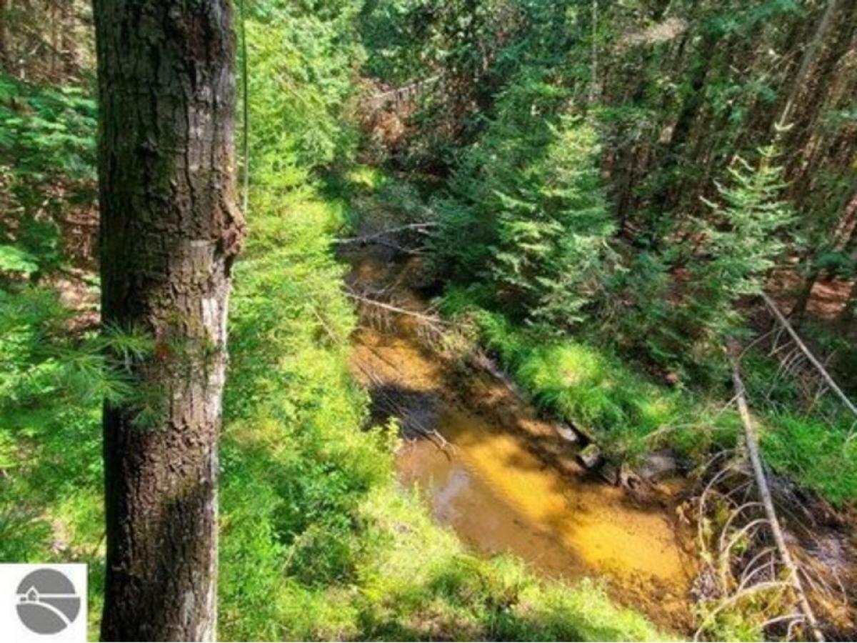 40 WOODED ACRES with vertical log home. 2 bedrooms, knotty pine and cedar interior walls, wood fireplace for extra warmth, family room, cathedral ceilings,10x10 loft area that could be used for extra storage or guest sleeping area, detached garage, partial newer metal roof, newer water heater and spacious screened porch with beautiful wooded views. Property has frontage on Silver Creek for great fishing and there is an abundance and variety of wildlife in the area for the hunter. Conveniently located on maintained road and would make a nice Up North getaway or secluded hunting camp!