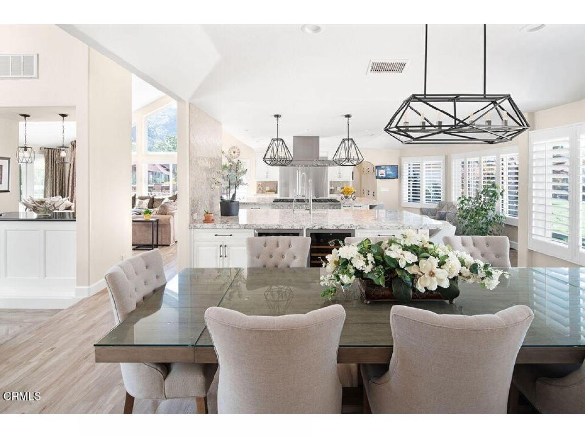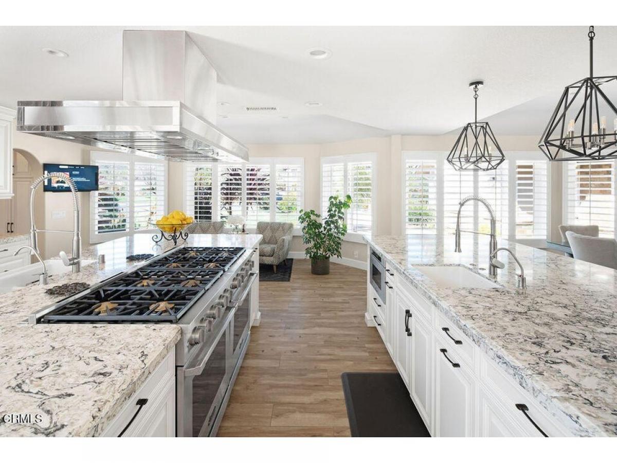 The Crown Jewel of Ventura County Luxury Living. Nestled behind the grand gates of the exclusive Camelot Estates in Santa Rosa Valley, this extraordinary estate is a masterpiece of unparalleled craftsmanship and design. From the moment you arrive, the home#039;s breathtaking presence is only matched by its interior elegance and grandeur. Inside the expansive single-level main residence, there are soaring beamed ceilings, a statement fireplace, and an effortless indoor-outdoor flow creating an ambiance of warmth and sophistication. At the heart of the home lies a chef#039;s dream kitchen--a culinary paradise featuring a true kitchen island and an expansive peninsula, both with sinks and seating, making it the perfect setting for entertaining and hosting lavish holiday gatherings. Outfitted with professional-grade stainless steel appliances, dual side-by-side Dacor 30#039; ranges and ovens, custom designed range hood, and exquisite quartz countertops, this kitchen is as functional as it is stunning.Spanning over an acre, this 4,500+ square foot estate boasts seven spacious bedrooms, six full luxurious bathrooms, and a dedicated office with dual workspaces. Every detail has been thoughtfully curated, with a harmonious blend of elegant limestone, marble, plush carpeting, custom cabinetry, and resilient wood-like ceramic tile flooring throughout.The primary suite is a true showstopper, offering a private retreat with a spa-like bath, a soaking tub, and an expansive walk-in closet. Beyond the walls of this remarkable home, a private resort-style oasis awaits--complete with a shimmering pool, firepit, a gazebo with electrical and TV setup, and a flourishing citrus and stone fruit orchard. Luxe seating areas and an outdoor barbecue center make this an entertainer#039;s paradise.Additional features include an oversized three-car garage, a recreation room (with a header for potential conversion into a fourth garage space), two full-use attic storage areas with a sprinkler system, owned solar, a backup generator system, and a dual water system. Whether you#039;re seeking a private retreat, a multi-generational estate, or a home designed for grand entertaining, this stunning residence is the epitome of Ventura County luxury living.