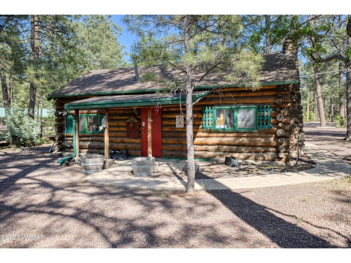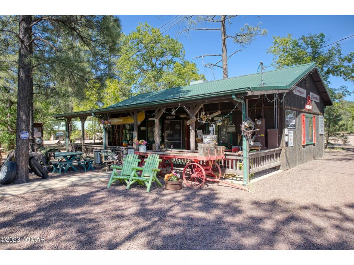 this is a PRIME & FANTASTIC LOCATION, Highway frontage in Pinetop. central to shopping and dining district. Zoning C1 allows from many options. Selling buildings and land. Currently is an established Antique Store, Inventory is available with agreement outside of escrow. Square footage of 1706 represents 2 buildings. 1 = built in 1999, 840 sf, metal roof, heating/cooling, no water. 2 nd building = built in 1946, 866 sf. this is one of the few original log buildings still in the area with Historical qualities; chinking between logs, log posts compliment the entry, shingle roof, bathroom is attached to the back of this building, power & water to building, malapai fireplace.. Facade Grant available with Town for improvements to front of business (sign, landscaping, building), Verify with Town of Pinetop/Lakeside, Planning and zoning. Also, tax credits for being an "opportunity zone". Check with your financial advisor.