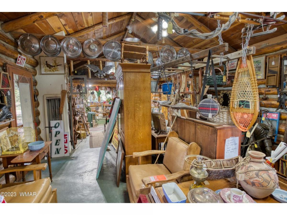 this is a PRIME & FANTASTIC LOCATION, Highway frontage in Pinetop. central to shopping and dining district. Zoning C1 allows from many options. Selling buildings and land. Currently is an established Antique Store, Inventory is available with agreement outside of escrow. Square footage of 1706 represents 2 buildings. 1 = built in 1999, 840 sf, metal roof, heating/cooling, no water. 2 nd building = built in 1946, 866 sf. this is one of the few original log buildings still in the area with Historical qualities; chinking between logs, log posts compliment the entry, shingle roof, bathroom is attached to the back of this building, power & water to building, malapai fireplace.. Facade Grant available with Town for improvements to front of business (sign, landscaping, building), Verify with Town of Pinetop/Lakeside, Planning and zoning. Also, tax credits for being an "opportunity zone". Check with your financial advisor.