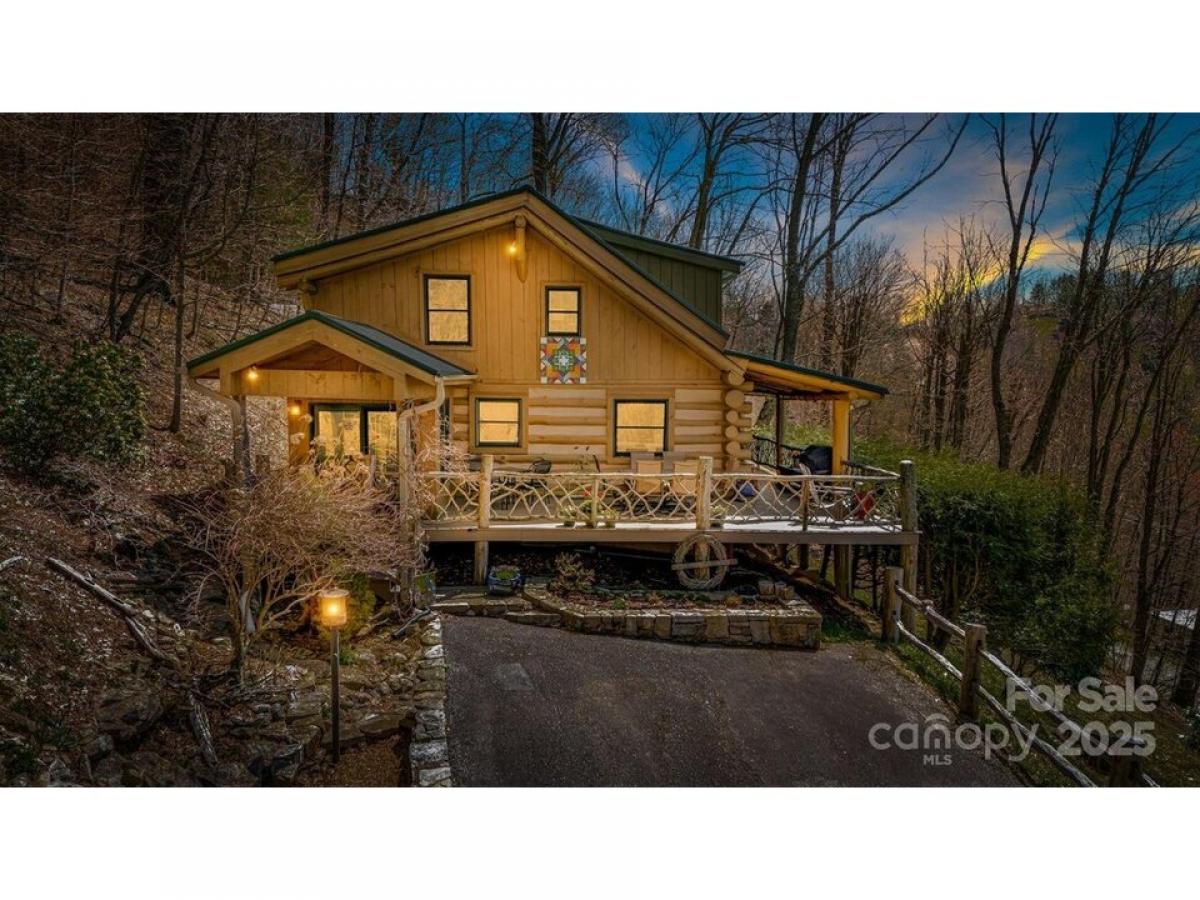 Escape to the mountains in this gorgeous 3BR/2BA, 1,900 sq ft traditional log cabin w/chinking, nestled in the 5,300 acre gated Wolf Laurel Community near Mars Hill, Burnsville, Asheville, amp; Johnson City. Walk to the new Hatley Pointe Ski Resort from this updated amp; well-maintained rustic-modern retreat, offering year-round mountain views from every room! Inside, enjoy an open floor plan, updated kitchen w/granite countertops, spacious dining amp; living area w/a rock fireplace amp; easy start gas logs. Enjoy seamless access to the wraparound covered amp; open decks on each side of the main level. Main-level primary bedroom w/ensuite. Upstairs loft features 2 bedrooms amp; an office w/a view, perfect for guests or a home office. Landscaped rock retaining walls, mature landscaping, paved access, amp; classic cabin charm complete this true mountain getaway. Home furniture to convey, just bring your toothbrush. Adventure awaits w/the optional club memberships offering golf, swimming, hiking, amp; more.