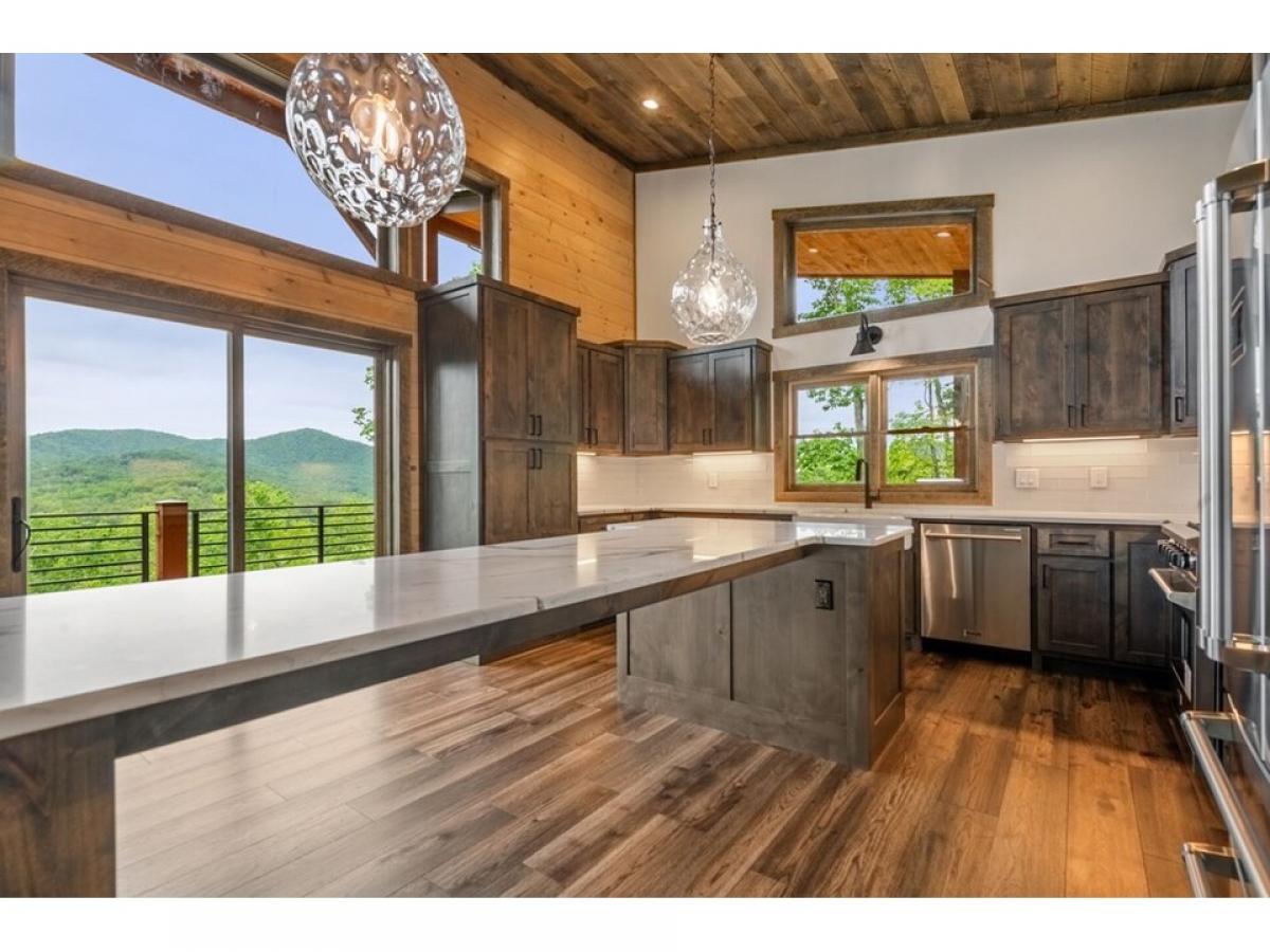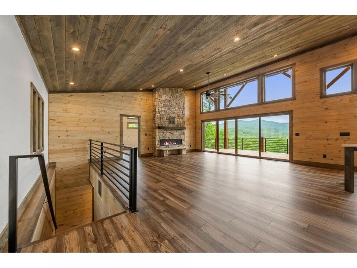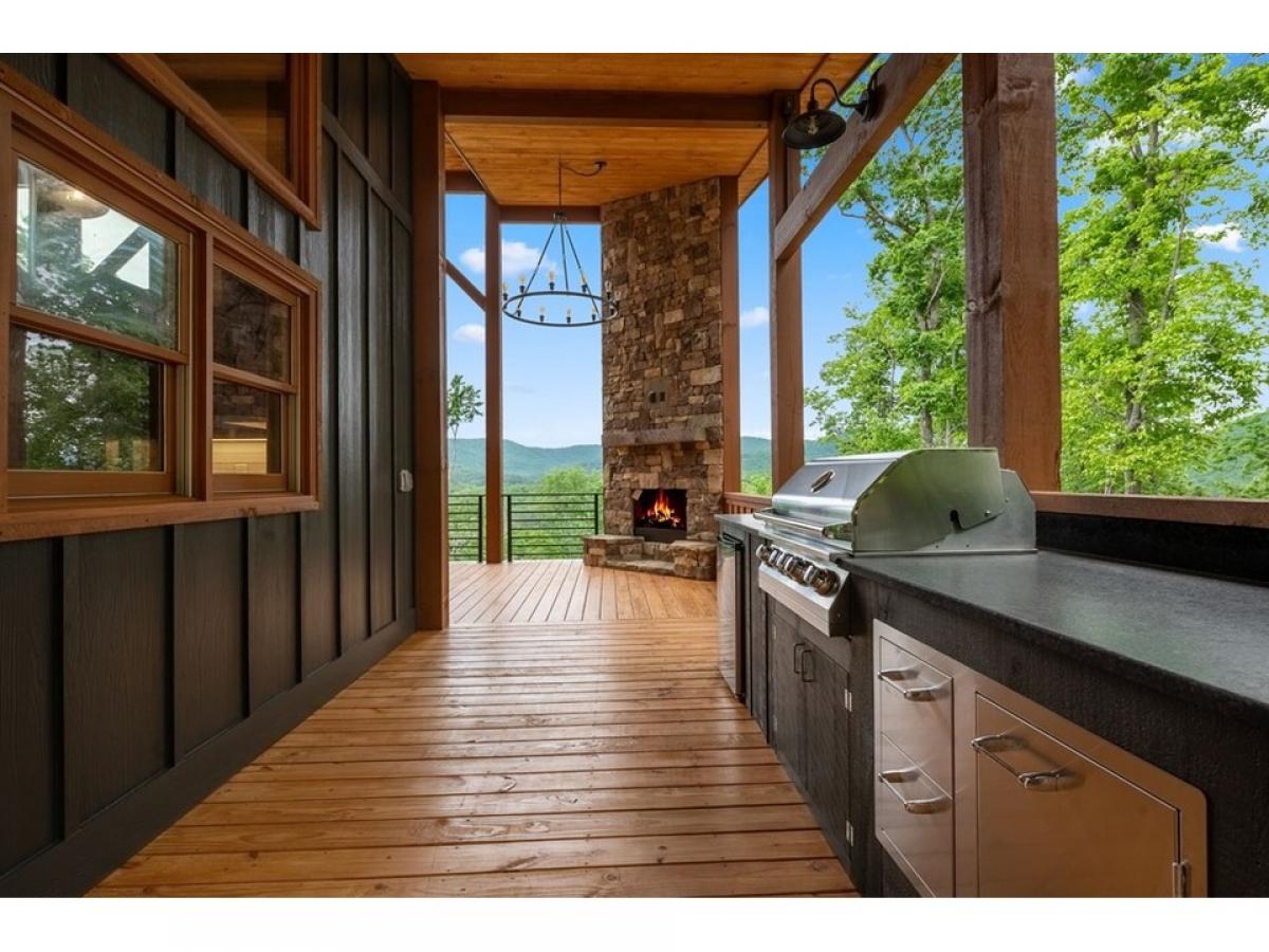Spectacular SUNSET YEAR ROUND MOUNTAIN Views! 4br/3.5ba Impressive Mountain Modern Complete New Construction. No detail overlooked in this thoughtful floor plan! Perfect mix of modern & rustic elements with low maintenance exterior! Main floor covered entrance with rock accents, an open concept with great room boasting a linear stone fireplace, soaring cathedral ceilings, wall of windows, massive sliding glass doors, ample dining space, spacious kitchen with high end appliances, gas range, granite counter tops, large island with tons of seating & custom cabinets, master suite with walk in closet, custom tile shower, double vanity, half bath, & true laundry room. Expansive windows all across the front to bring the views inside. Covered wrap around back porch spanning length of home with exterior fireplace & outdoor kitchen. Lower level provides the perfect space to entertain with game room, 2nd fireplace, wet bar, 3 guest bedrooms and 2 full baths, walk in closets + 2nd level of covered porches opening out to level usable back yard perfect for a fire pit & possible location for a pool. Covered storage area to side of house would be great for storing ATVs with access from driveway. Perfect location in gated community nestled adjacent to the Cohutta Wilderness area with tons of outdoor recreation/hiking/horse back riding/fishing. Just minutes to Downtown Blue Ridge and Lake Blue Ridge. Would make a great short term rental!