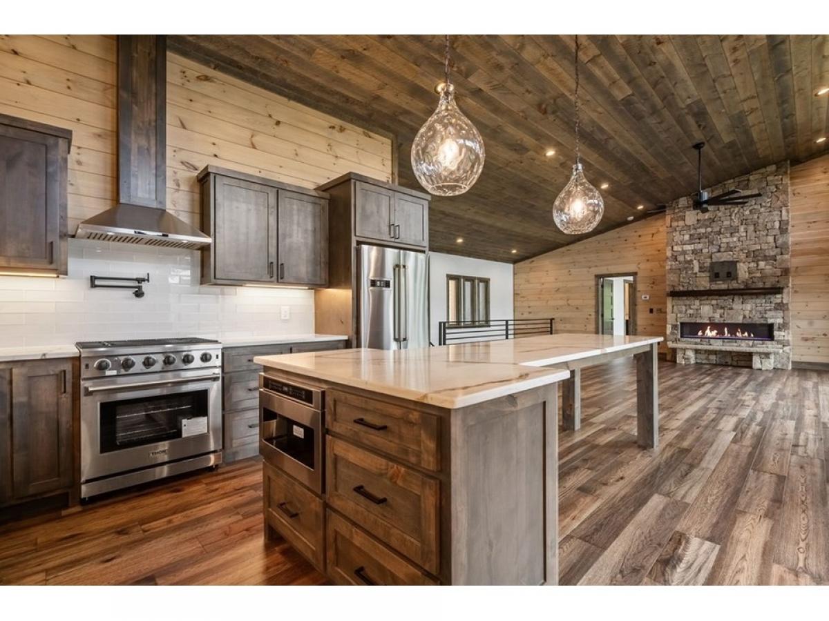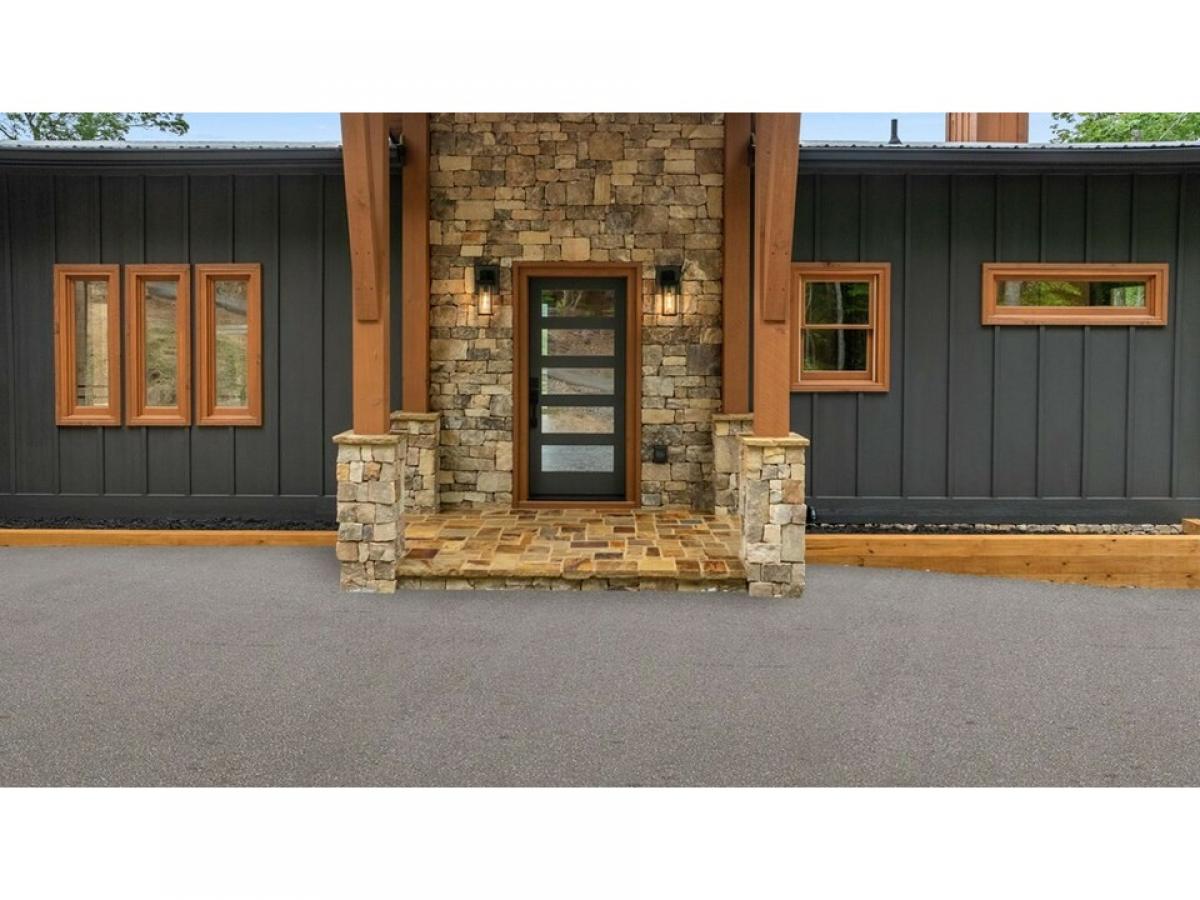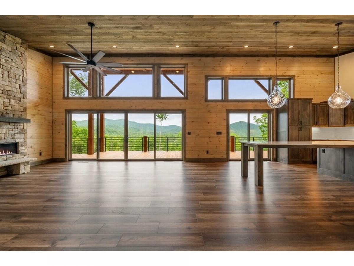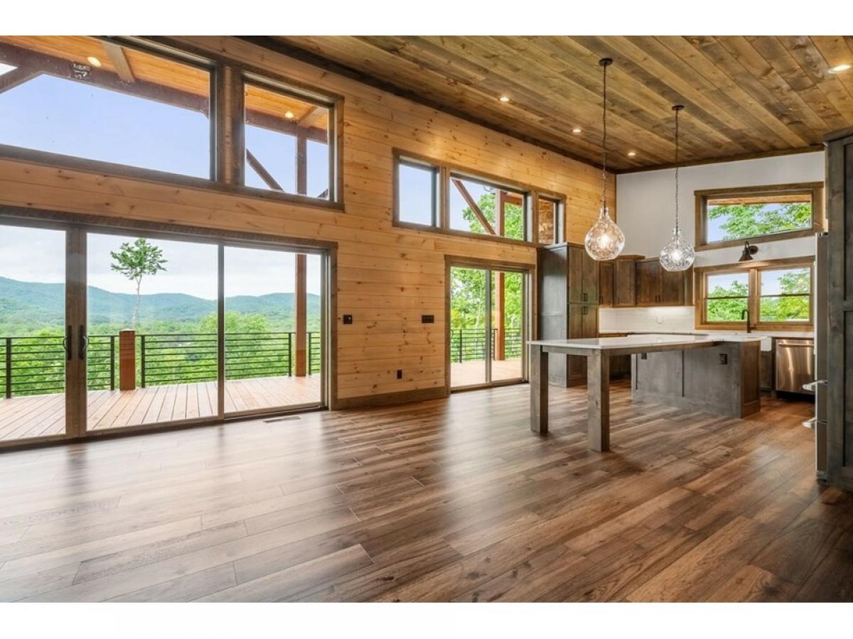 Spectacular SUNSET YEAR ROUND MOUNTAIN Views! 4br/3.5ba Impressive Mountain Modern Complete New Construction. No detail overlooked in this thoughtful floor plan! Perfect mix of modern & rustic elements with low maintenance exterior! Main floor covered entrance with rock accents, an open concept with great room boasting a linear stone fireplace, soaring cathedral ceilings, wall of windows, massive sliding glass doors, ample dining space, spacious kitchen with high end appliances, gas range, granite counter tops, large island with tons of seating & custom cabinets, master suite with walk in closet, custom tile shower, double vanity, half bath, & true laundry room. Expansive windows all across the front to bring the views inside. Covered wrap around back porch spanning length of home with exterior fireplace & outdoor kitchen. Lower level provides the perfect space to entertain with game room, 2nd fireplace, wet bar, 3 guest bedrooms and 2 full baths, walk in closets + 2nd level of covered porches opening out to level usable back yard perfect for a fire pit & possible location for a pool. Covered storage area to side of house would be great for storing ATVs with access from driveway. Perfect location in gated community nestled adjacent to the Cohutta Wilderness area with tons of outdoor recreation/hiking/horse back riding/fishing. Just minutes to Downtown Blue Ridge and Lake Blue Ridge. Would make a great short term rental!