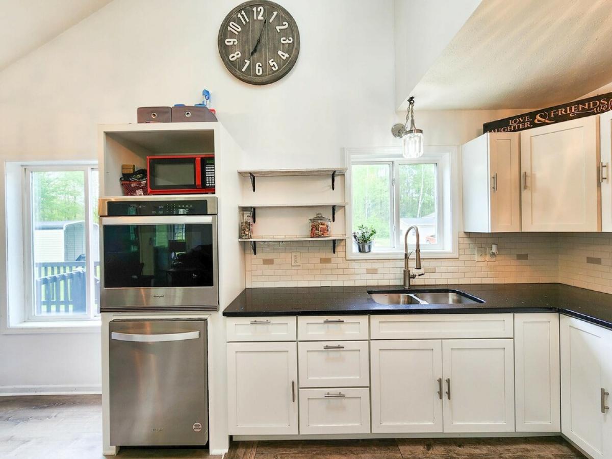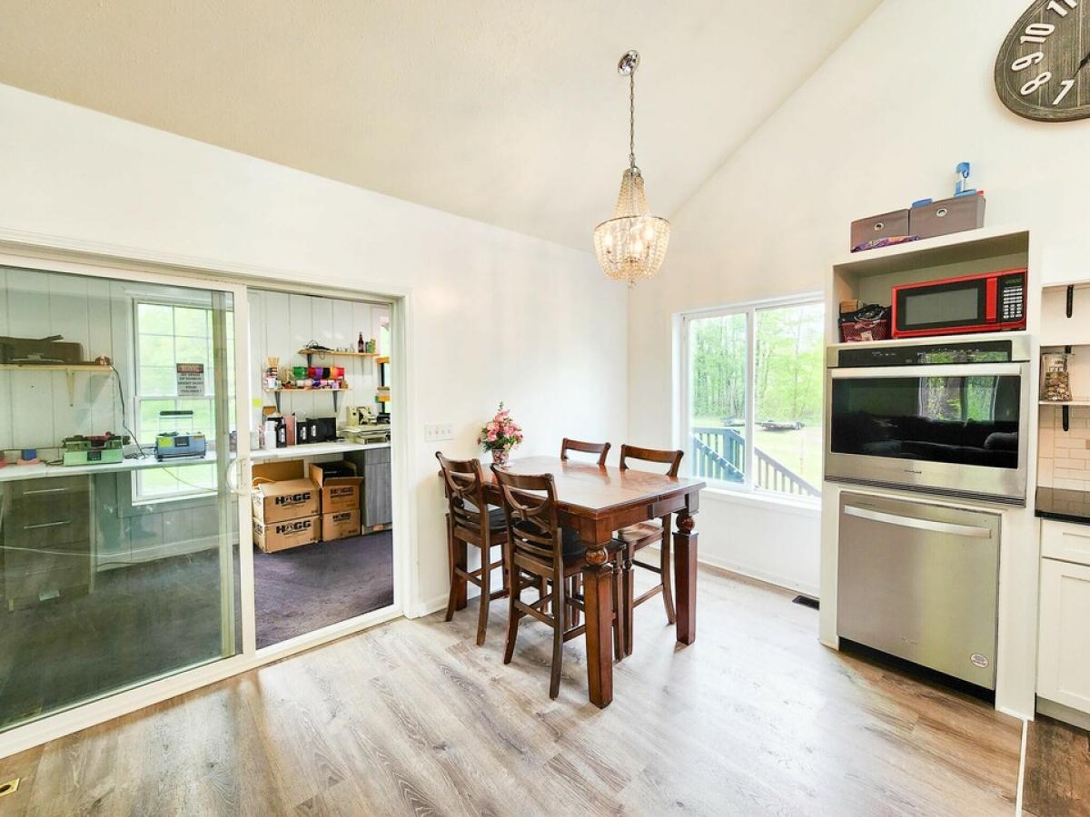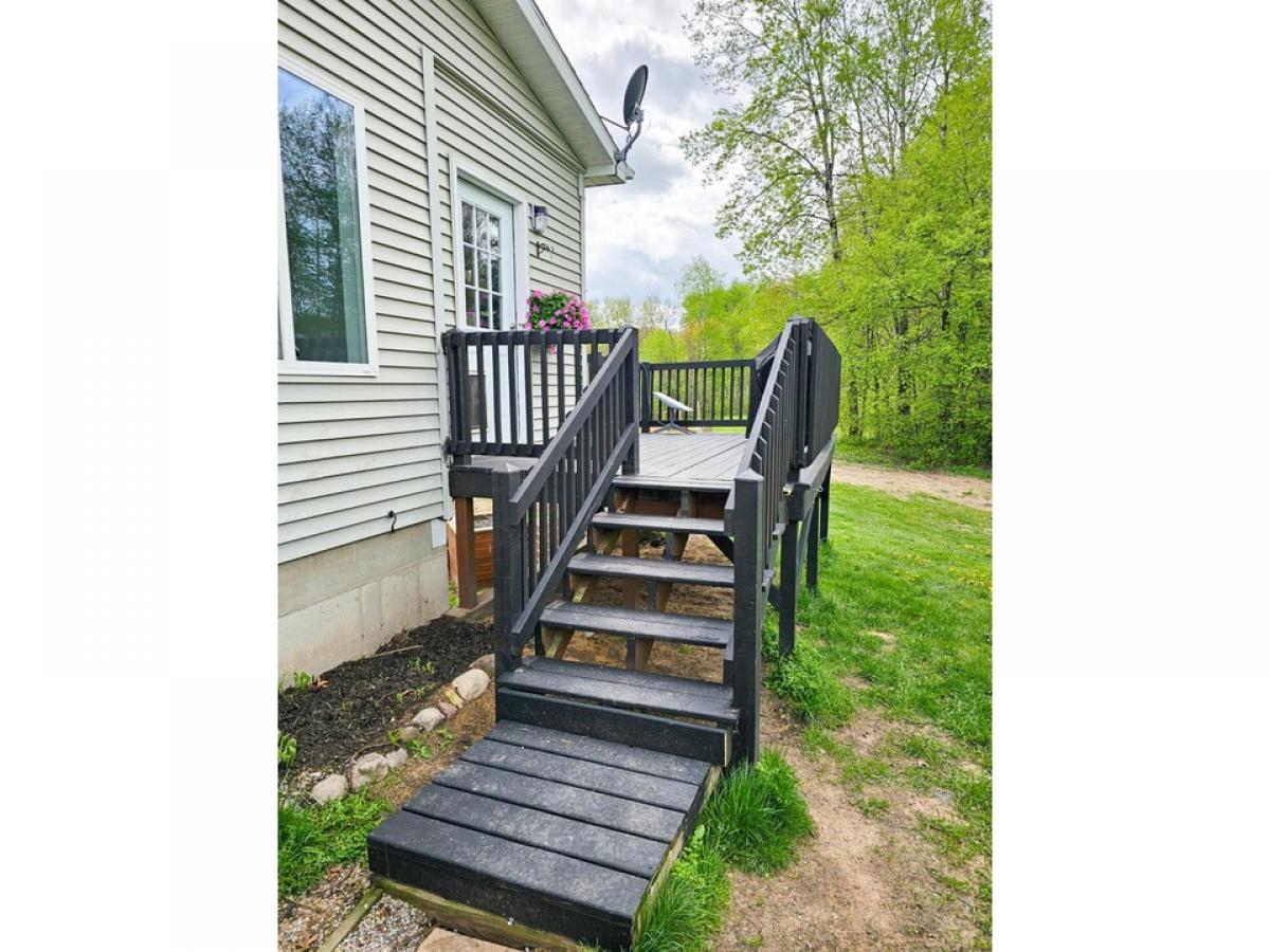 This property is a nature lover's dream! With 600+ feet of river frontage, a stocked pond, and 12+ wooded acres for hunting, it's paradise. Plus, it features a 2-car heated garage, insulated pole building, carport for a motorhome, chicken coop, deer blind, paved driveway, central air, and natural gas. Enjoy a walkout basement, 3-season sunroom, and cathedral ceilings in the 2290 sq ft home. Built in 2004, it offers a quartz kitchen and stainless-steel appliances. Immediate occupancy available with potential for a third bedroom in the unfinished basement. Situated on a paved road close to town.