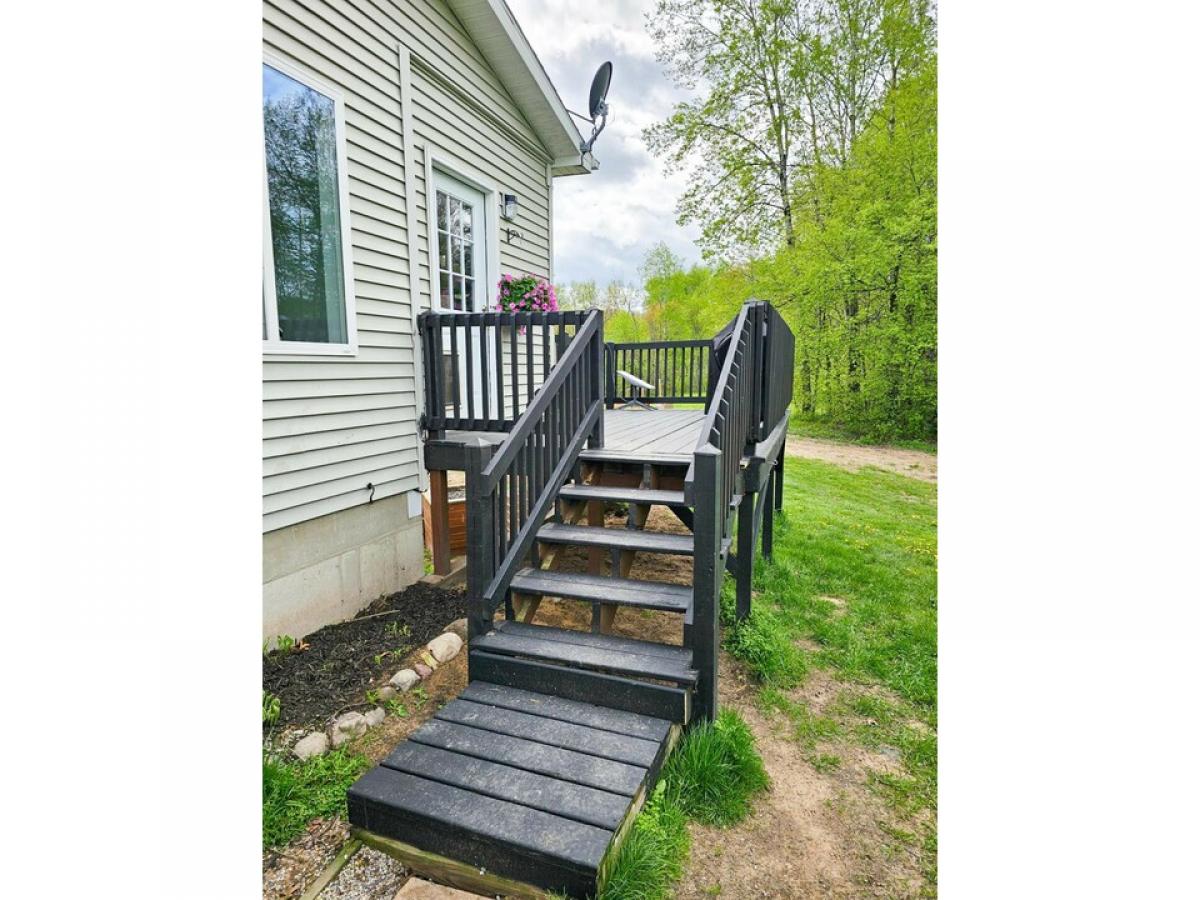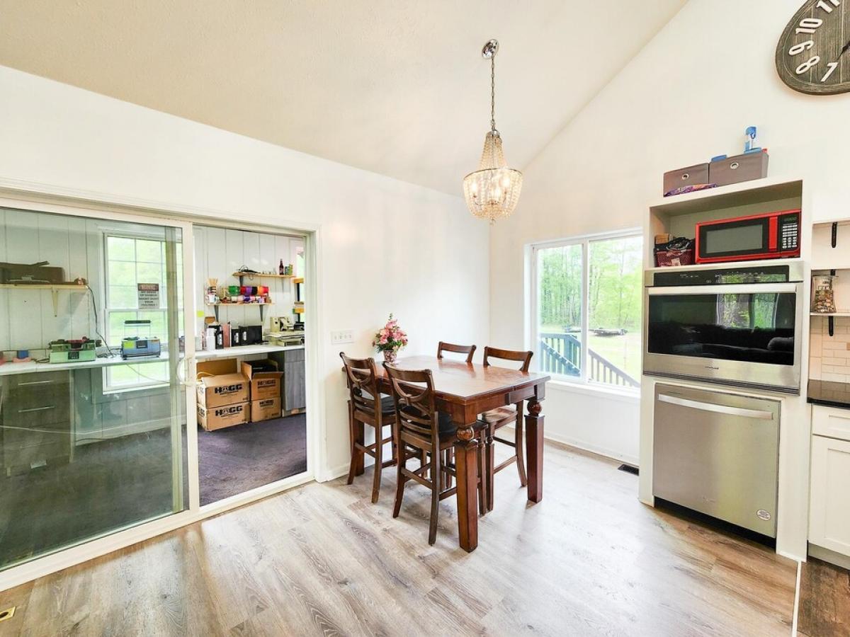 This exceptional property truly offers the complete package! With over 600 feet of frontage on the Middle Branch River, your own private stocked pond, and expansive 12+ wooded acres of land perfect for hunting, it's a nature lover's paradise. The amenities continue with an attached 2-car heated garage, a spacious pole building fully insulated for versatile use, and a convenient carport ideal for sheltering a large motorhome or camper. Other features include a chicken coop, elevated deer blind, paved driveway, central air, and natural gas for comfort and convenience. Enjoy the comforts of home with a walkout basement, inviting 3-season sunroom, and striking cathedral ceilings. The approximately 2290 sq ft residence, constructed in 2004, boasts a beautiful eat-in kitchen complete with quartz countertops and stainless-steel appliances. Don't miss out on this incredible opportunity! Situated on a paved road close to town, this property offers immediate occupancy and the potential for a third bedroom in the unfinished basement (no egress window). Please note that certain items such as the washer, dryer, TVs, TV mounts (walls will be repaired), and sunroom cabinets are excluded from the sale.