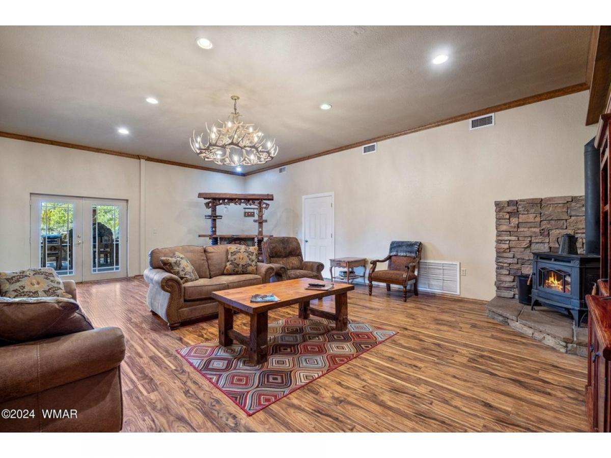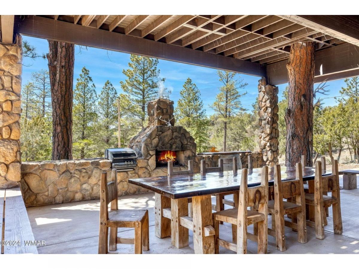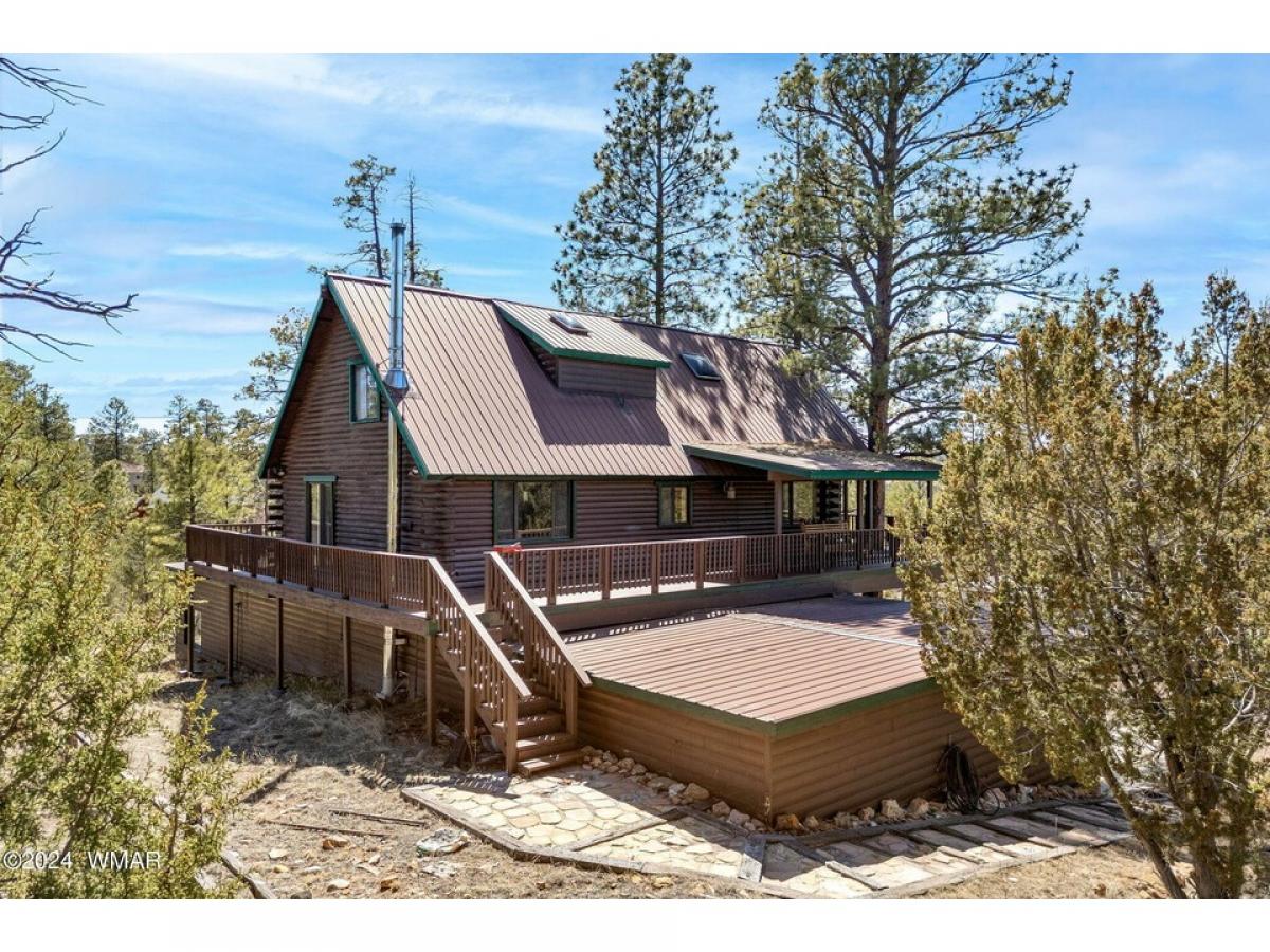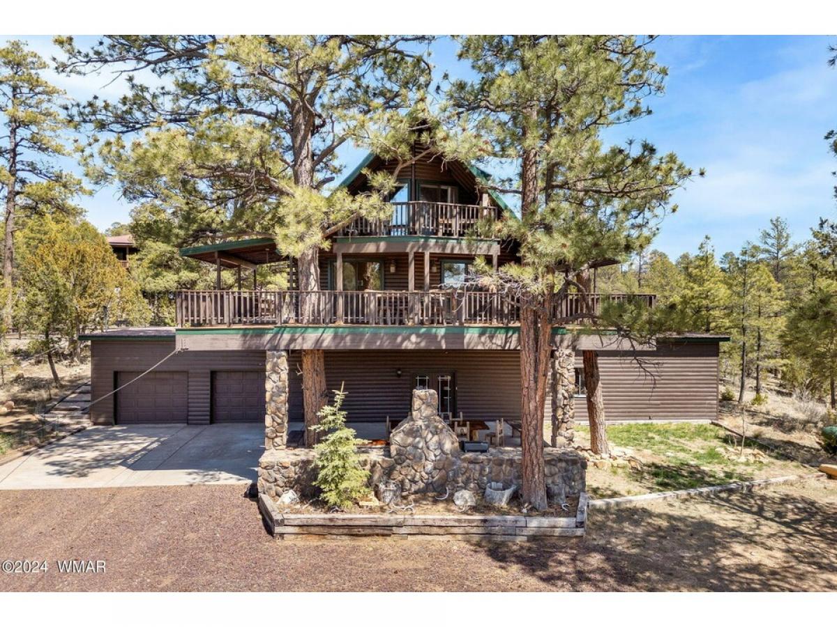 Welcome to your dream horse property nestled on 3.37 acres of tranquil land with majestic pine trees and ultimate privacy. This multi-level 3BR/3BA home features an oversized family room with wood burning stove, open and spacious living room with stone fireplace, and master suite with private balcony. Exterior features awesome panoramic views with 1300 sq ft of new Trex wrap around decking and patio with built in BBQ & outdoor fireplace for entertaining. Garage is approved as a commercial kitchen with own hot water heater. Also Metal roof, fenced dog run, and horse corrals which includes tack room and hay barn. So much room to roam and endless possibilities so bring the ponies and come take a look!