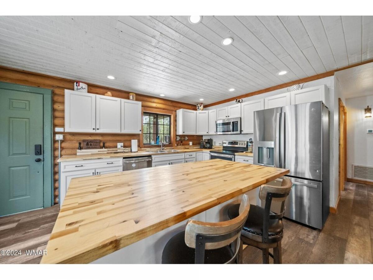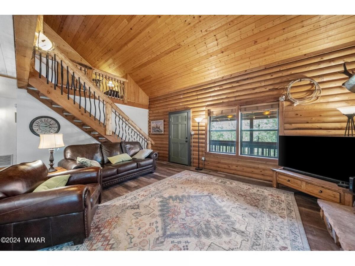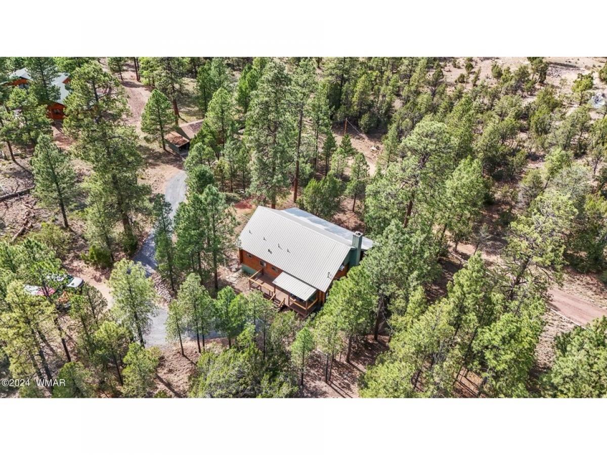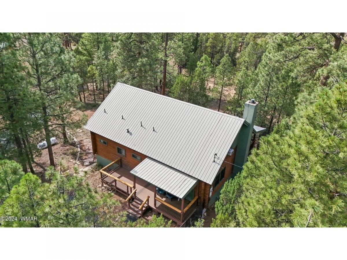 Your own 4 br/2 ba private sanctuary. A well-cared for log home! Deer & elk roam amongst the tall, mature pines. This secluded cabin in the woods is on 2.5 acres. It is perfect for year-around living or your vacation getaway. Two bedrooms downstairs including the primary suite. Two bedrooms and a large loft upstairs. An over-sized detached and heated 3-car garage with 220v for all your toys plus work area. Outdoor fire pit. A lofty, covered deck with great treetop views & cement deck below. A floor to ceiling rock fireplace with vaulted ceilings. Lots of T&G & log interior. Custom showers, new A/C unit downstairs with new ductwork and window a/c upstairs, LVP flooring, gravel drive, new paint, water softener, room for guests and great for entertaining with an open floor plan. All this tucked away in a quiet setting where deer & elk are the regular guests. The propane tank is owned, it has a tankless hot water heater, recently painted outside and logs restained July 2023, garage painted June 2024, new flooring upstairs along with new rails on loft-stairs-deck and front deck has new composite decking. This hard to find 2.5 acre/cabin won't last long. Be sure to schedule a showing now!
