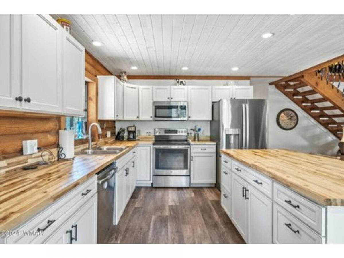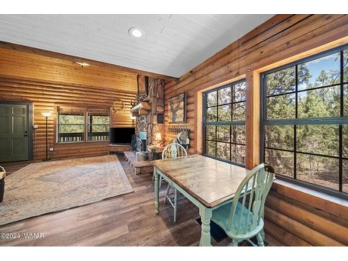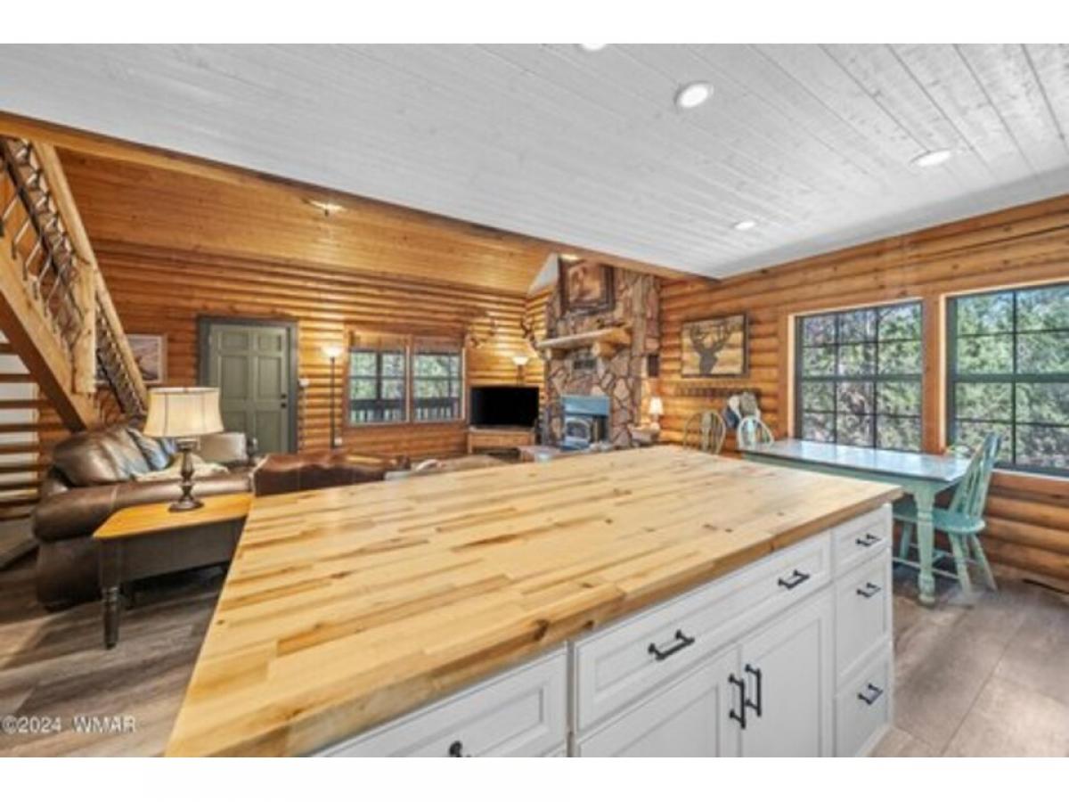 Your own 4 br/2 ba private sanctuary. A well-cared for log home! Deer & elk roam amongst the tall, mature pines. This secluded cabin in the woods is on 2.5 acres. It is perfect for year-around living or your vacation getaway. Two bedrooms downstairs including the primary suite. Two bedrooms and a large loft upstairs. An over-sized detached and heated 3-car garage with 220v for all your toys plus work area. Outdoor fire pit. A lofty, covered deck with great treetop views & cement deck below. A floor to ceiling rock fireplace with vaulted ceilings. Lots of T&G & log interior. Custom showers, new A/C unit downstairs with new ductwork and window a/c upstairs, LVP flooring, gravel drive, new paint, water softener, room for guests and great for entertaining with an open floor plan. All this tucked away in a quiet setting where deer & elk are the regular guests. The propane tank is owned, it has a tankless hot water heater, recently painted outside and logs restained July 2023, garage painted June 2024, new flooring upstairs along with new rails on loft-stairs-deck and front deck has new composite decking. This hard to find 2.5 acre/cabin won't last long. Be sure to schedule a showing now!