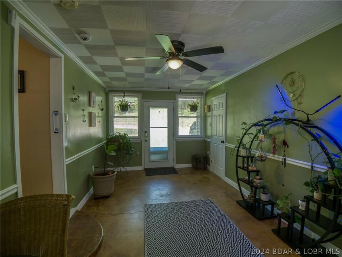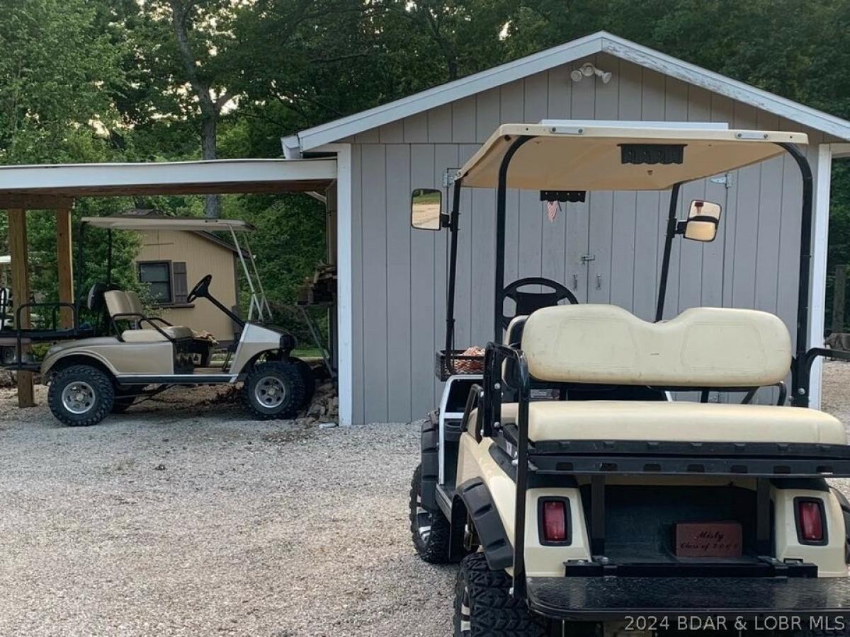 CAREFREE & TRANQUIL...$$PRICE IMPROVEMENT$$. Call now...this truly is an absolutely darling lake package...dont let it slip away! ONE LEVEL 3BED 2BATH Lakeside package in the State Park with cove protection and a serene main channel view of 8MM of the Grand Glaize near Flowerpot Cove. Cruise your golf cart down the short golf path from your yard to your boat slip within the Community Dock and enjoy water fun from your boat slip or one of the two Wave Runner slips. A likely haven for nature lovers, watch the birds, deer and turkeys and enjoy the serenity and seclusion of the backyard screened porch nestled within the security of a gated community within the State Park. All this and a Workshop/Shed for the hobbyist and/or extra storage. The 10x20 Boat Slip has a 4 foot overhang roof for flexibility. Tri-toon and 2 WaveRunners as well as a Rider Lawn mower are also available for extra money. Upgraded Kitchen in 2021 with all new appliances. NEW IN 2023: Roof, Front Door, Water Heather & Water Softener System. Hurry before this adorable gem slips away!