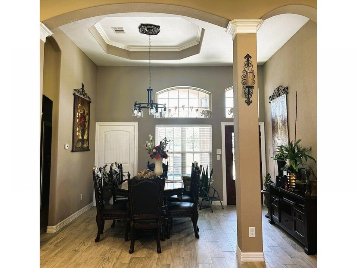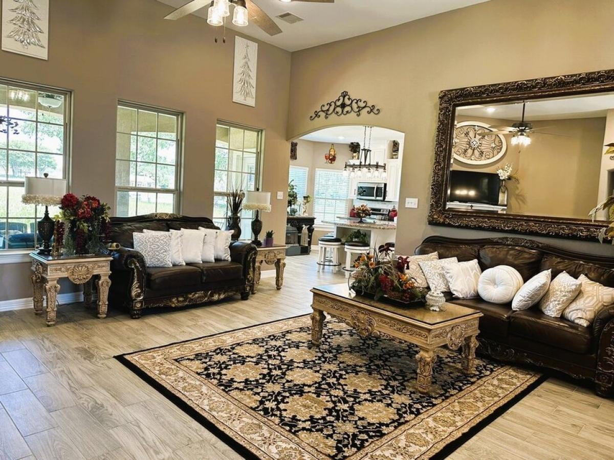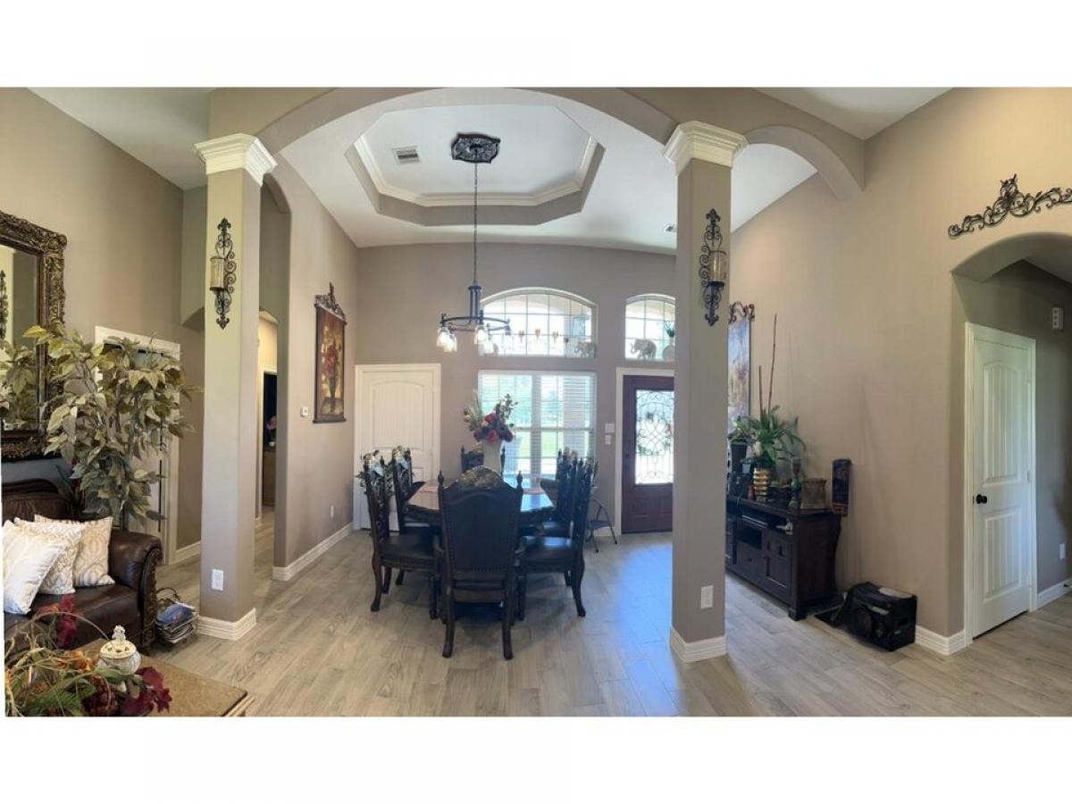 This beautiful stone and stucco home features elegant trayed ceilings and a formal dining room with a stunning chandelier. The spacious living room has a corner fireplace with a stone and tile hearth, creating a cozy and inviting atmosphere. The gourmet kitchen offers a granite island for food prep and serving, complemented by stainless steel Samsung appliances and oversized drawers for ample storage. Relax or entertain on the covered back porch, perfect for enjoying the outdoors. Located in the sought after Westwood Shores community with a 24 hour manned gate, you#039;ll have access to golf, tennis and pickleball courts, a pool, bar and grill, fitness center, interior lakes for fishing, and a country club just a quick walk away. The marina with country store and boat launch provides access to the Trinity River and Lake Livingston for outdoor recreation. With only brief occupancy by the builder, this home is in impeccable, like new condition.