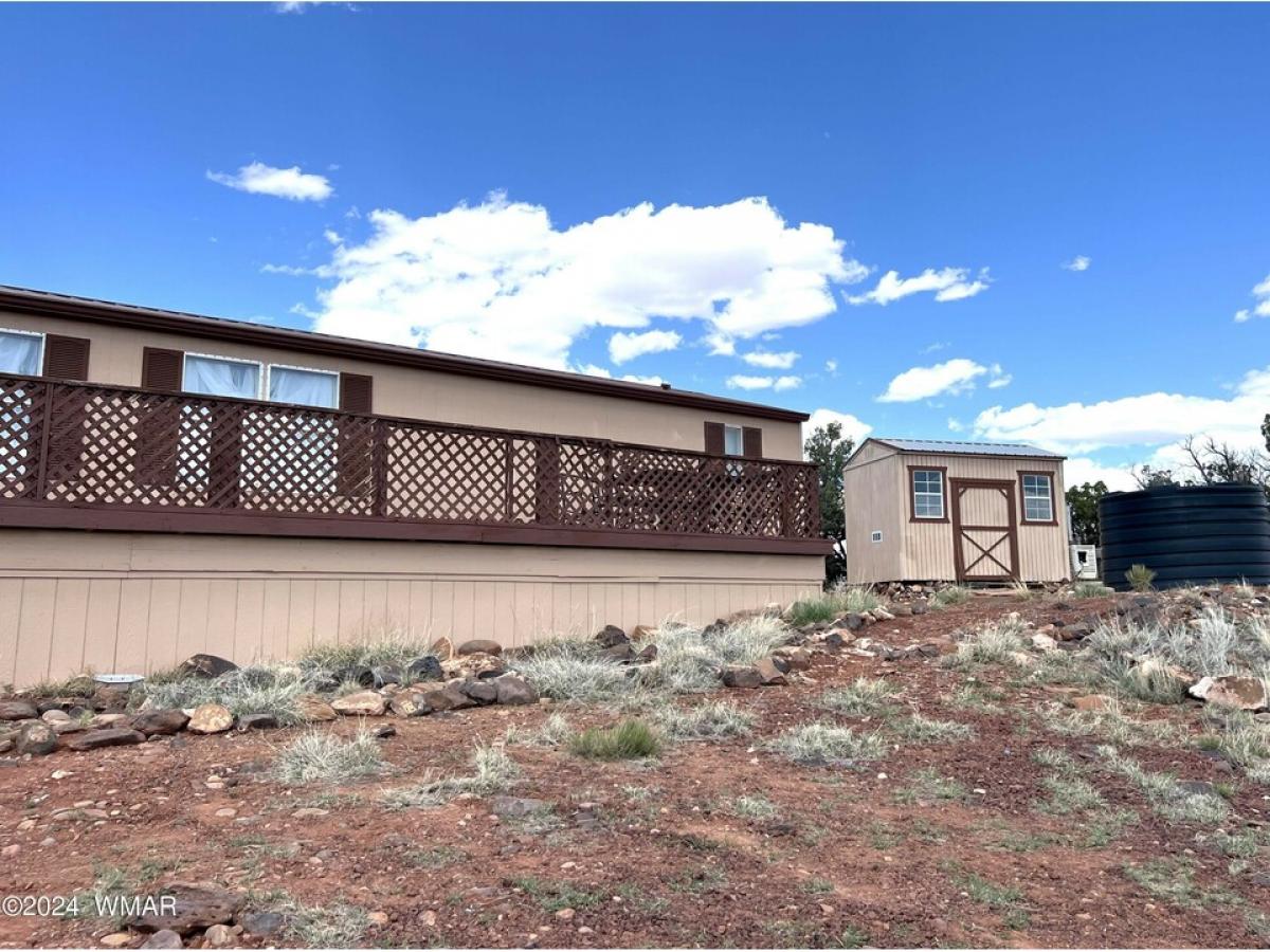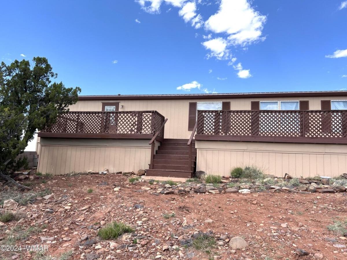 PRICE REDUCED !!!! Being sold AS-IS. A serene and spacious property! The combination of open land, privacy, and accessibility to amenities like shopping and medical services in Showlow makes it quite appealing. The full deck for watching the sunset offers breathtaking views, and the allowance for livestock and pets adds to the charm for animal lovers. The updated new exterior paint and main living areas flooring, as well . With a water delivery service holding tanks, and buried propane gives a lot of potential for enjoying nature and peaceful living. Buyers to investigate possibilities for installing solar or power from Navapache Electric. Well piping is run, Needs a pump and power to work. Solar panels and battery are on sight waiting to be put in place.