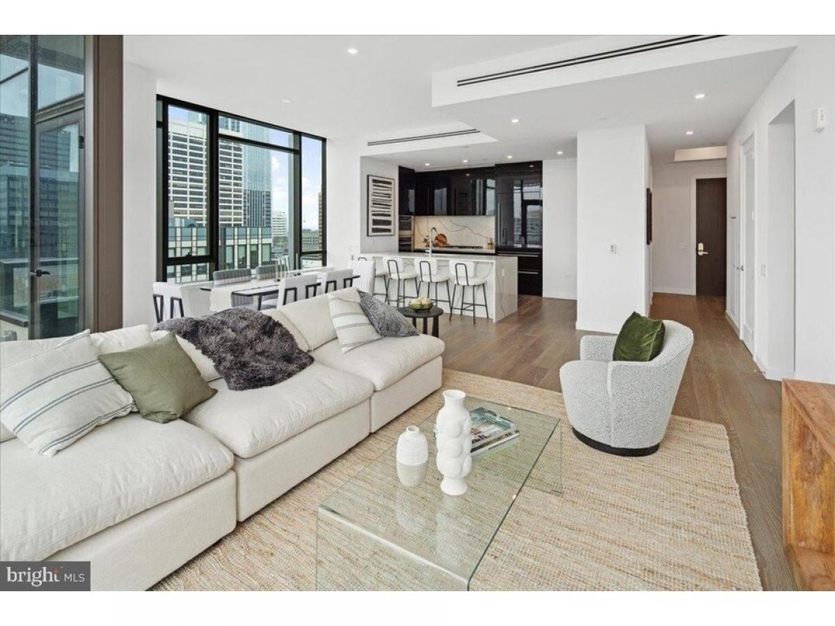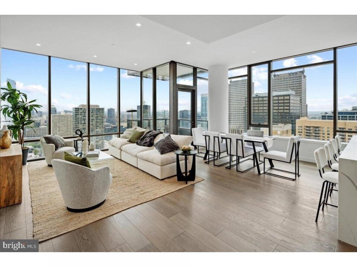Welcome to The Laurel, Philadelphia#039;s latest pinnacle of luxury condominium living, situated on the historic Rittenhouse Square, offering the ultimate residential experience. Introducing Residence 2703, positioned on the North West corner, commands attention with its breathtaking panoramic views of the city skyline and Schuylkill River sunsets, best enjoyed from its expansive wraparound windows and balcony. This 2 bedroom, 2.5 bath Residence features an open layout with Optimiatic Stone Wide Plank Wood floors and stunning finishes throughout. Inside, the gourmet kitchen features Euro-style Black Bamboo cabinets by Hans Krug, seamlessly transitioning to the open living and dining areas. Equipped with top-of-the-line appliances including a Sub-Zero integrated refrigerator, Wolf gas cooktop, steam oven, and convection oven, along with Quartz counters featuring waterfall edges on the oversized island, this kitchen is a chef#039;s dream. Additional amenities include a Dornbracht faucet, Miele dishwasher, and under-counter drawer microwave. The fabulous primary suite exudes luxury, featuring two walk-in closets, an expansive shower with Fantini fixtures, exquisite Antico Scuro Marble floors, and floor-to-ceiling Statuario Slab Porcelain walls. A dedicated laundry room, furnished with a full-size Maytag washer and vented dryer, Powder Room, and Electronic Shades in Living Room adds convenience to the opulence of this residence. Experience luxury living at The Laurel, where every amenity is thoughtfully designed to elevate your lifestyle. From the indoor and outdoor pools to the stunning resident lounge and expansive terrace overlooking Rittenhouse Square, you#039;ll enjoy the carefree enjoyment of city living at its finest. Additionally, indulge in the spa-like amenities including saunas and steam rooms, a fully equipped gym, serene yoga studio, private guest suite, simulated golf range, pet spa, and fabulous entertaining terrace! The Laurel also features a 24-hour concierge, doorman, and a house-car for residents. A Must See! One parking space is included, with the option for additional parking upon inquiry.