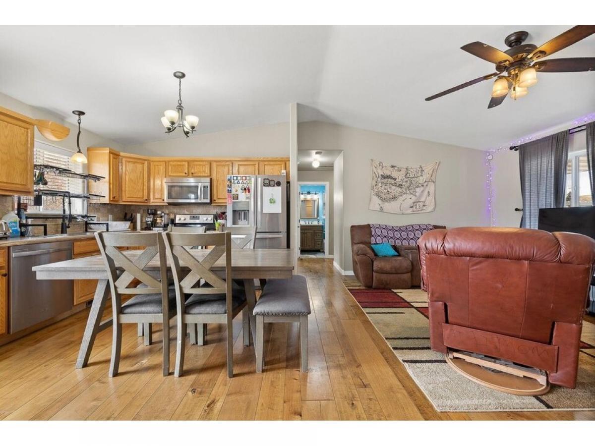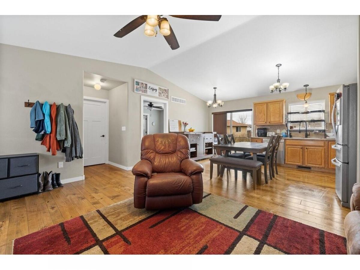 Nice 5 bedroom/3 bath ranch style home. Master suite with bath and walk-in closet. Open floor plan with vaulted ceiling and main level laundry. Kitchen has an island and pantry. Basement features a large family room, two bedrooms amp; 3/4 bath. Yard is fenced with chain link and the shed stays. Spacious deck has been added to the front (east) side of the home to enjoy the evening shade while grilling or just relaxing. Roof was upgraded 2 years ago to Euroshield rubber matt.