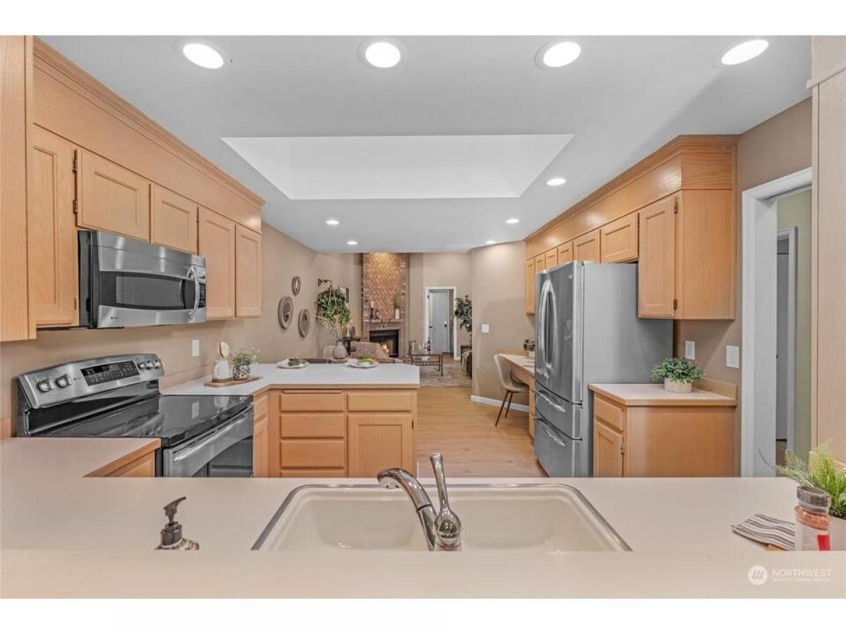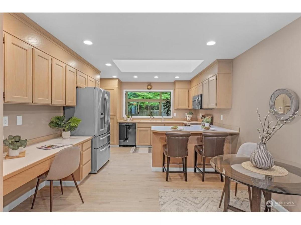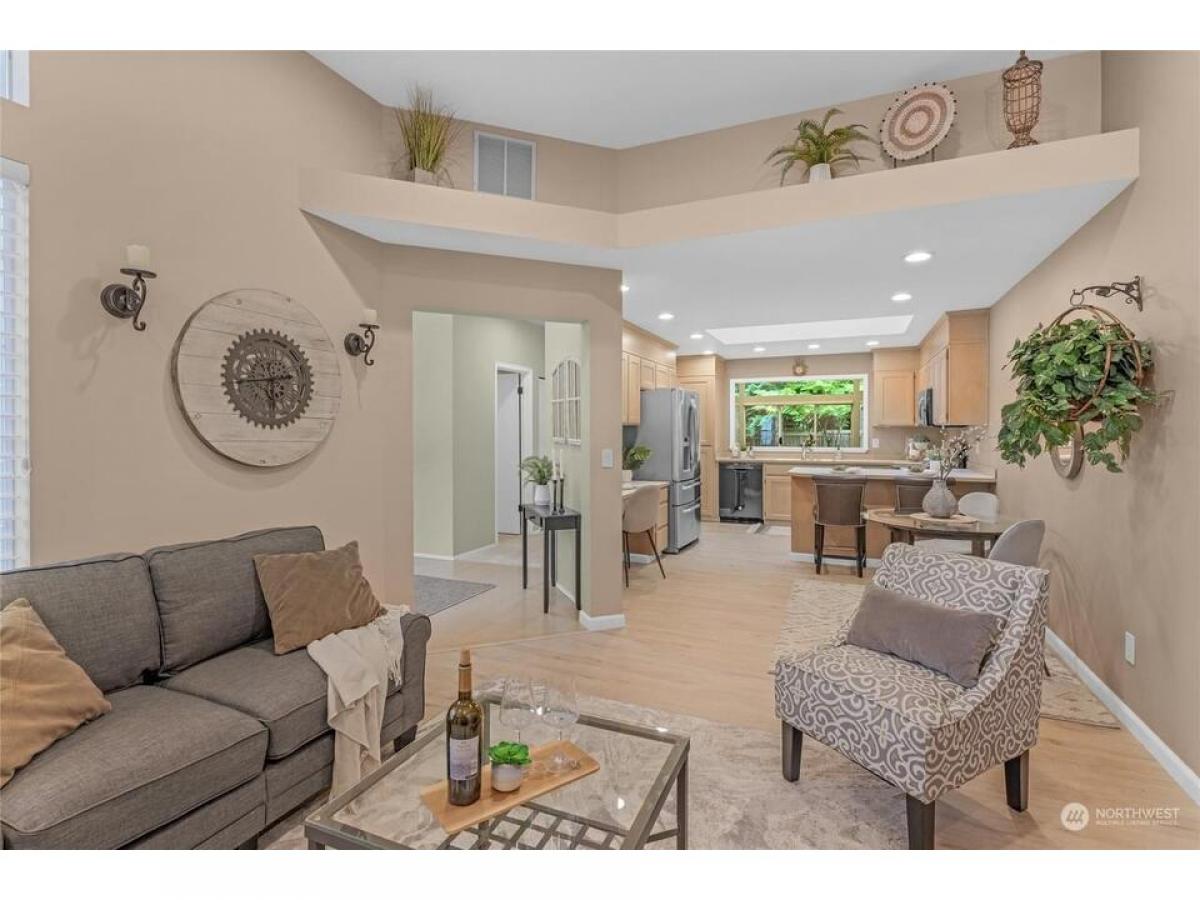 Rare Find in Mill Creek Mill Pointe Ramblercent;**. This unique community is just a short walk to the Mill Creek Town Center (Restaurants and Shopping). This is one of only two ramblers (single level lifestyle) in the entire development. The community maintains the roofs, exterior painting, front yard landscaping sprinklers. It's a bit like Easy Street. Combinations of 9 and 10 foot ceilings with tall windows and a large center skylight over the kitchen fill the home with natural light. Kitchen opens to the family room to the front and overlooks the dining room and living room to the back. Retreat to the king-sized primary suite with sitting bay. New flooring just completed. 2 Car Garage 2 car apron, new gas furnace; you will love this one.