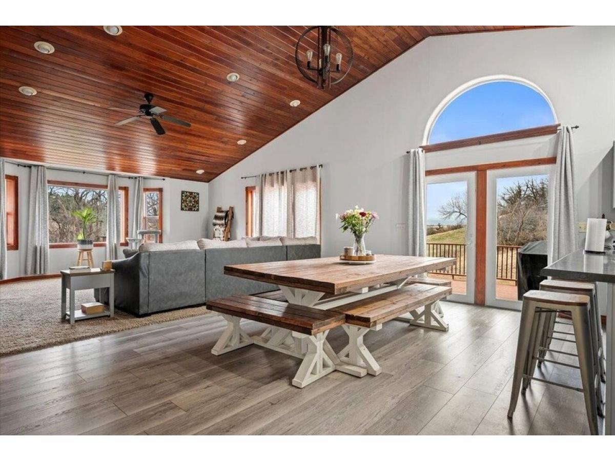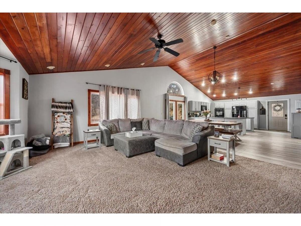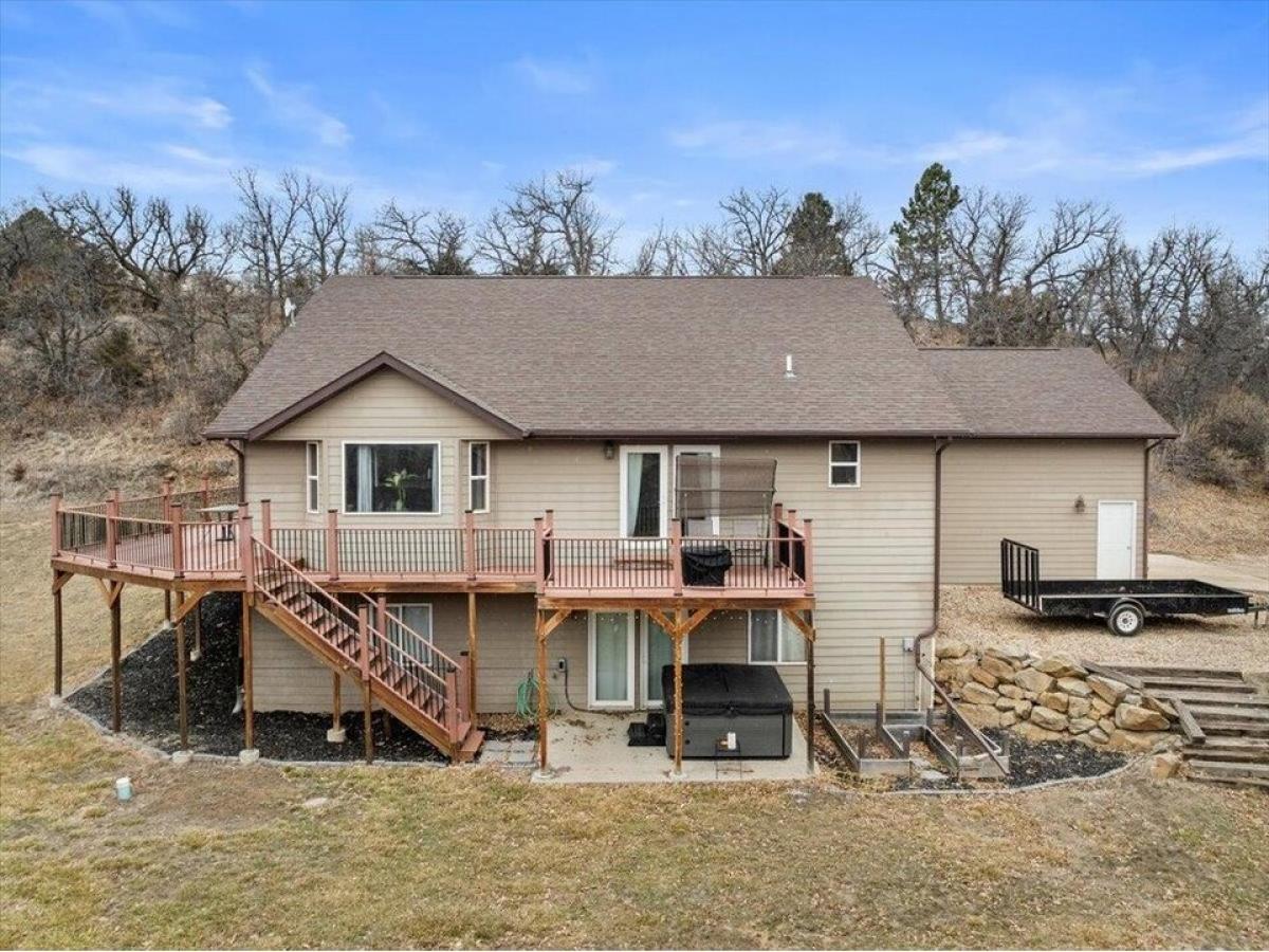 For more information, please contact listing agents Heath Gran 605-209-2052 or Scot Munro 605-641-6482 with Great Peaks Realty. Incredible 6-bedroom home situated between Spearfish and Belle Fourche nestled privately on 2.97 acres, this property has a secluded country feel while conveniently located just minutes from town! Enter the home into an open layout with vaulted, knotty pine ceilings and tons of natural light, updated LVP floors and fresh paint throughout! You will love the wrap around deck that can be accessed from any area of the main level. Large laundry/mudroom just inside from the garage. Primary ensuite is featured on the main level that steps out onto the deck with stunning views in every direction plus wonderful bathroom with a soaker tub, double sink vanity and walk-in closet! The spacious walkout basement offers a large family room with a theatre screen, 4 bedrooms and large bathroom with TWO double vanities! This property is privately nestled up against the wooded hillside, surrounded by trees for ideal privacy and a seasonal pond. Carport has been added for additional parking or storage. You wonrsquo;t want to miss out on this exceptional property!