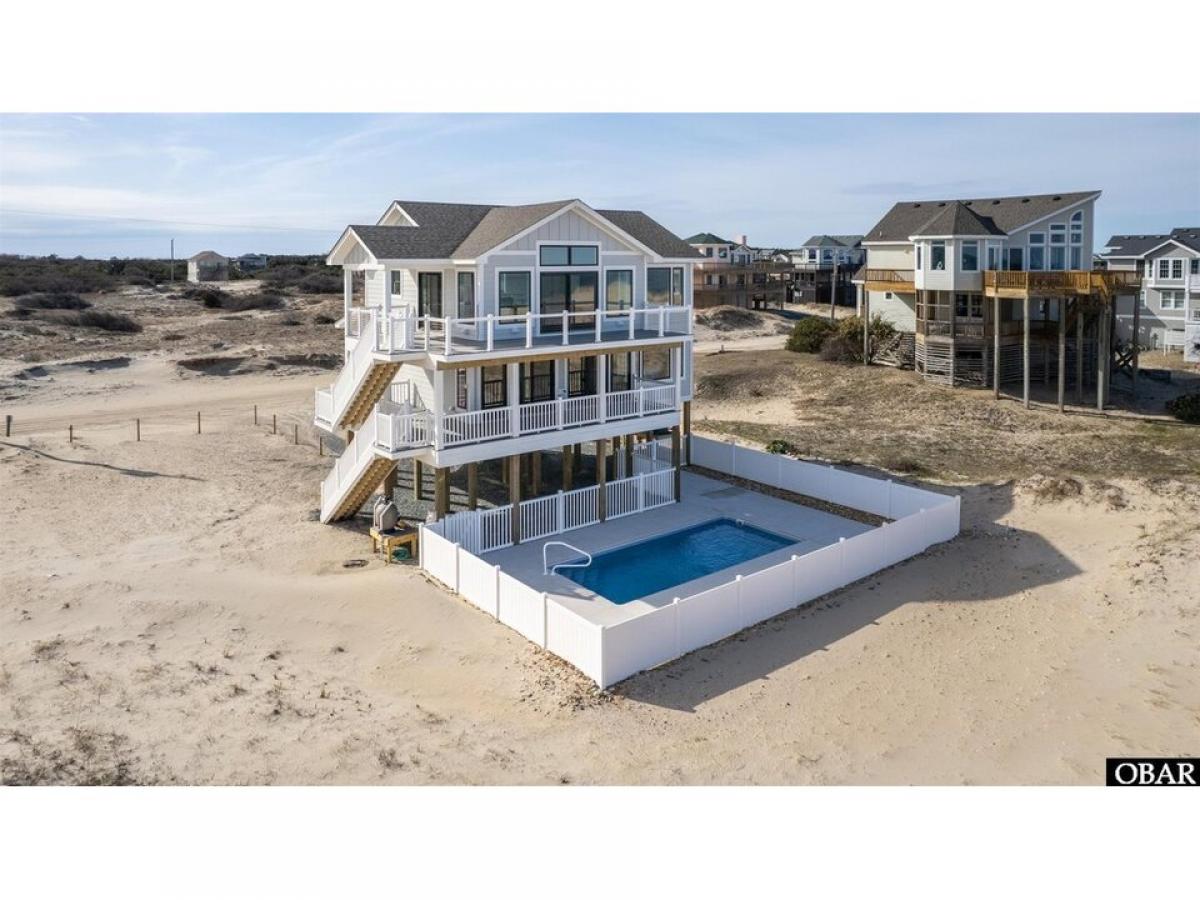 Nestled along the pristine 4x4 beaches of Corolla, where wild horses still roam free across rolling dunes, this brand-new, never-lived-in oceanfront home offers an unparalleled blend of luxury, tranquility, and breathtaking natural beauty. Built on a 100-foot-wide beachfront lot, this stunning coastal retreat was designed to maximize sweeping, unobstructed views of the Atlantic, with high-end finishes and impeccable craftsmanship throughout. Constructed with premium materials, the home features durable Mohawk LVP flooring, Trex decking with sleek stainless steel wire railings, and LP Smart siding, ensuring both elegance and longevity. Step inside to find a thoughtfully designed layout that seamlessly blends modern sophistication with coastal charm. The first level welcomes you with a bright and airy foyer leading to three ocean-view bedrooms, including a private ensuite. Each bedroom opens onto a spacious oceanfront deck, inviting you to wake up to the soothing sound of waves. A convenient laundry room is also located on this level. Ascending the staircasemdash;accented with board and batten walls and ship-style lightingmdash;yoursquo;ll reach the heart of the home, where soaring 10-foot vaulted ceilings and walls of Stergis windows and Anderson sliding doors frame panoramic views of the endless shoreline. The open-concept living area is bathed in natural light, creating an inviting space for relaxation and entertaining. The chefrsquo;s kitchen is a masterpiece, boasting top-of-the-line KitchenAid stainless steel appliances, custom 9-foot cabinetry, Quartz countertops, a farmhouse sink, a stylish subway tile backsplash, and a custom range hood. A butlerrsquo;s pantry, complete with a secondary refrigerator and microwave drawer, adds extra storage and convenience. The luxurious primary suite is a true retreat, offering breathtaking ocean views and an elegantly designed spa-like bath featuring a dual Quartz vanity, a tiled walk-in shower with a water-spot-resistant glass door, and high-end Brizo fixtures. Step outside onto the covered southside deck or the sun-drenched east-facing sundeck to soak in the fresh ocean breeze and take in the mesmerizing sight of waves rolling onto the shore. Designed for outdoor enjoyment, this home features a private in-ground pool, perfect for cooling off after a day at the beach. An area has already been prewired for a hot tub, offering the opportunity to enhance your outdoor oasis. Located in an X flood zone, this home does not require flood insurance, adding to its investment appeal. Whether you envision it as a private coastal sanctuary or a highly lucrative vacation rentalmdash;with projected annual rental income exceeding $120Kmdash;this home is an exceptional opportunity. With new construction in Corolla taking an average of two years to complete, this fully furnished, professionally decorated home allows you to skip the wait and move in immediately. Experience the rare opportunity to own a brand-new, luxury oceanfront home in one of the most secluded and beautiful areas of the Outer Banks. Schedule your private tour today and make this coastal dream your reality.
