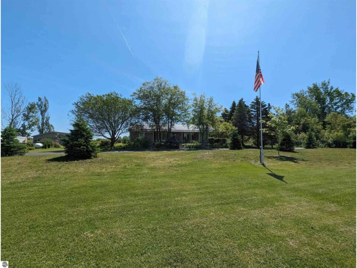 A beautiful, move-in ready ranch home on just over 5 acres!! Appointed nicely off the road showing off some great landscaping, this spacious well cared for home offers three bedrooms, two full baths, a large open living/dining area w/ new floors, updated kitchen w/ extra bar and eating area, & laundry +mudroom area w/ new washer/dryer. Features include a large primary bedroom w/ multiple closets and a huge updated private bathroom w/ shower and separate jet tub...the living room has beautiful wood ceilings & a stunning stone ventless gas fireplace, gorgeous tile floors throughout various parts of the home, city water tanks, well for irrigation and toilets, central air, metal roof, circular asphalt driveway, & is wired for a generator. For outside enjoyment there is a above ground heated pool with a large deck abutting it! Storage opportunities garage w/ the 2 car detached garage that is insulated along with a 30x40 pole barn w/ a 10x16 heated workshop inside. Located along a blacktopped road not far from a public beach access along Lake Huron & also close to US-23 and the City of Au Gres!