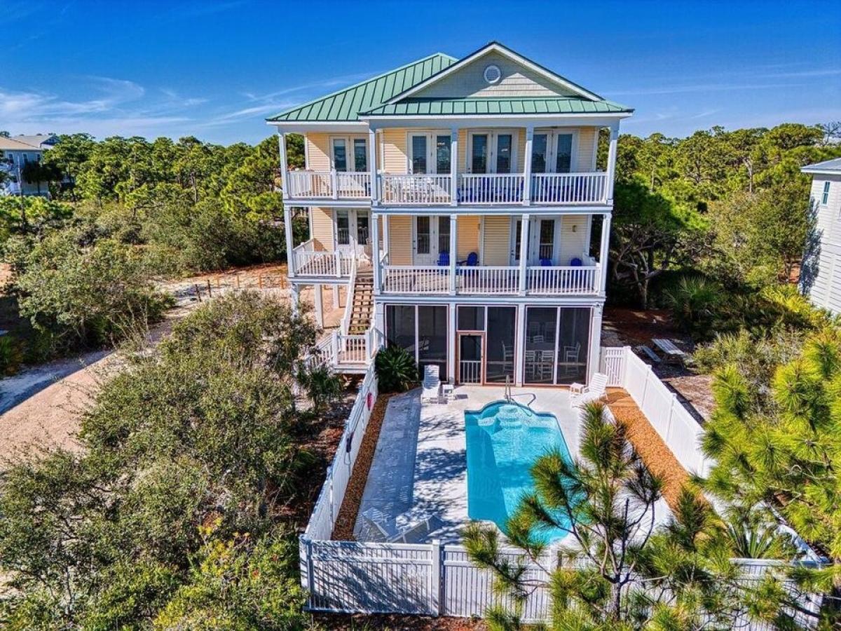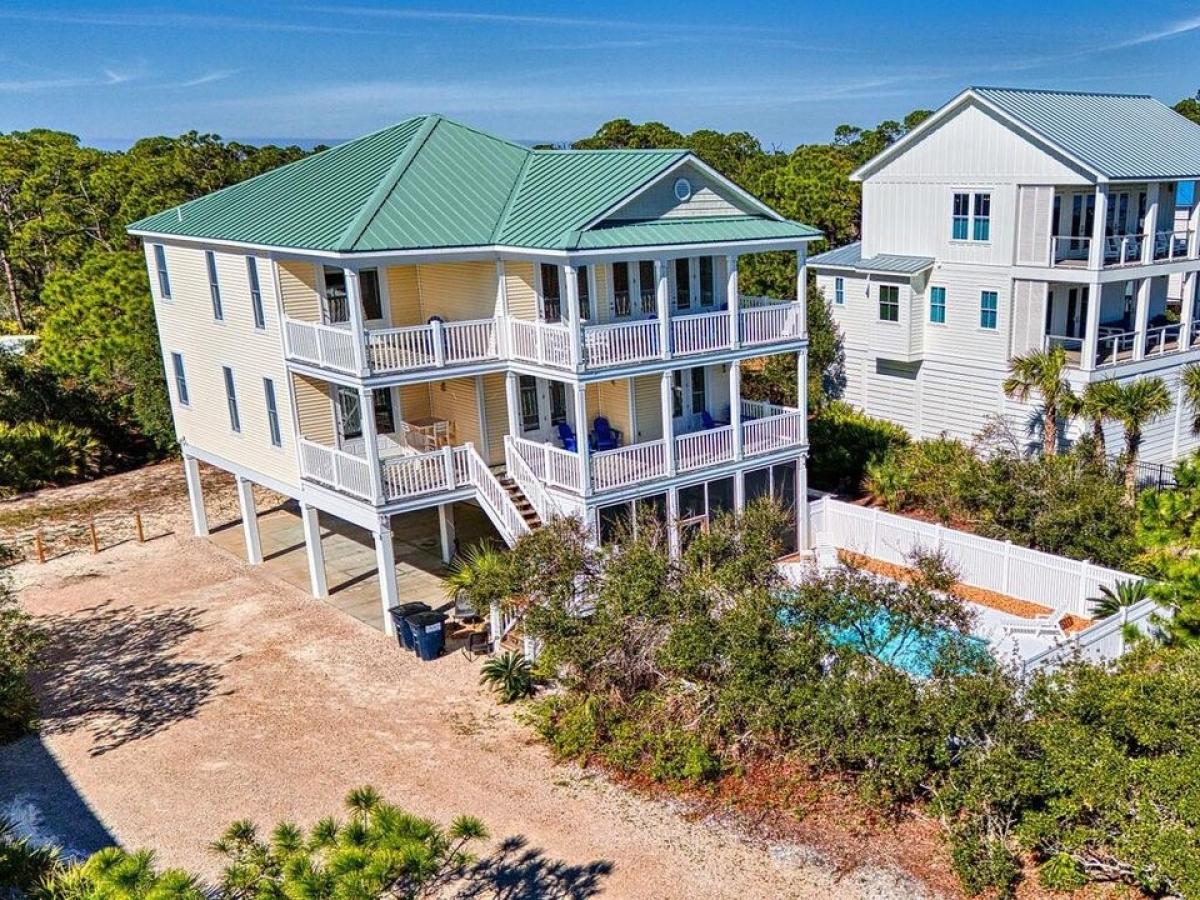 First-Tier Beach Home with Breathtaking Gulf Views. LOCATION, LUXURY, AND RENTAL INCOME OPPORTUNITY! This stunning first-tier beach home in the prestigious St. George Plantation offers breathtaking views of the Gulf and easy access to the pristine, sugar-white sands of St. George Island. With a private pool, ultimate entertainment area, and exceptional rental history, the perfect combination of coastal living and investment potential. Key Features: First-tier from the beach with incredible Gulf views and easy beach access. 5 bedrooms and 4.5 bathrooms, including 3 master bedrooms with ensuite bathrooms and private balconies. ELEVATOR access to all floors, offering convenience and accessibility for all guests. Two spacious living rooms, one on each floor, providing ample space for relaxation and entertainment. Large open-concept living area featuring a cozy fireplace, dining area, and kitchen with granite countertops, a pantry, and a center island. Three sets of doors open to the expansive balcony overlooking the pool and Gulf, perfect for taking in the coastal views. Private pool and a spacious patio, making this home your personal oasis. Ultimate outdoor entertainment area: A large, screened room and bar with flat-screen TV, bar, grill, seating, and a hot tub for unforgettable gatherings amp; celebrations. Impressive Rental Income: 2024 gross rental income of $98,598 (with owner switching management companies in May 2024). $118,000 in bookings already confirmed for 2025 as of 2/28/2025! Exclusive Amenities: Privacy amp; serenity. Access to private amenities including a private airstrip, 2 pools, clubhouse, fitness center, tennis amp; pickleball courts, amp; walking/biking trails. Enjoy miles of pristine beachfront for peaceful walks, swimming, fishing, kayaking amp; shelling. The exclusive setting, spacious living, and impressive rental history make this property an outstanding investment. 0.50% new buyer fee to be paid at closing. Check out the 3D virtual tour!