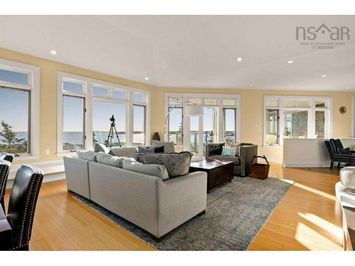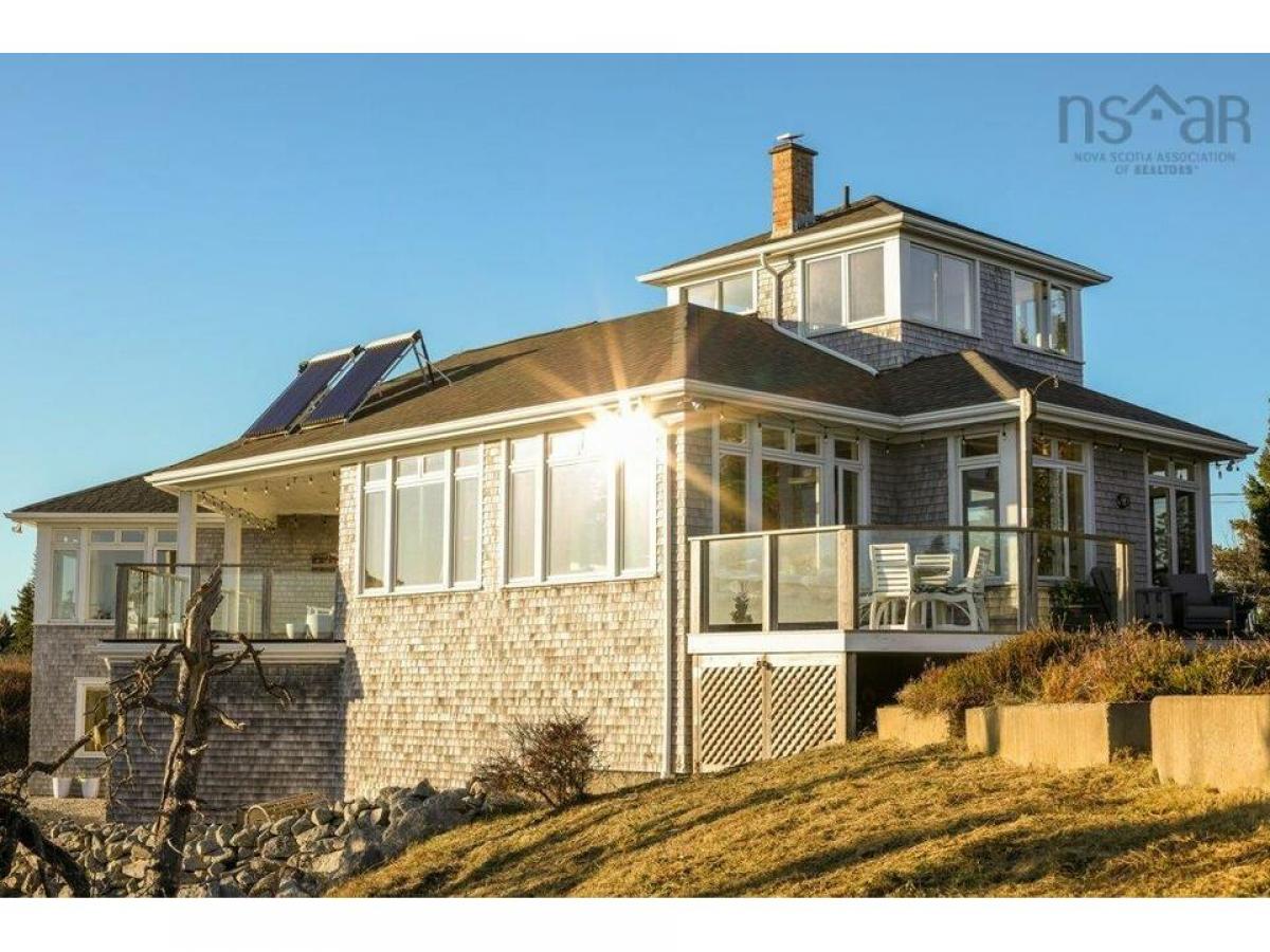 Imagine looking out over the sparkling waters of the ocean from an elevated perch at the end of âThe Pointeâ. A protected twenty-five acres of southward oceanfront land is laid out in front of this property. It could be your very own unobstructed panoramic view. Get ready to take in the sound of the waves and the salty air drifting up as you gaze at spectacular sunsets. This property is on 3 acres with a contemporary style 3150 square feet of living space, 12' high ceilings, and an abundance of windows that let the natural light shower in. Halifax architect, Michael Grunsky, designed this home with a layout lending to ease of lifestyle. A thoughtfully designed kitchen with living and dining area, seamlessly laid out. Above, is the crowâs nest with the only lighthouse 360-degree view of the area. At the western wing spans the primary bedroom with ensuite and a walk-in closet. Two single bay garages, laundry, a storage mudroom, and a powder room complete the main floor. A lower level on grade walk out with equally stunning ocean views comprises a recreation room, two more bedrooms and a full bathroom. The home shines with details featuring a five-burner gas stove, built-in oven, kitchen island and the Temp Cast fireplace/pizza oven as the focal point. The in-floor radiant heating with the Ruby hot water solar system is a great efficiency attribute. Two comfy options for outdoor relaxing and entertaining are available. A covered balcony positioned for the ultimate sunsets, or south facing porch for afternoon gazing. A few steps down the road from your driveway, is the entrance to twenty-five acres of common lands at the end of âThe Pointeâ, a stunning panoramic seascape of crashing waves and rocky outcroppings. Additional common lands surround Northwest Cove Lake with swimming and a community dock. Less than 1 hour to Halifax, 25 minutes to Chester and 15 minutes from Hubbards. Ride your bike to the Hubbards Farmers market for fresh local produce or Bayswater beach.