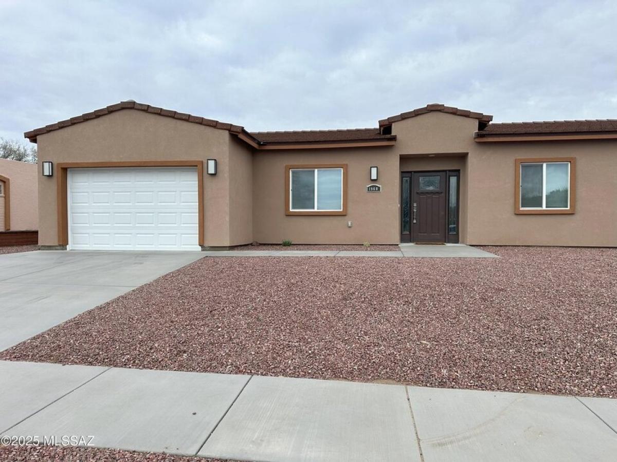 This stunning, recently built home in Green Valley offers the perfect blend of modern comfort and active adult living. Enjoy spacious living with 9-foot ceilings and ceramic tile flooring throughout. The beautiful, open kitchen features stainless steel appliances and a large pantry! Relax in either bathroom boasting quartz countertops and tiled walk-in showers.Step outside onto the covered patio, a perfect spot for morning coffee or evening gatherings. The expansive backyard is a blank canvas, ready for your personal touch and landscaping vision.This home is located inside the Green Valley Recreation (GVR) service area, giving you access to 15 fantastic facilities, including the award-winning 24-hour pickleball complex! Easy access to I-10, restaurants shopping and more!