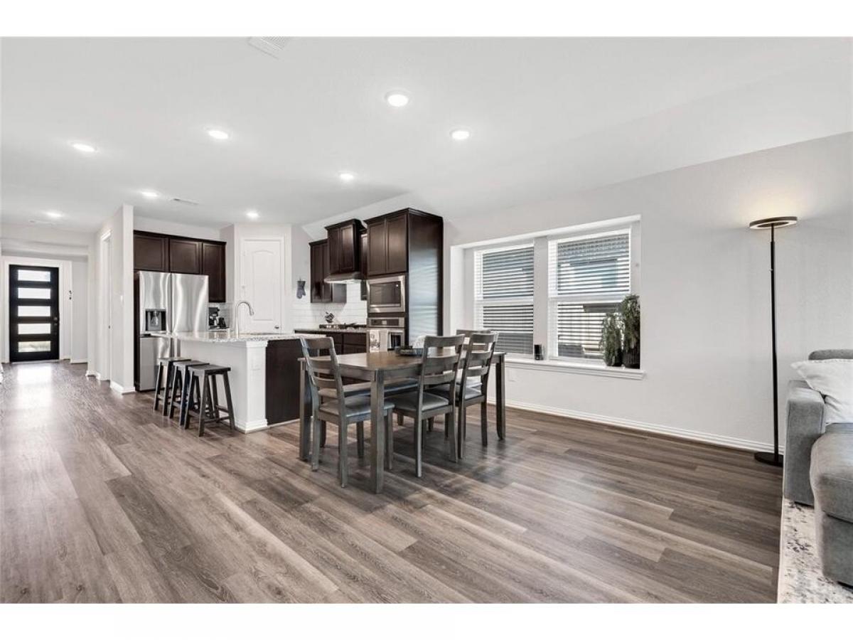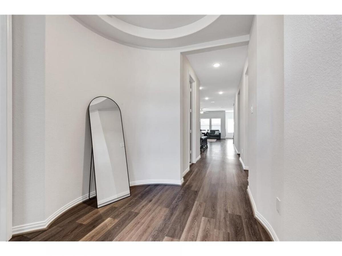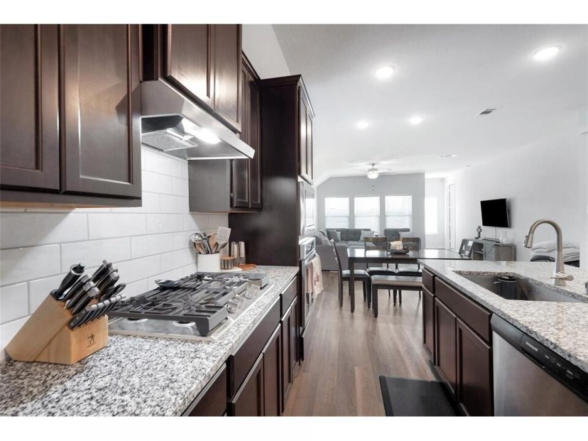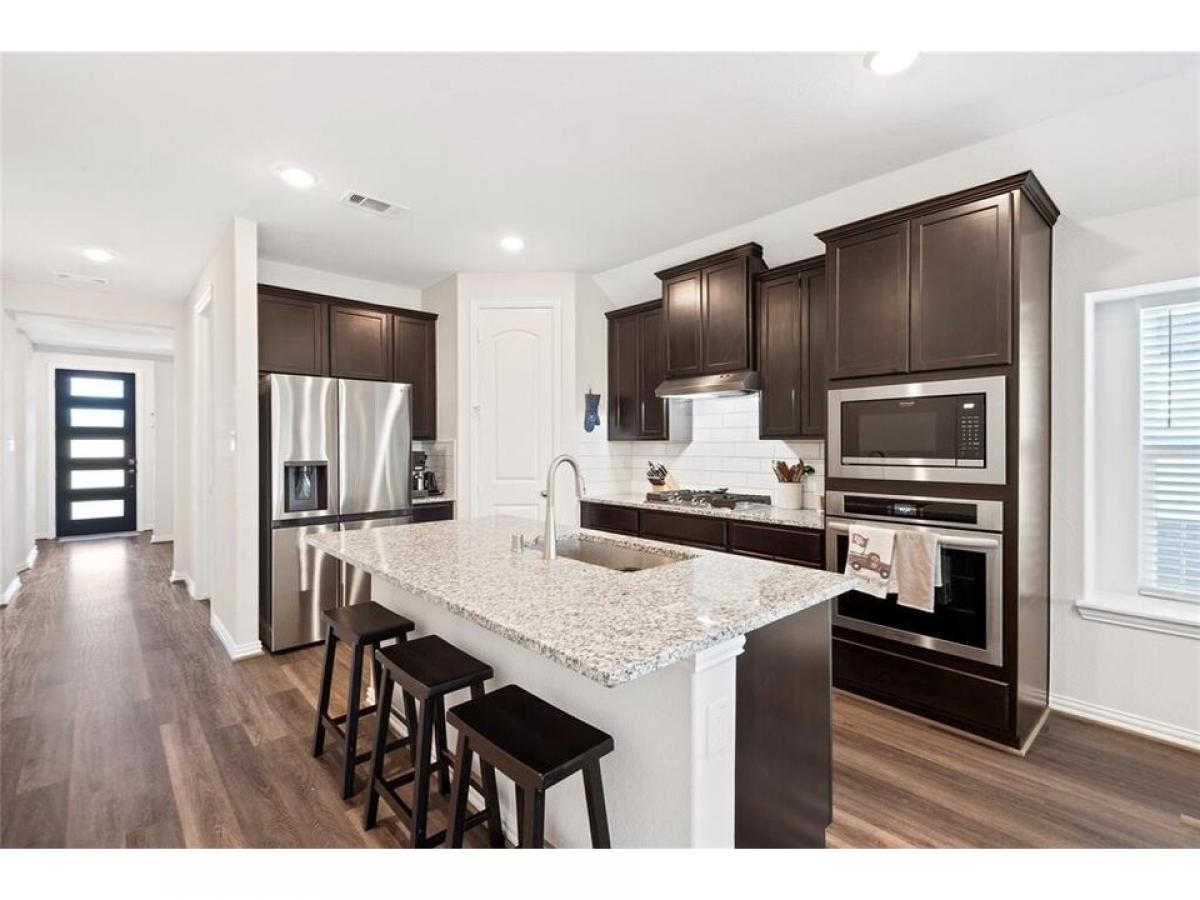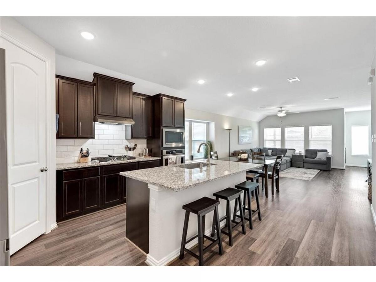 Why wait for new when you can move right into this 4 bedroom one story charmer with over $24k in upgrades! Lovely foyer welcomes you into this special home with tall ceilings amp; 8#039; doors throughout the home. Front separate bedroom has a nice walk in closet amp; would make for a perfect office as well. The whole home is stone and brick. Inside you will find upgraded, durable amp; beautiful engineered vinyl plank flooring in all the main living areas. Upgraded kitchen includes designer cabinets, granite counters, single bowl sink, decorative tile backsplash, amp; stainless steel appliances including a gas cooktop and built in oven. Both bathrooms also have granite counters, vanities with double sinks, and tile flooring. There is a cute built in locker style cabinet once you come into the house from the garage that you will love! You will also love the extended back covered patio with gas hook ups for that outdoor kitchen or gas grill and doesn#039;t have any back neighbors!