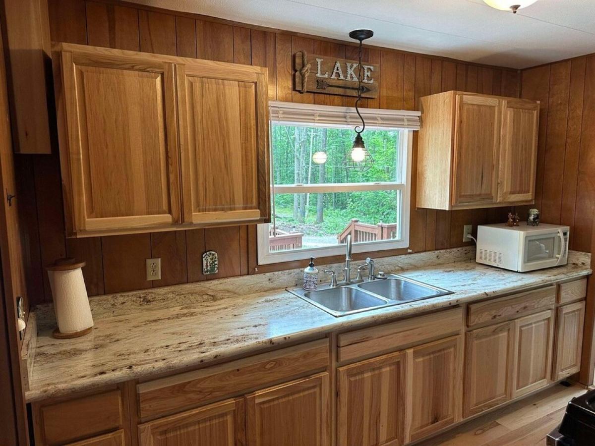 The beautifully remodeled mobile home sits gracefully on two spacious lots, showcasing a harmonious blend of modern updates and cozy charm. The exterior features an updated asphalt roof that complements the newer vinyl windows, ensuring both durability and aesthetic appeal. Hard wood floors. An attached car garage provides convenience and ample storage space.As you approach, a welcoming front porch invites you to relax and enjoy the peaceful surroundings. The deeded access to Hubbard Lake offers the perfect opportunity for lakeside activities and serene views. Inside, the home boasts an open floor plan with contemporary finishes, creating a warm and inviting atmosphere. This remodeled mobile home is not just a residence, but a delightful retreat that offers the best of lakeside living